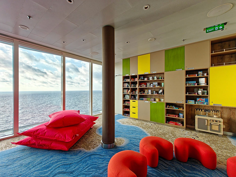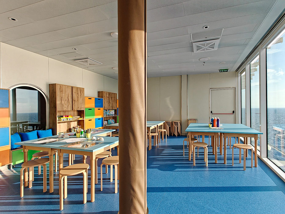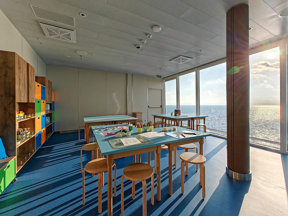 Bilder der Kinder-Bereiche auf der Mein Schiff Relax (einen eigenen Teens-Club gibt es nicht, Teens nutzen tagsüber aber unter anderem die D4 Bar & Lounge)