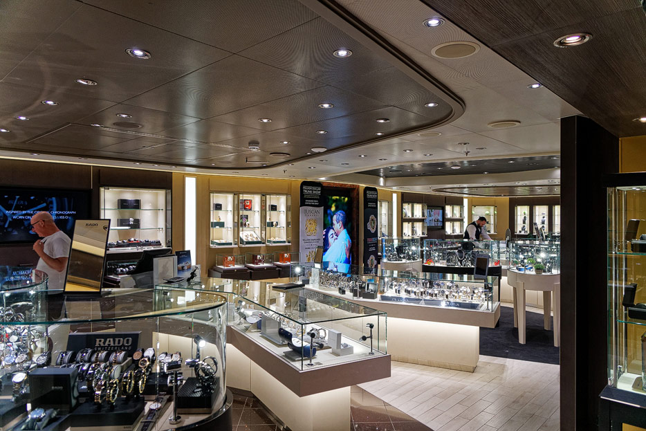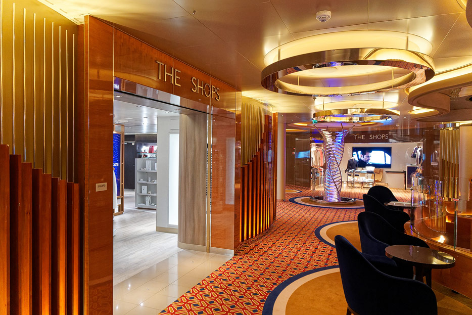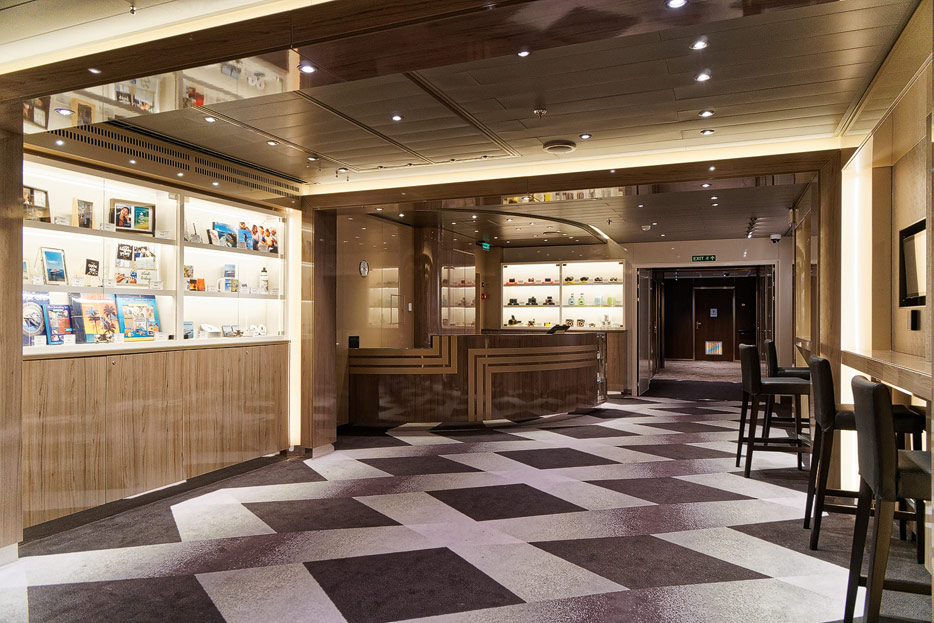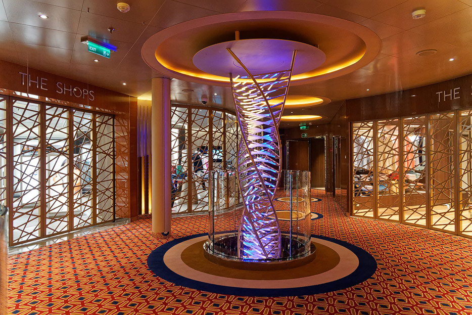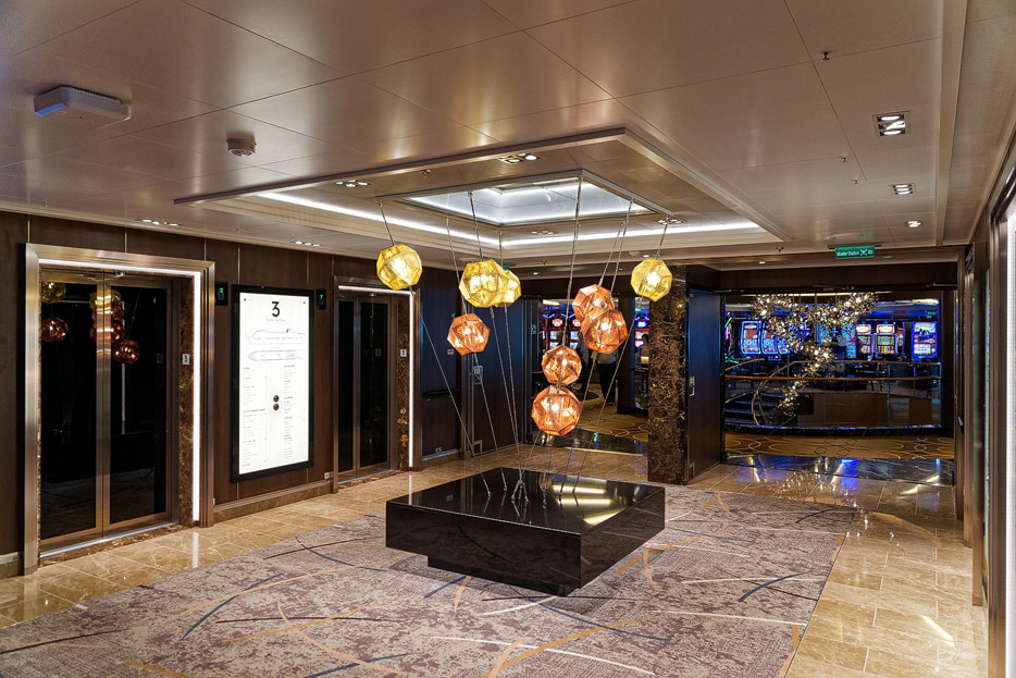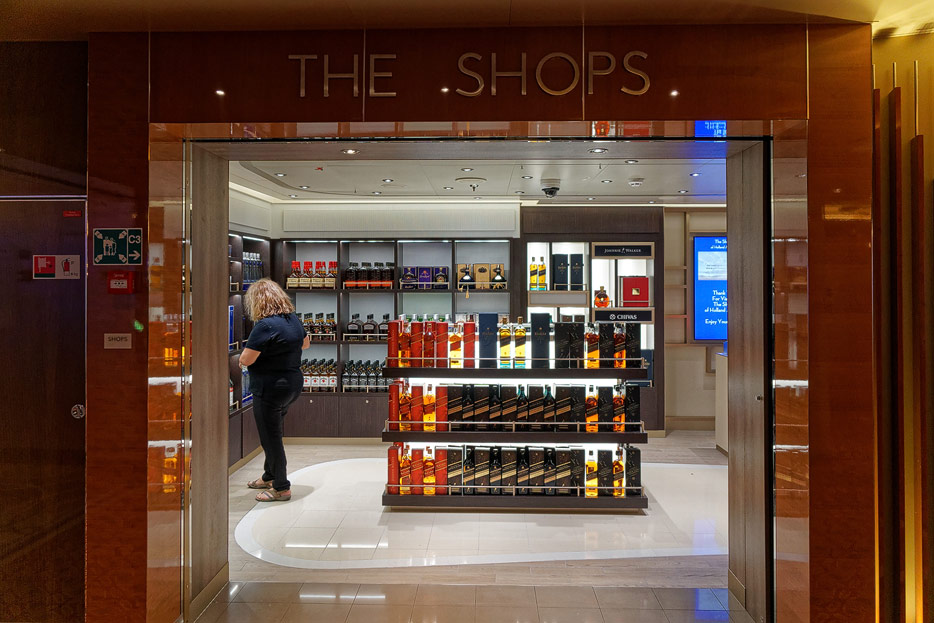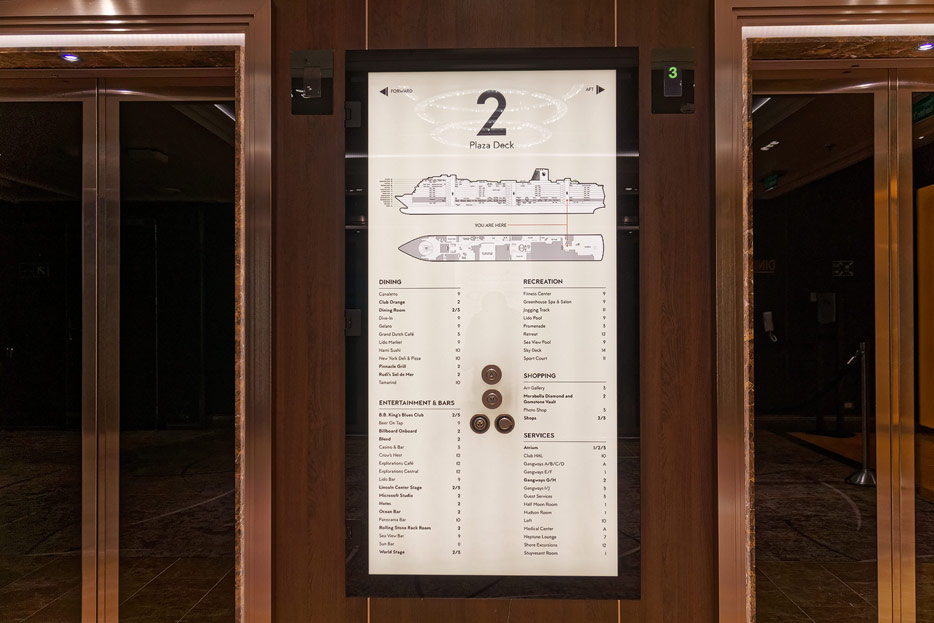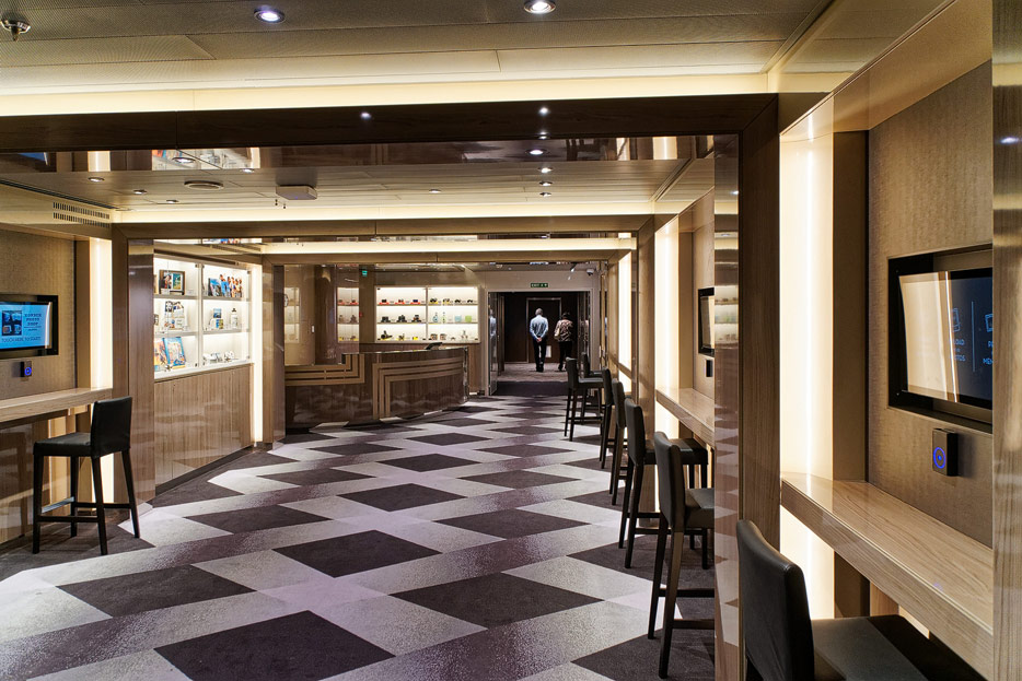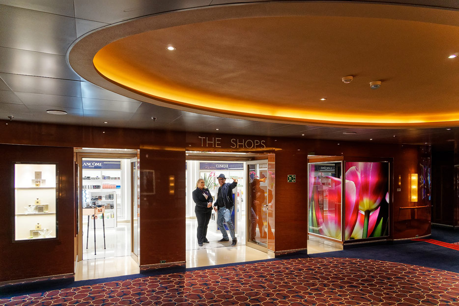 Bilder weiterer Bereiche der Nieuw Statendam: Casino, Shops, Treppenhäuser, Aufzüge