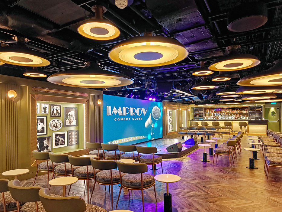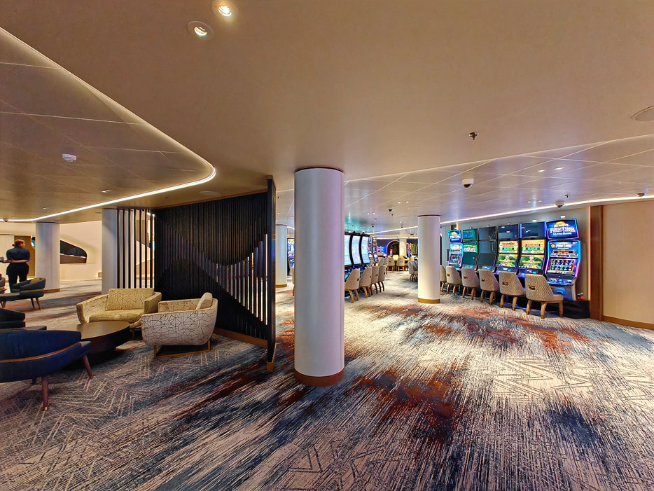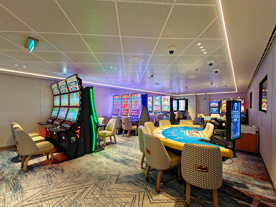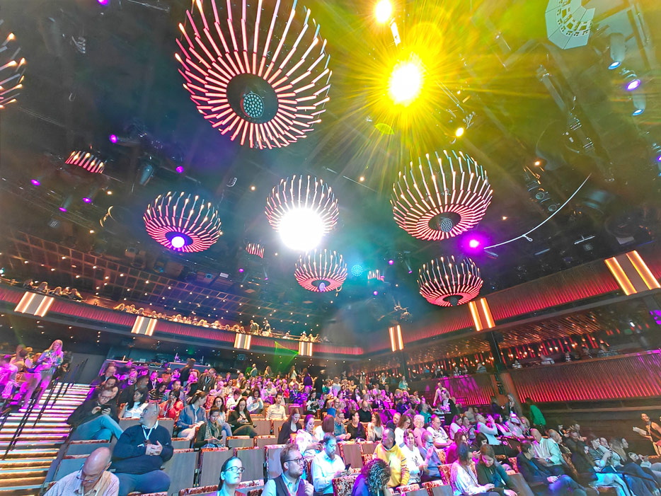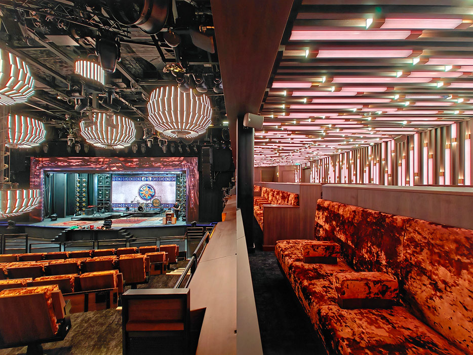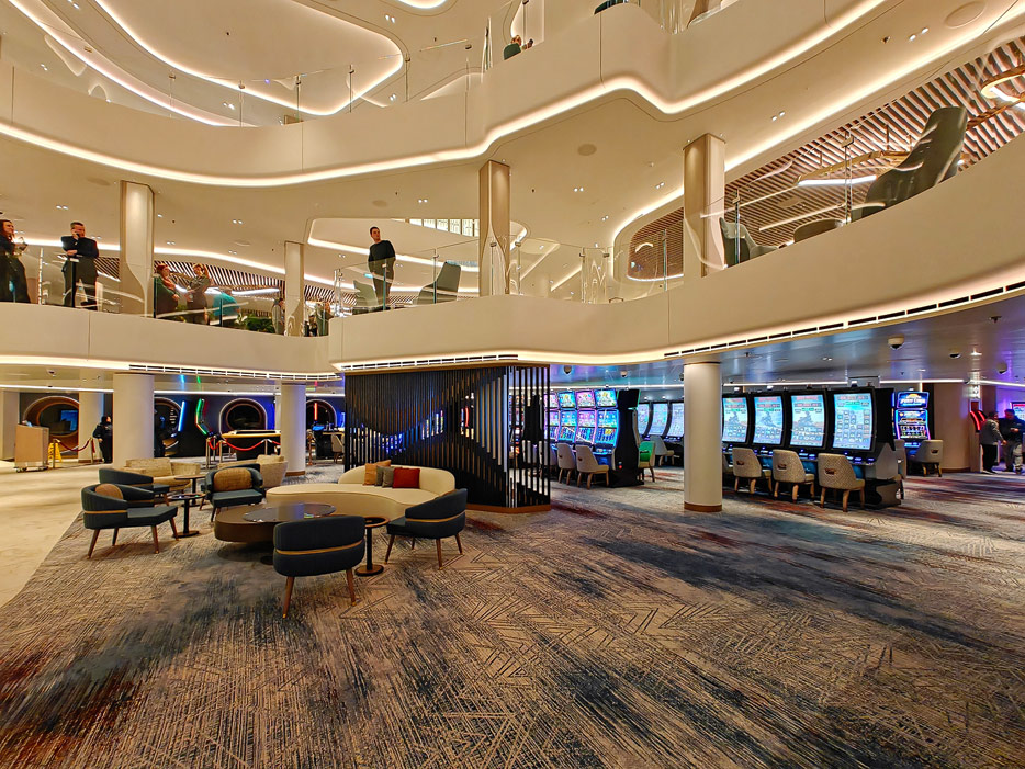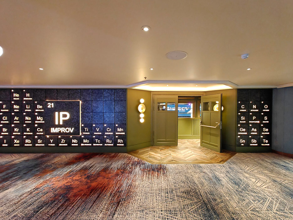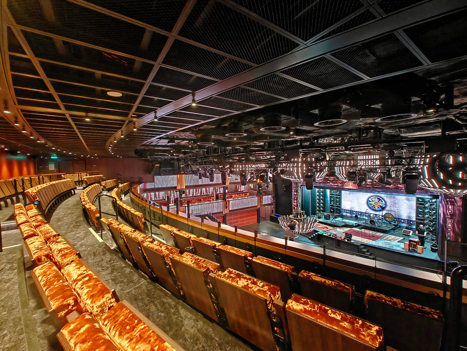 Bilder der Entertainment-Bereiche auf der Norwegian Aqua: Theater, Sid Normans, Comedy Club, Casino, Aqua Game Zone