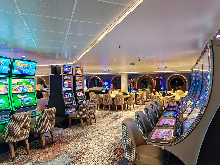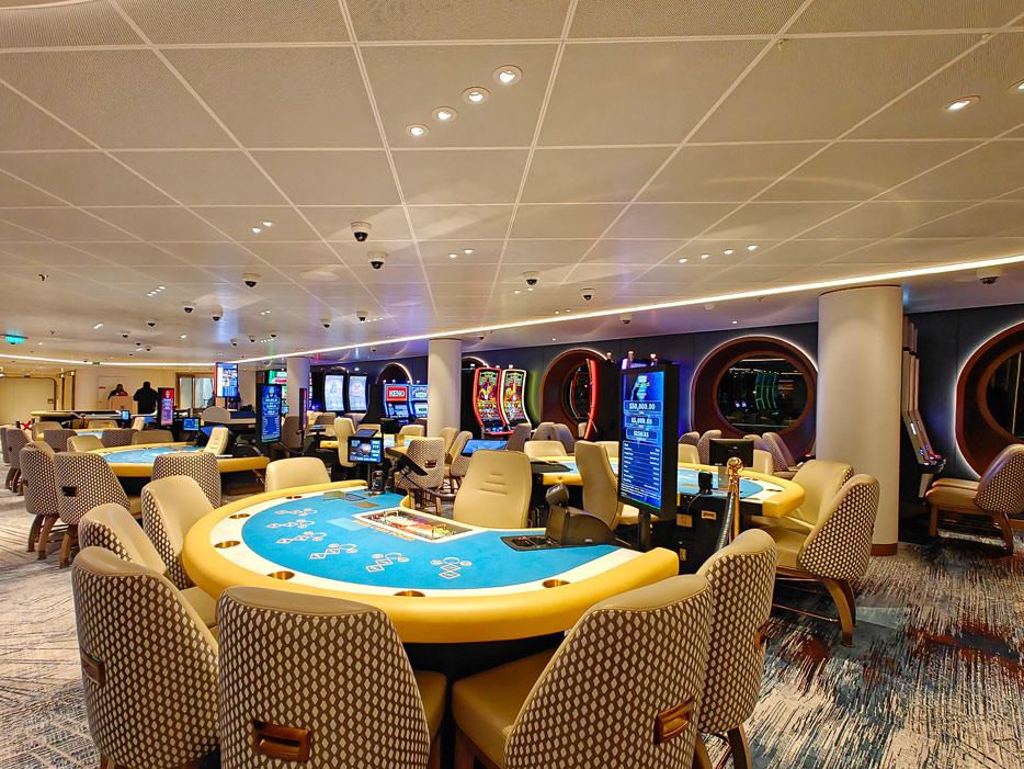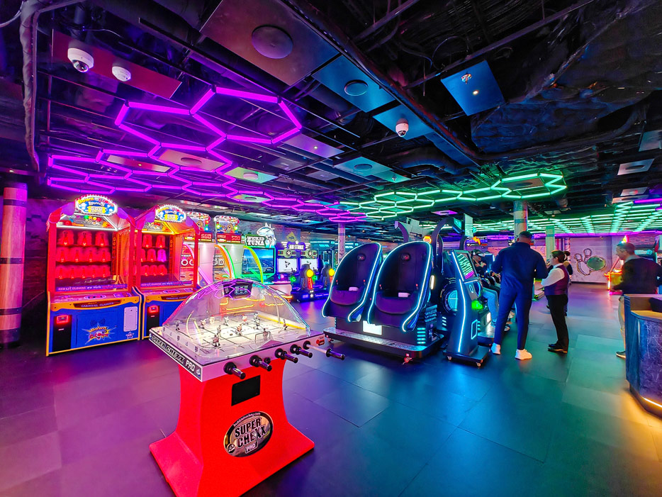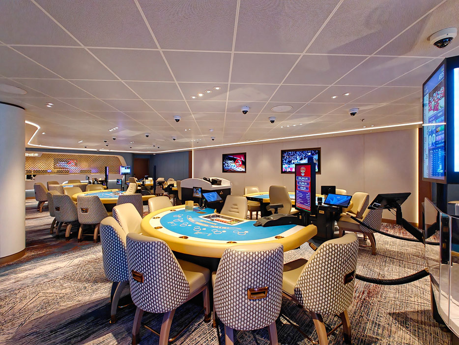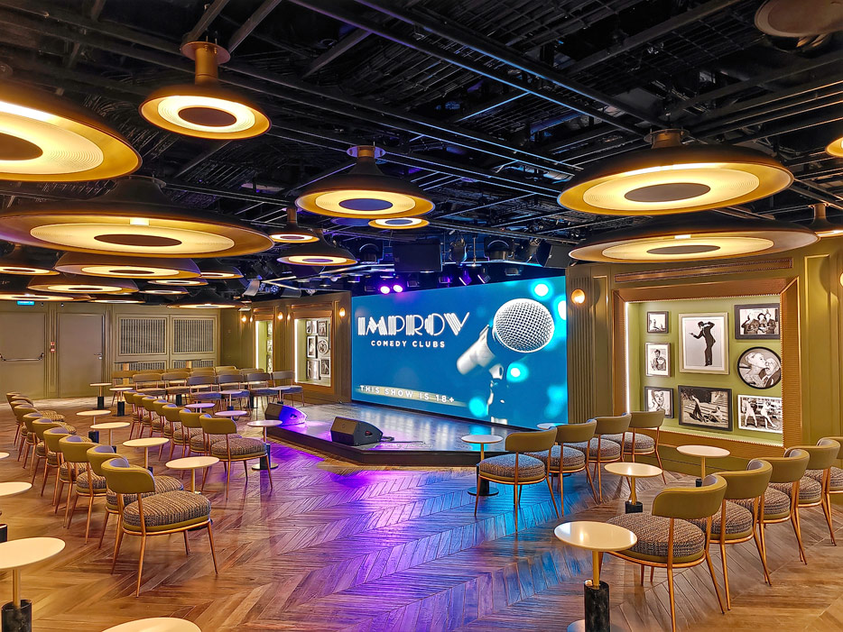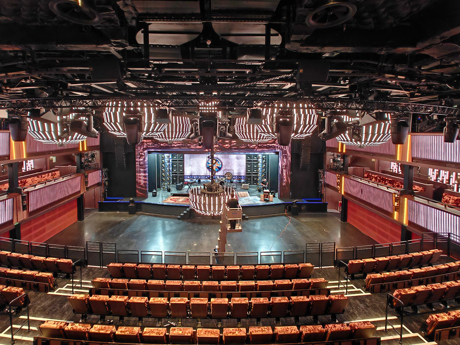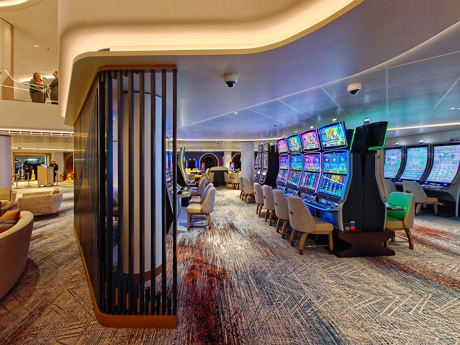 Bilder der Entertainment-Bereiche auf der Norwegian Aqua: Theater, Sid Normans, Comedy Club, Casino, Aqua Game Zone