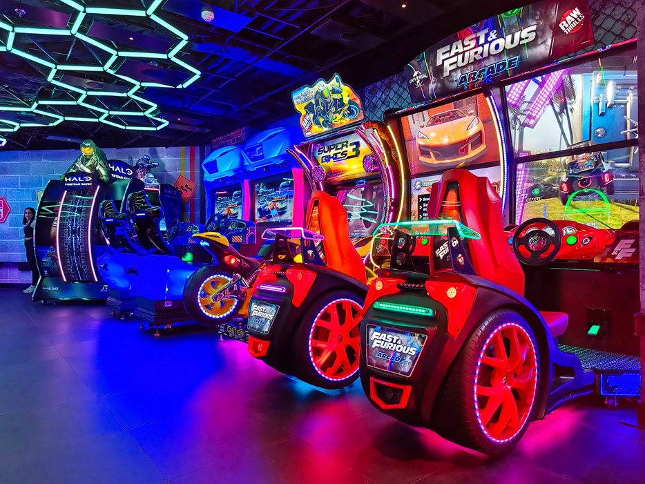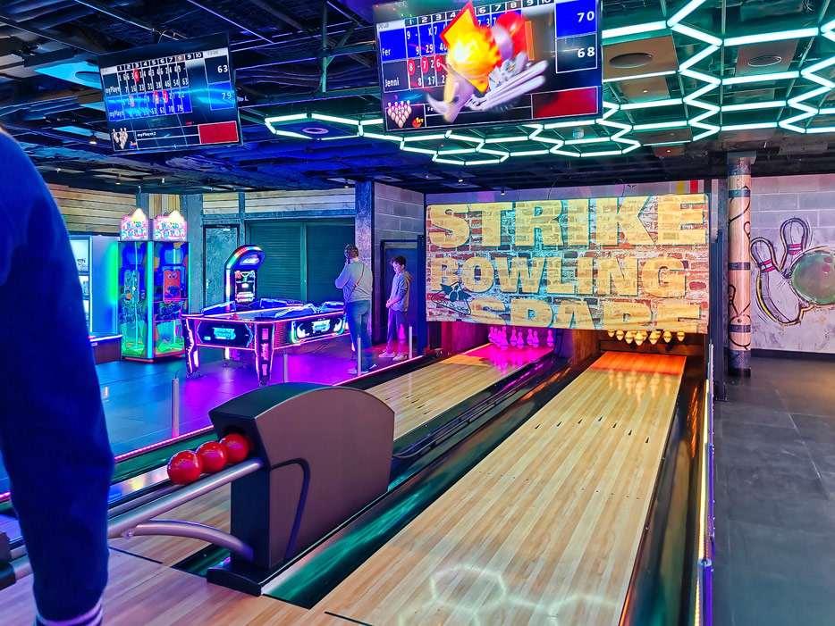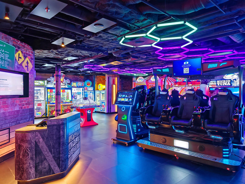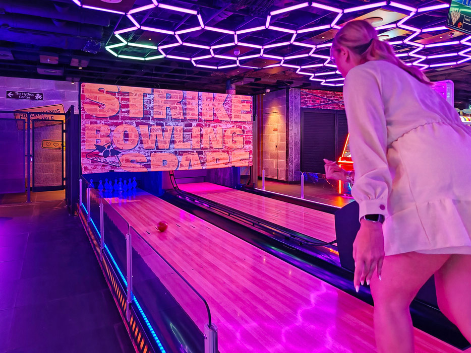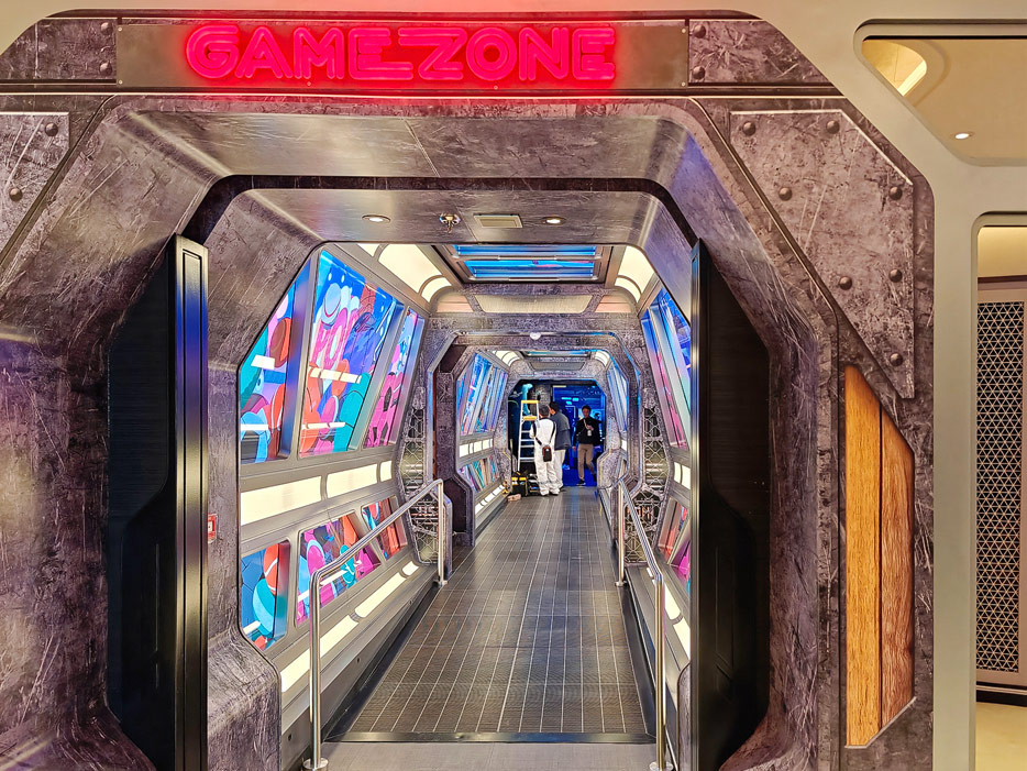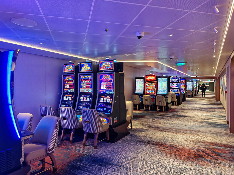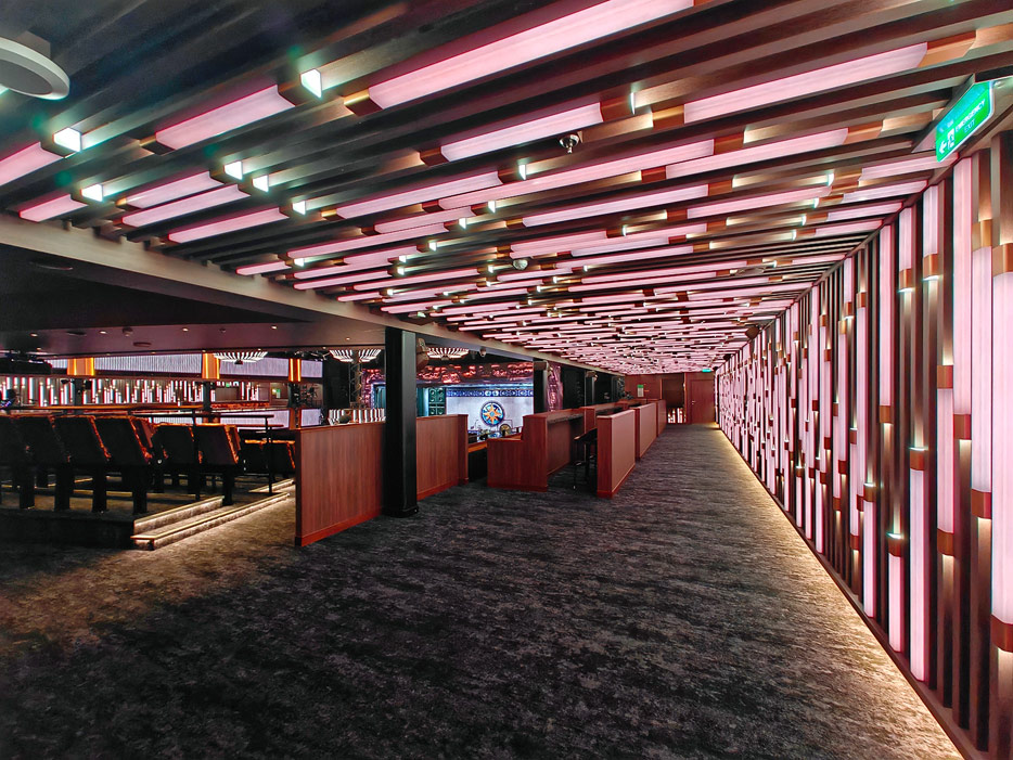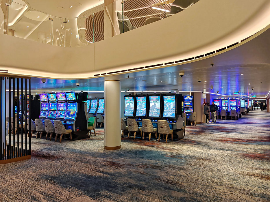 Bilder der Entertainment-Bereiche auf der Norwegian Aqua: Theater, Sid Normans, Comedy Club, Casino, Aqua Game Zone