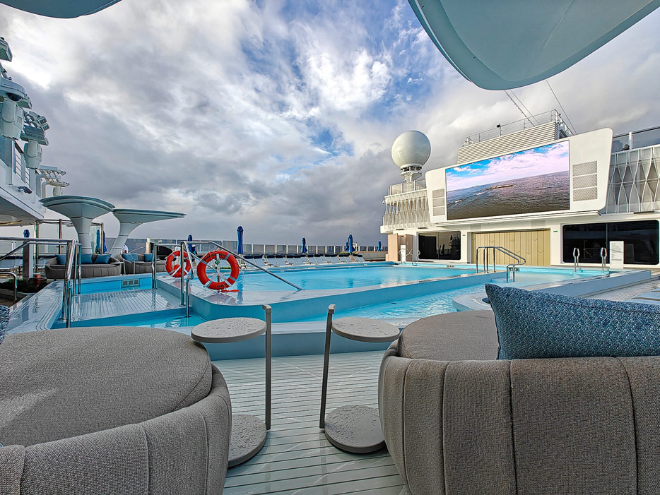 Bilder der Pool, Sonnen- und Aussendecks und der Promenade Ocean Boulevard der Norwegian Aqua