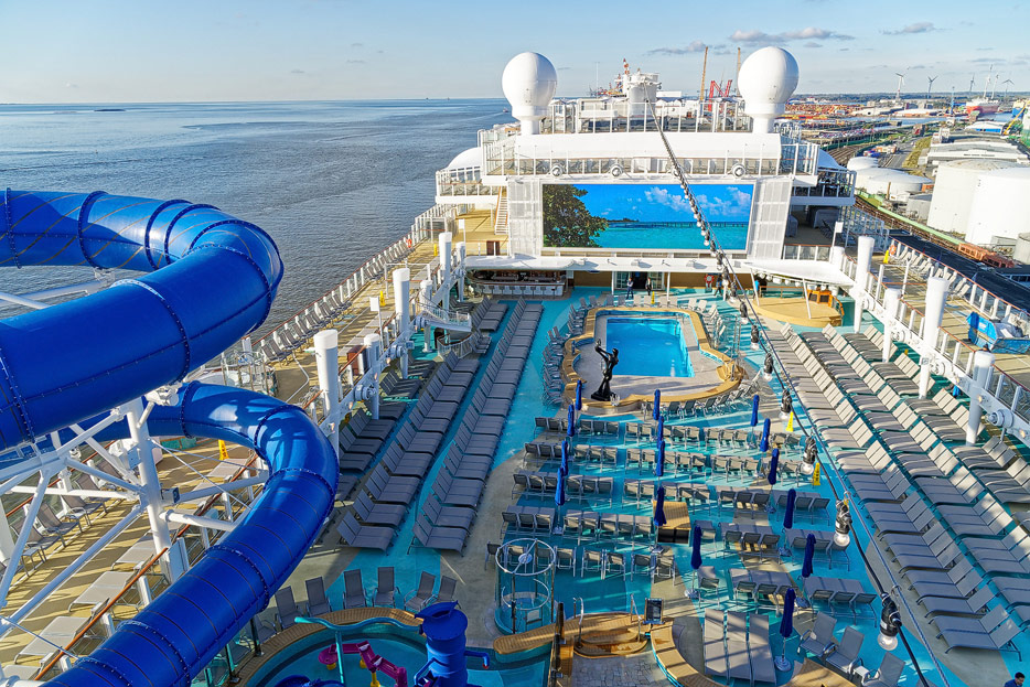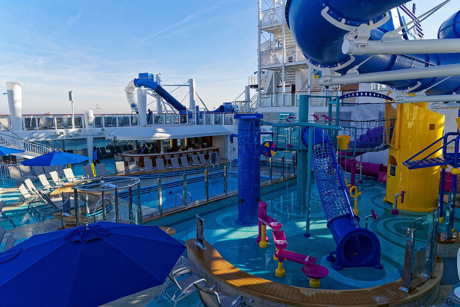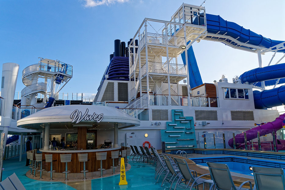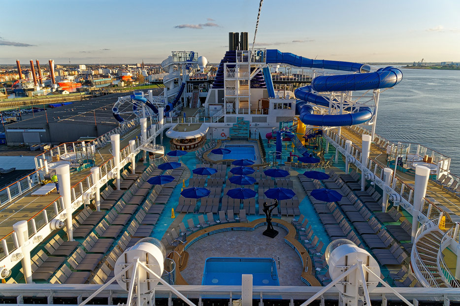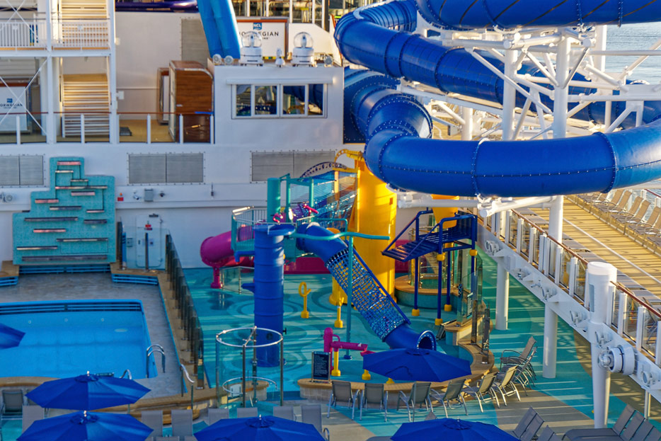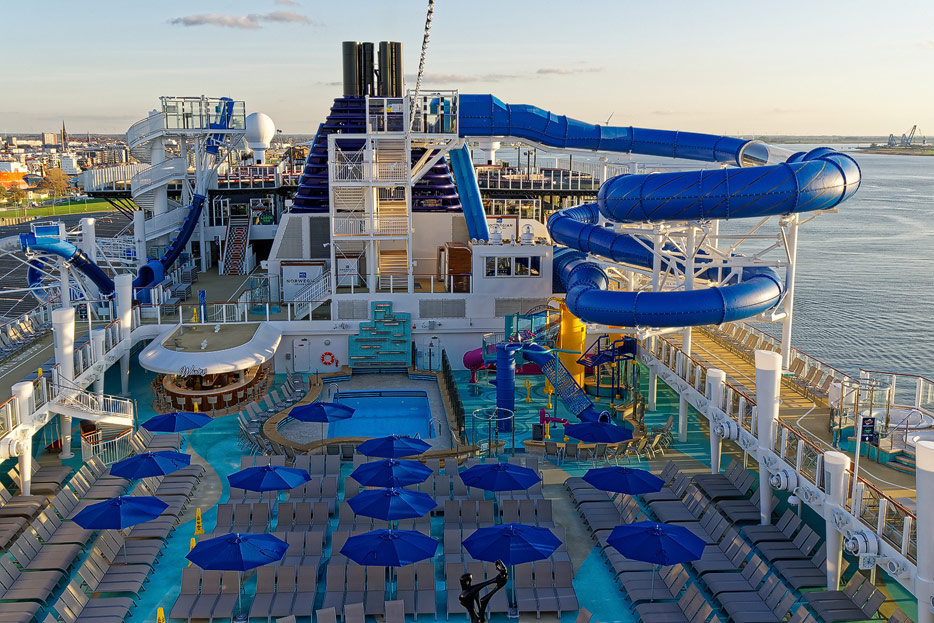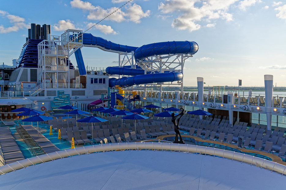 Pools, Sonnendecks und Wasserrutschen der Norwegian Encore