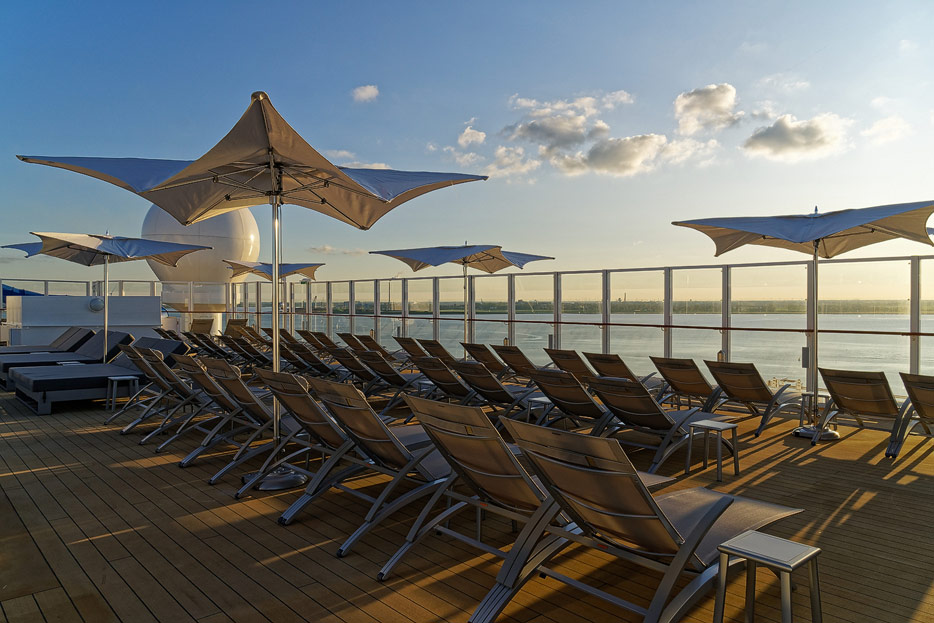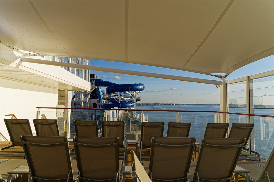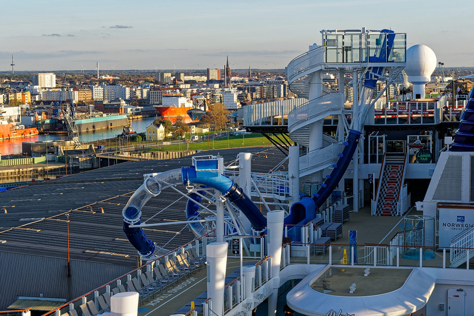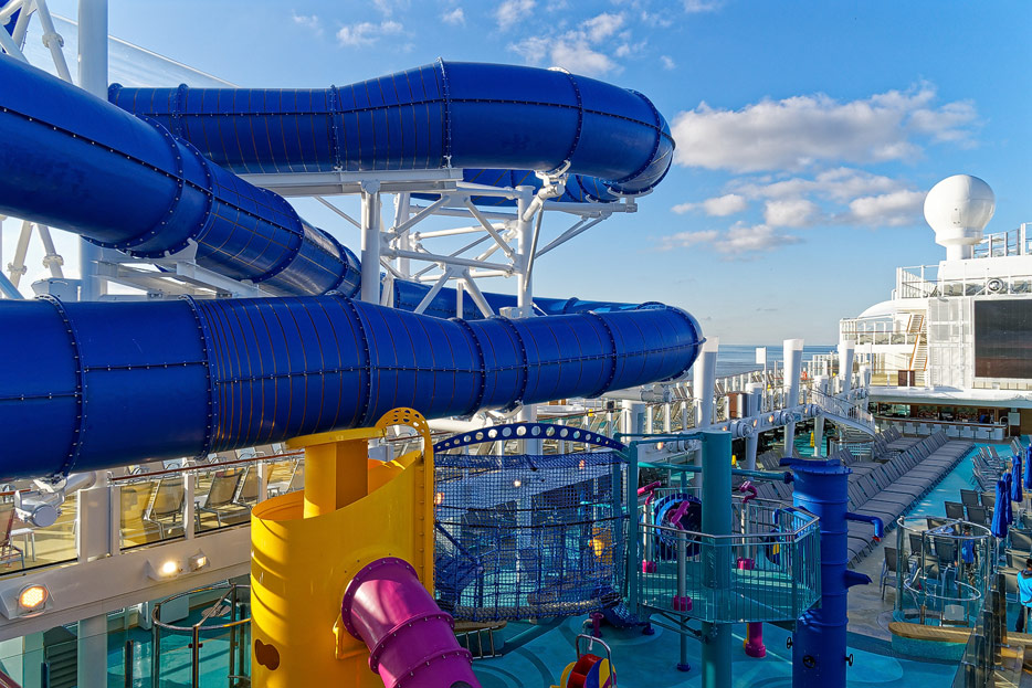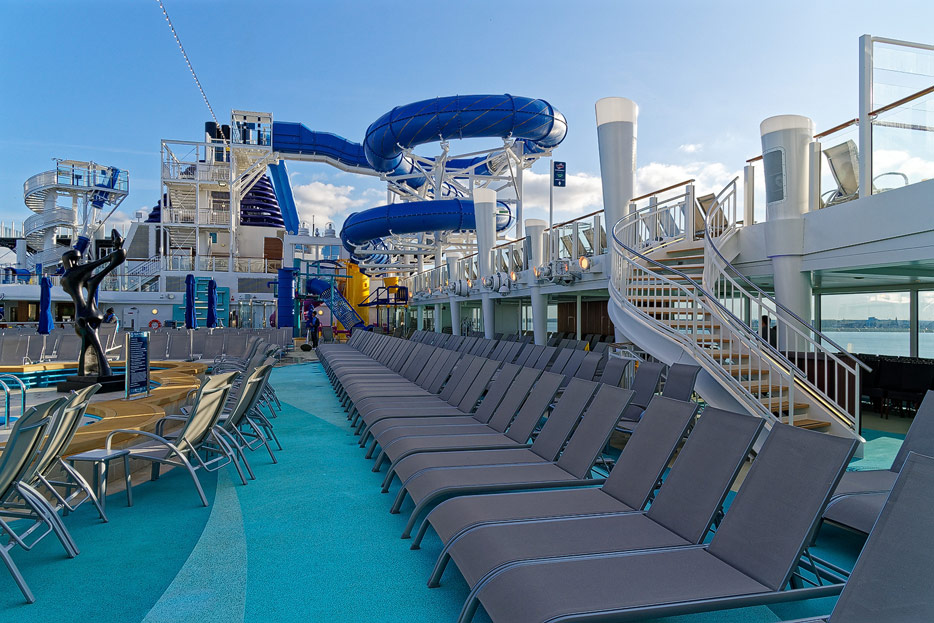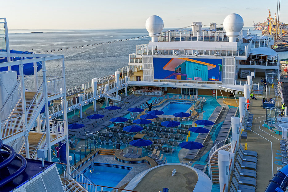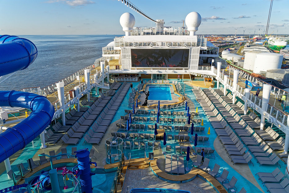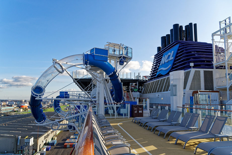 Pools, Sonnendecks und Wasserrutschen der Norwegian Encore