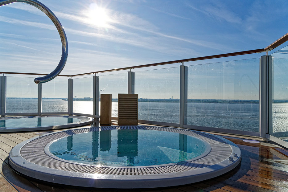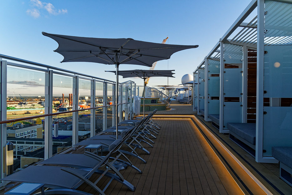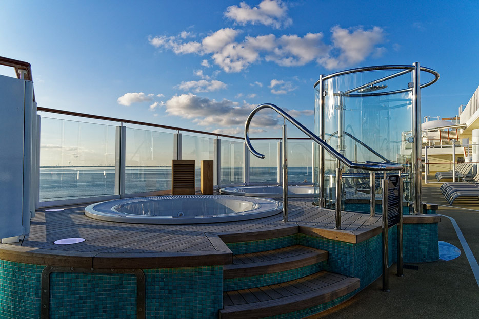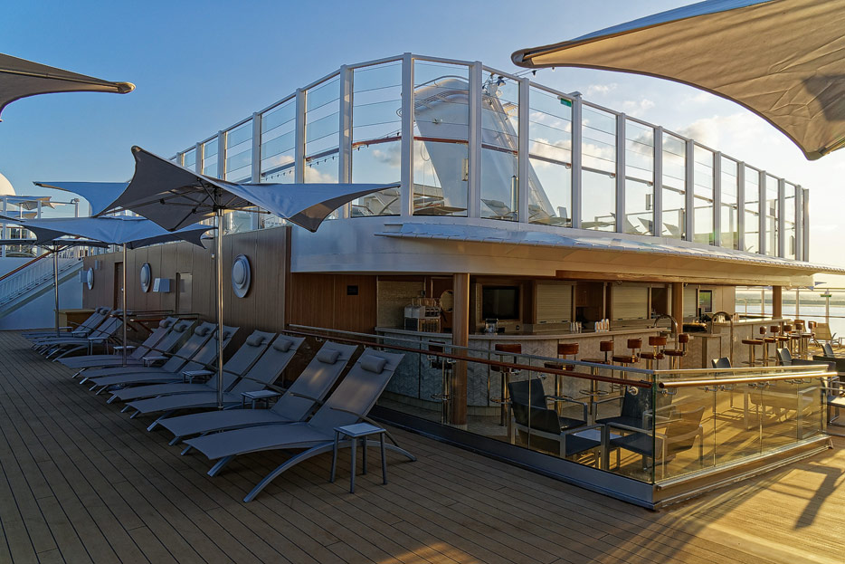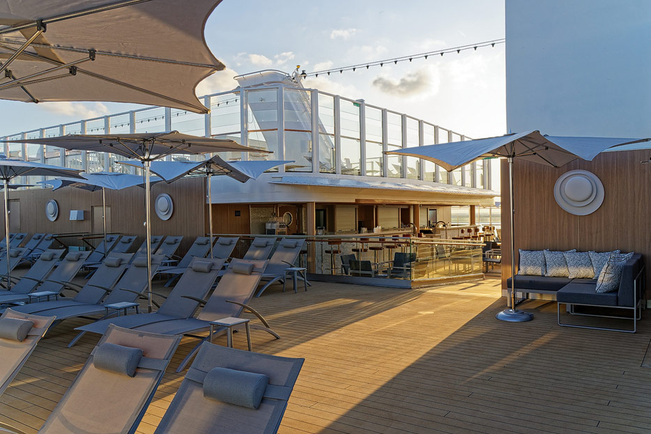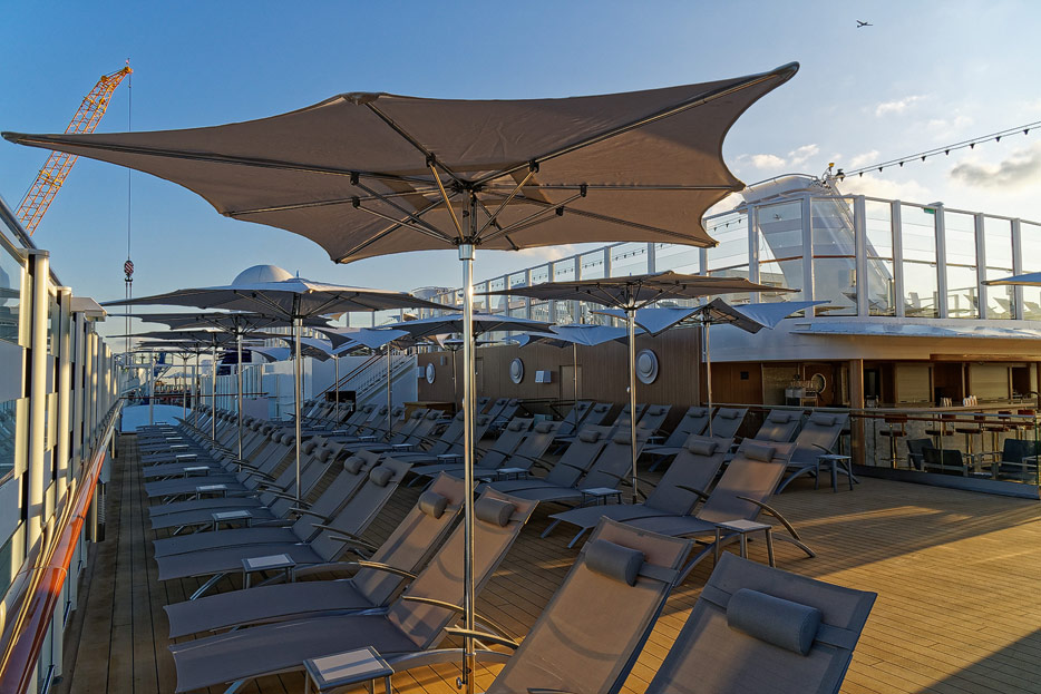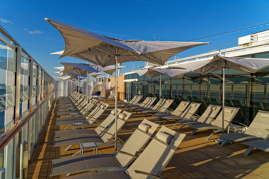 Pools, Sonnendecks und Wasserrutschen der Norwegian Encore