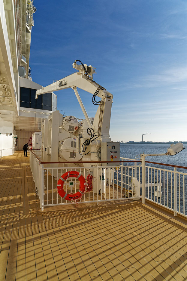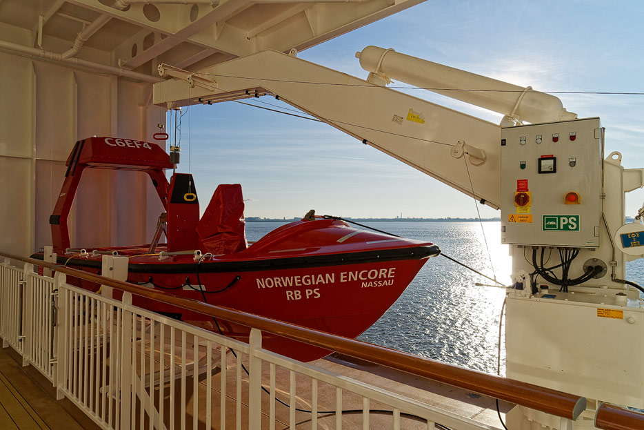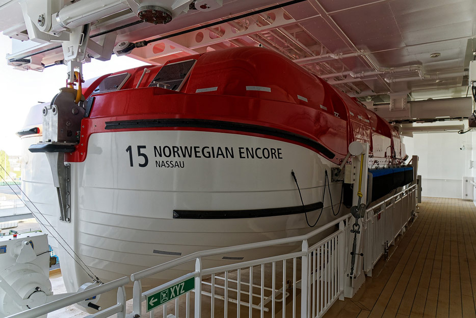 Außenansichten, Rettungsboote, Promenadendeck der Norwegian Encore