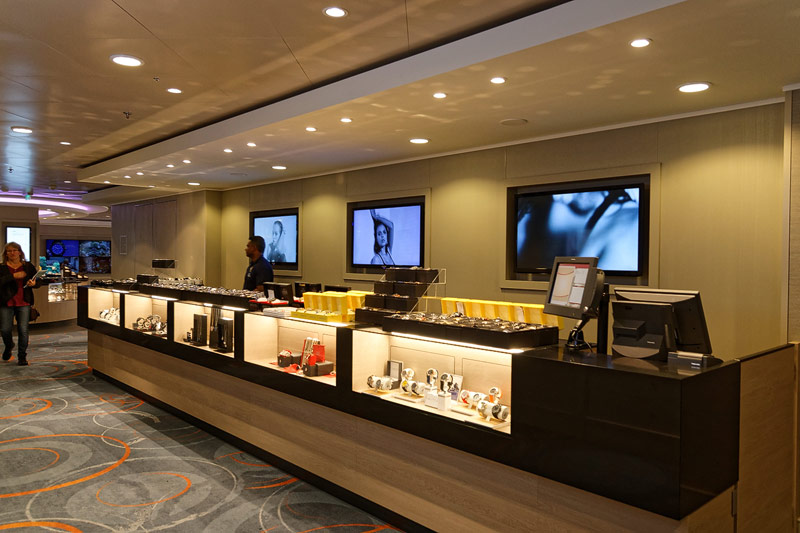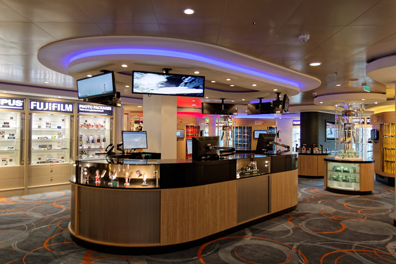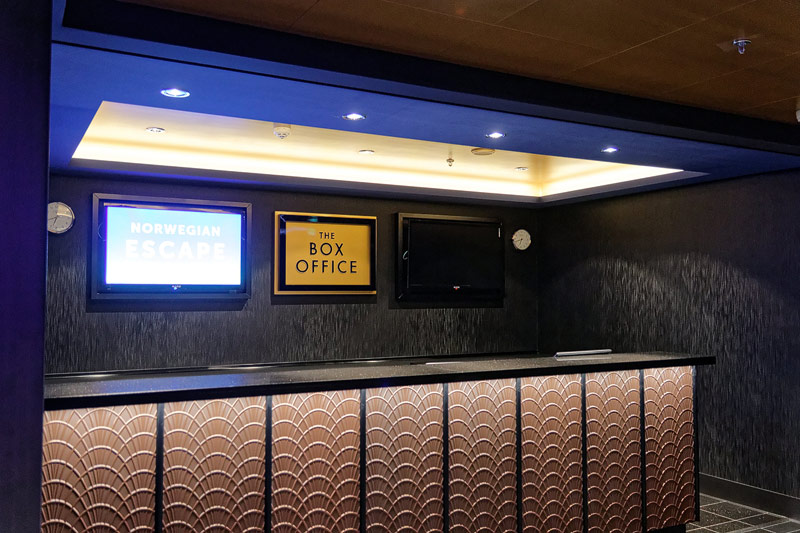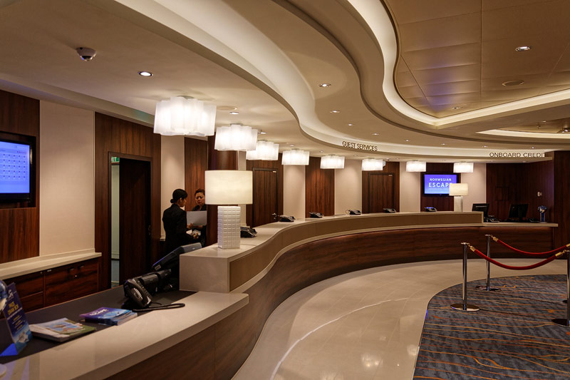 Weitere Bereiche der Norwegian Escape: Theater, Atrium, Rezeption, 678 Ocean Place, Casino, Art Gallery, Photo Studio, Bibliothek, Shops