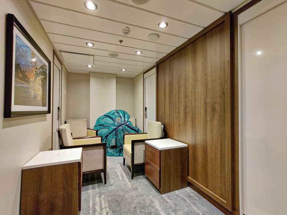 Bilder der Balkon-Kabine 8124 in einer Studio-Single-Kabine nebst Sudio-Lounge der Pride of America (Norwegian Cruise Line)