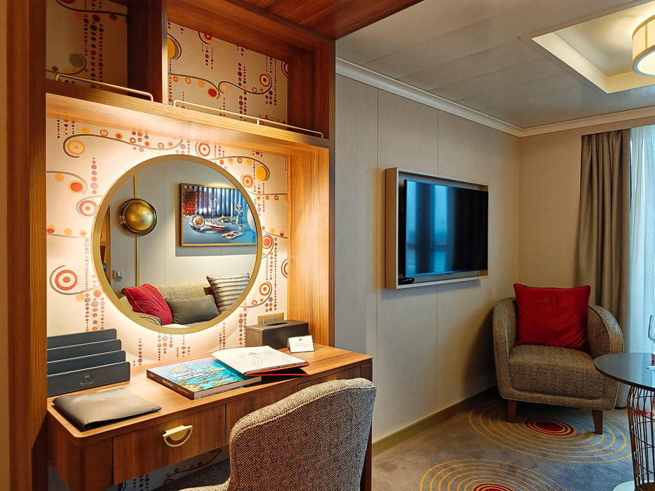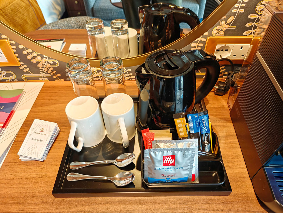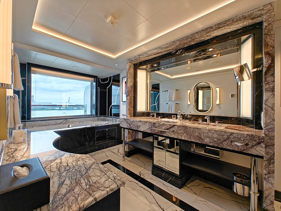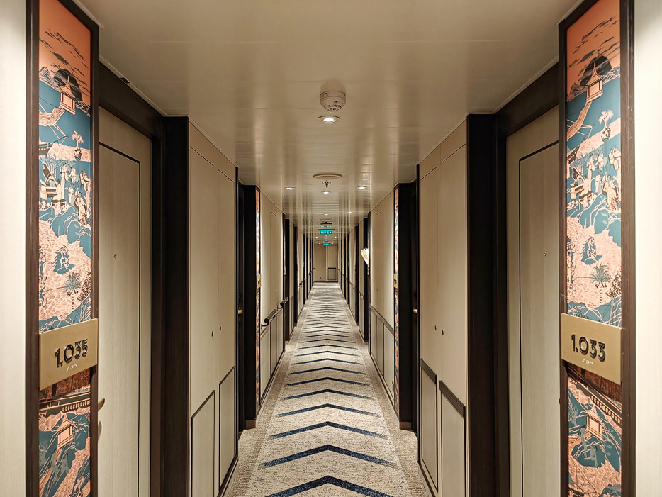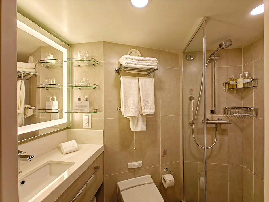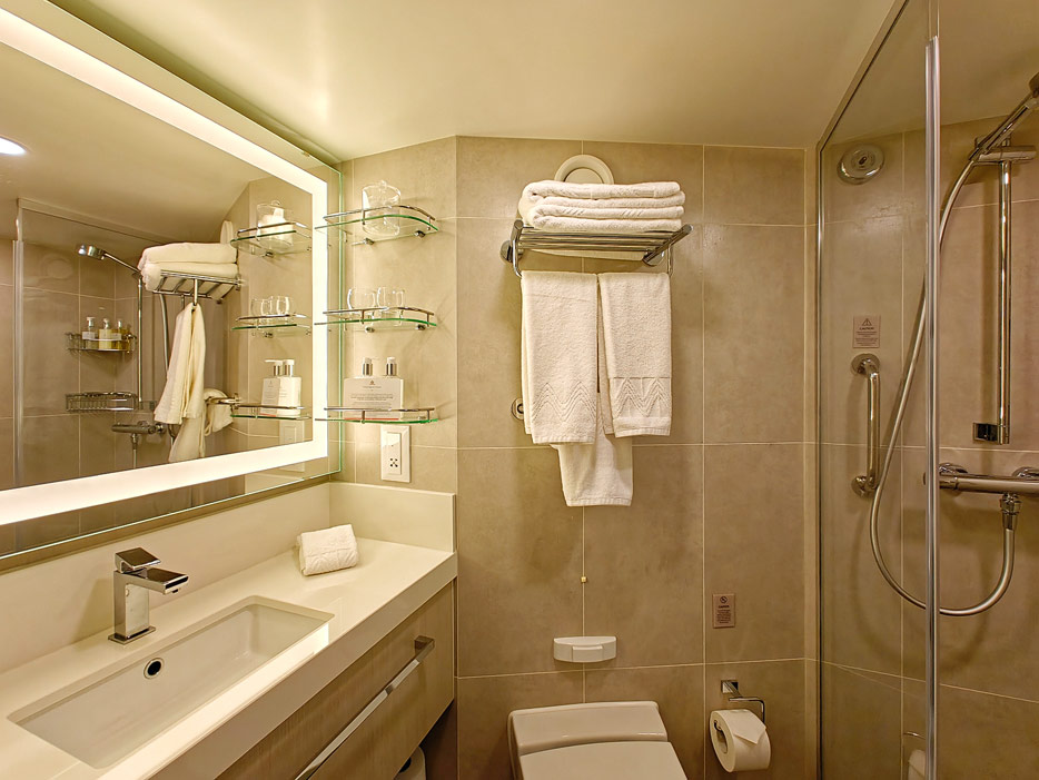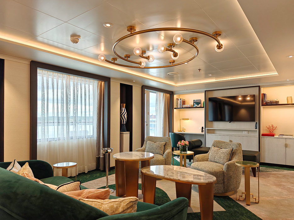 Bilder der vier wesentlichen Kabinenkategorien der Queen Anne von Cunard Line: Britannia, Britannia Club, Princess Grill Suiten und Queens Grill Suiten