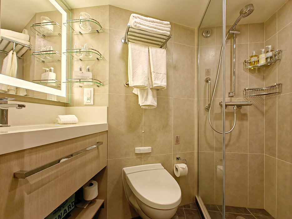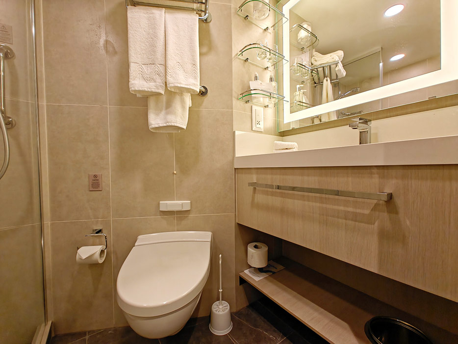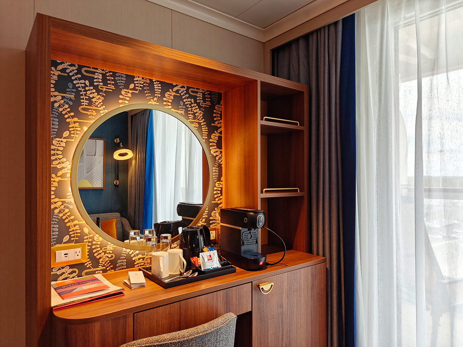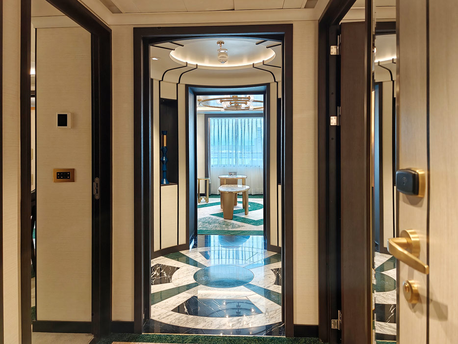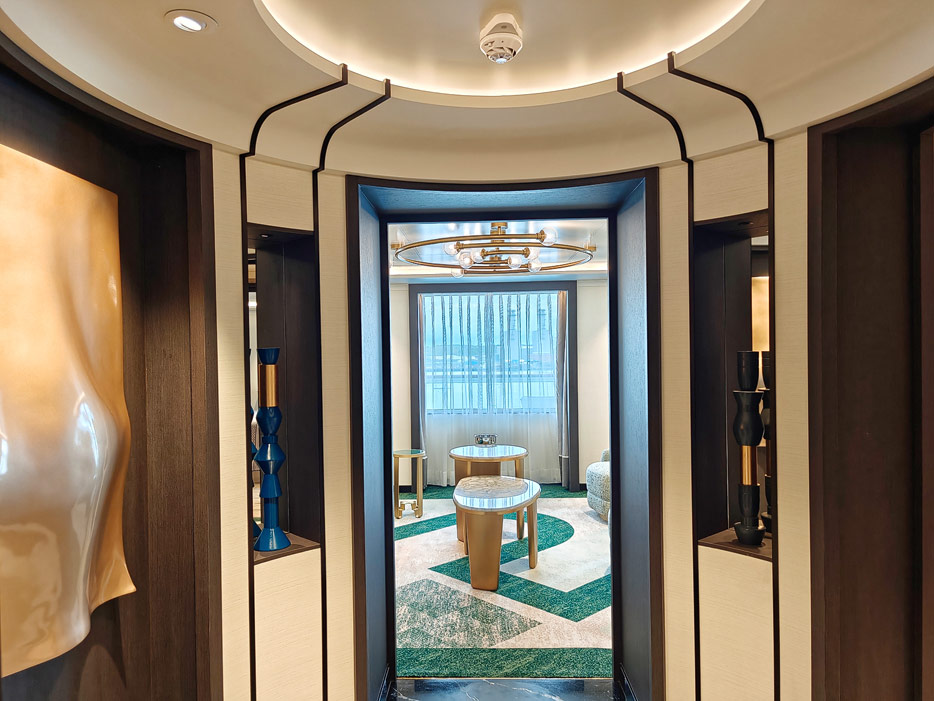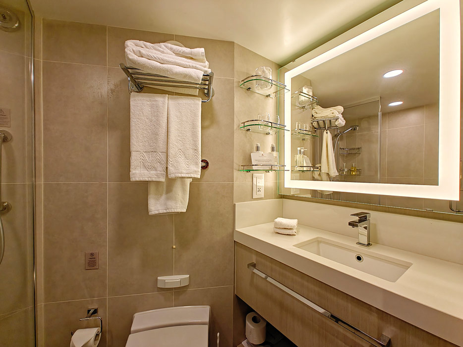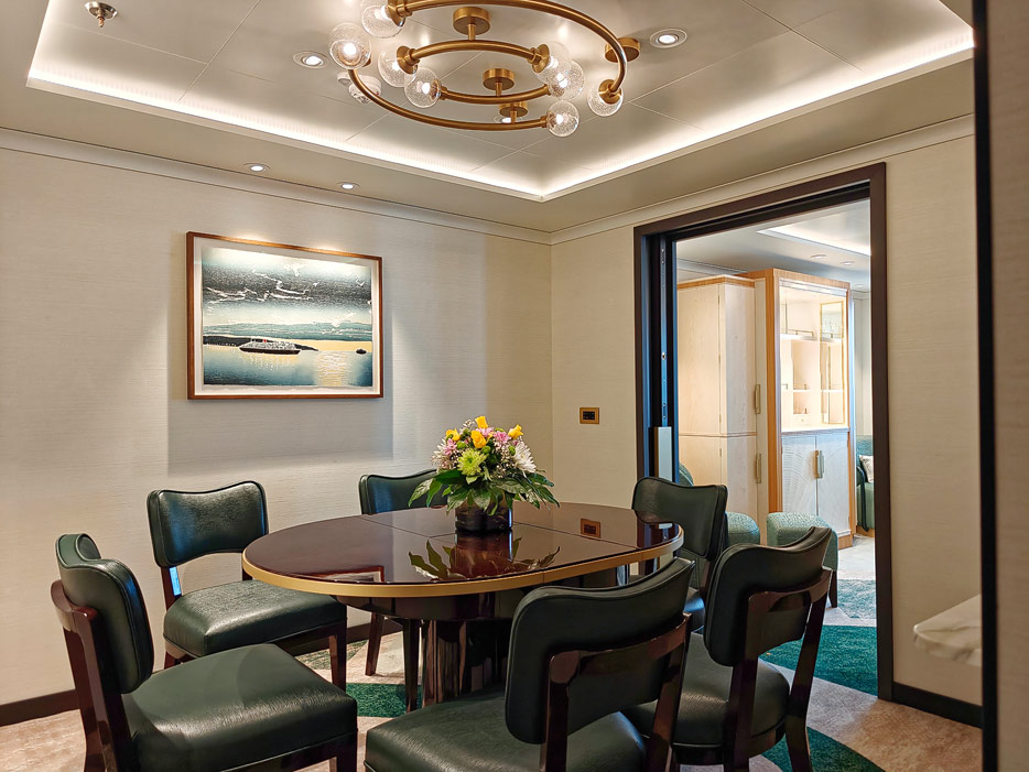 Bilder der vier wesentlichen Kabinenkategorien der Queen Anne von Cunard Line: Britannia, Britannia Club, Princess Grill Suiten und Queens Grill Suiten