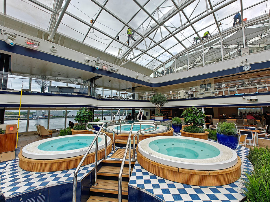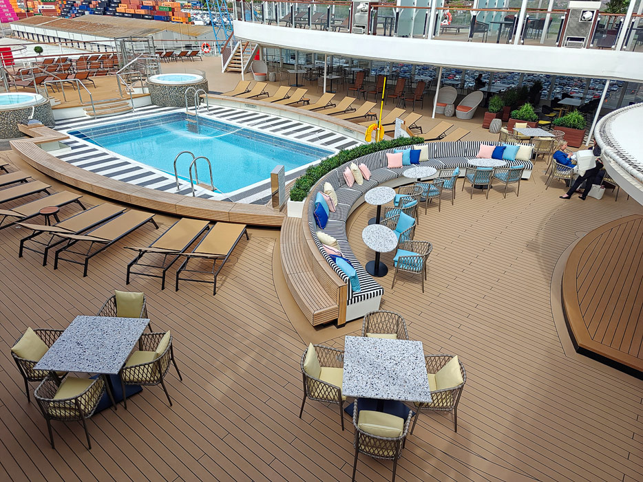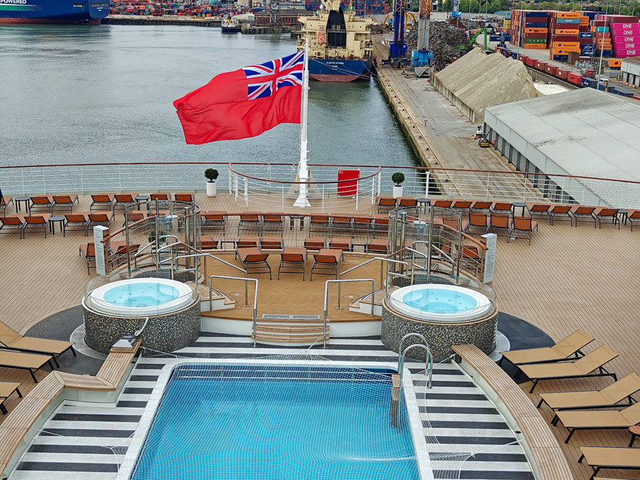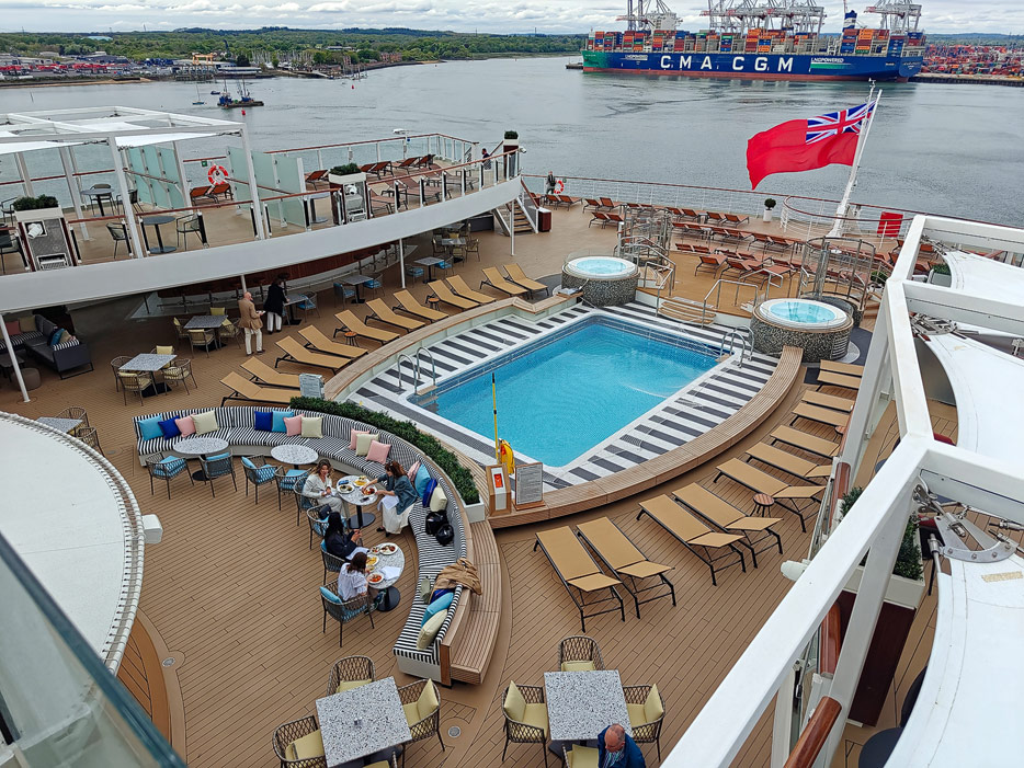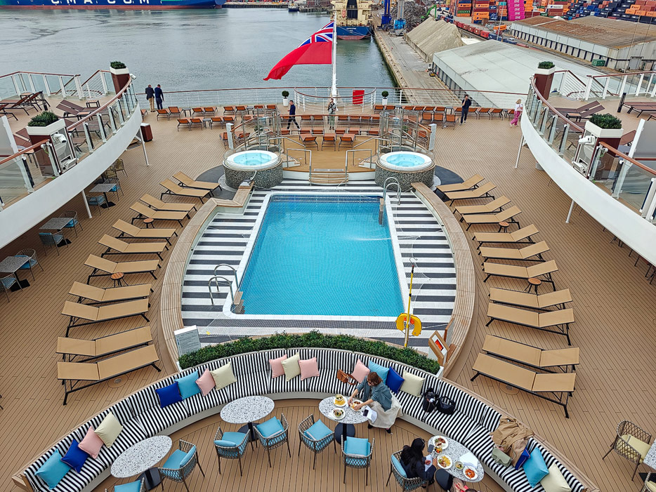 Bilder der Pools und Aussendecks der Queen Anne von Cunard Line