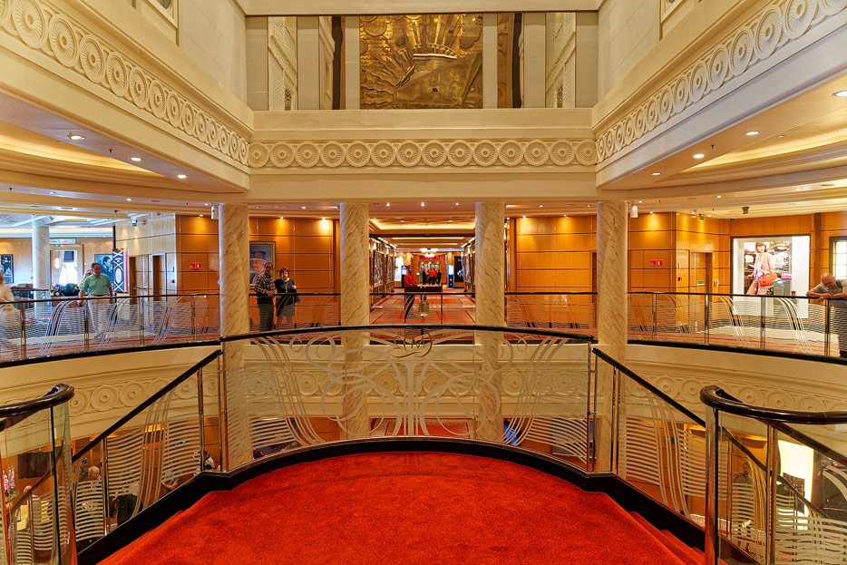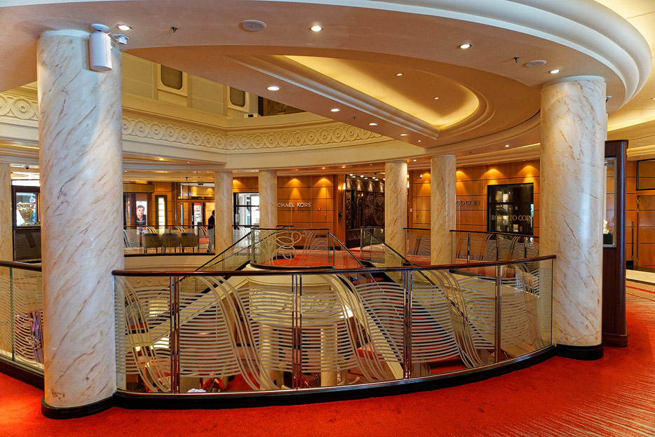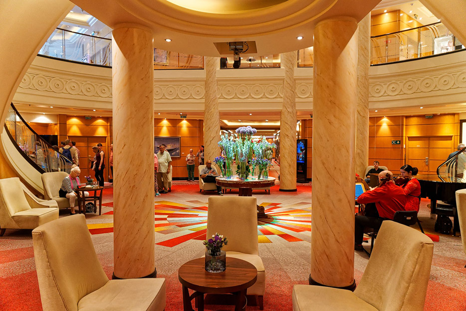 Bilder der Grand Lobby (Atrium) der Queen Mary 2