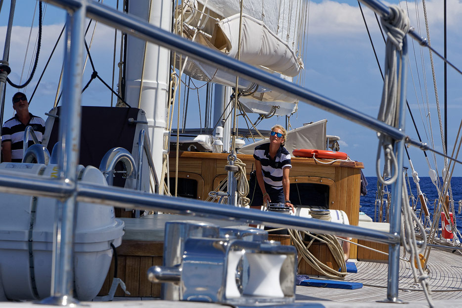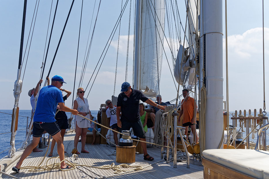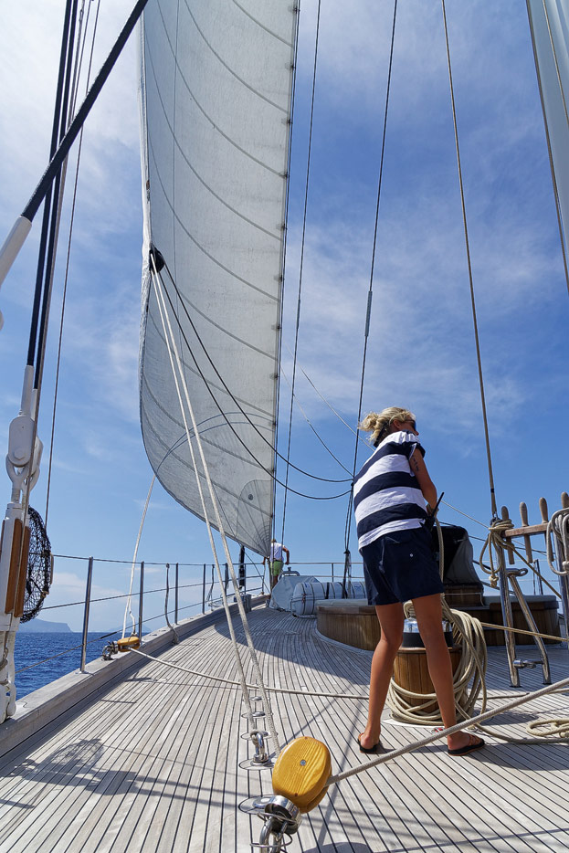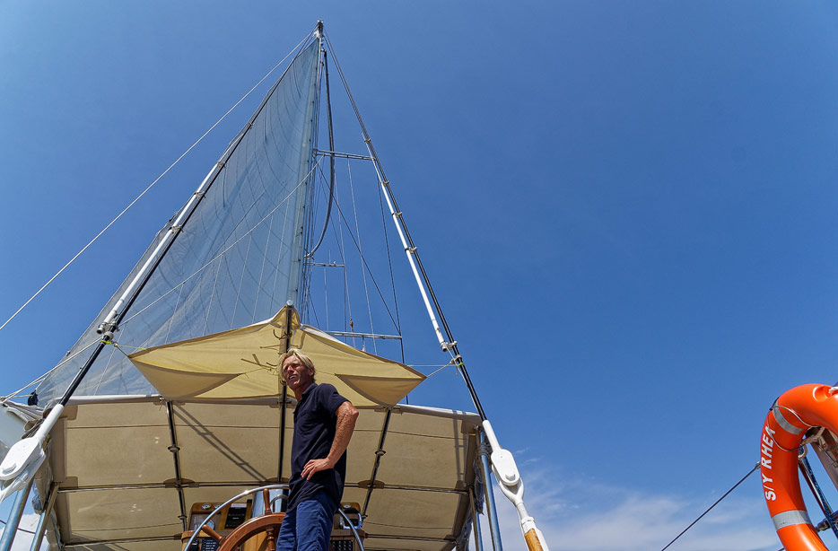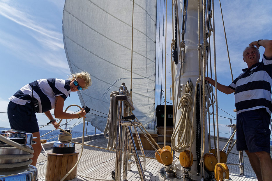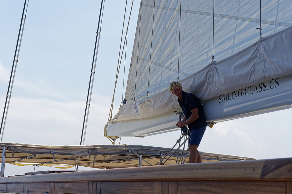 Kapitän richtet die Segel