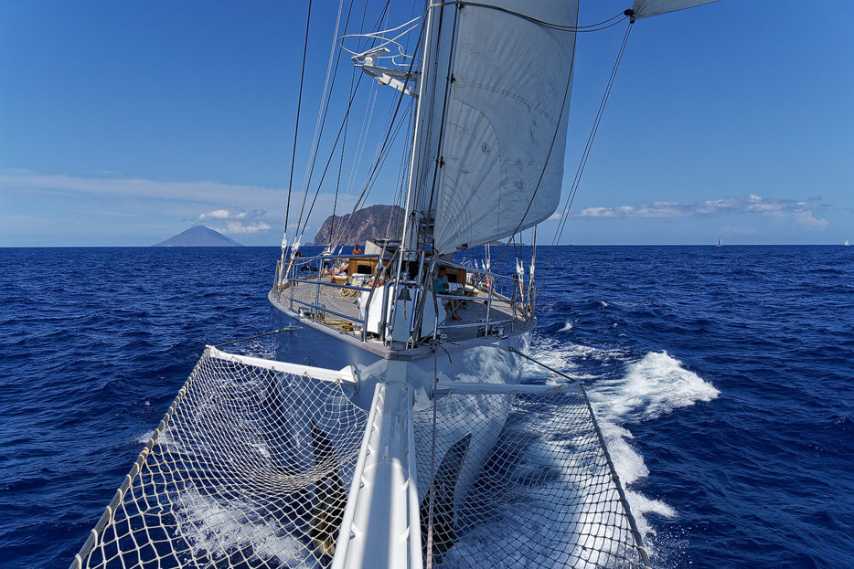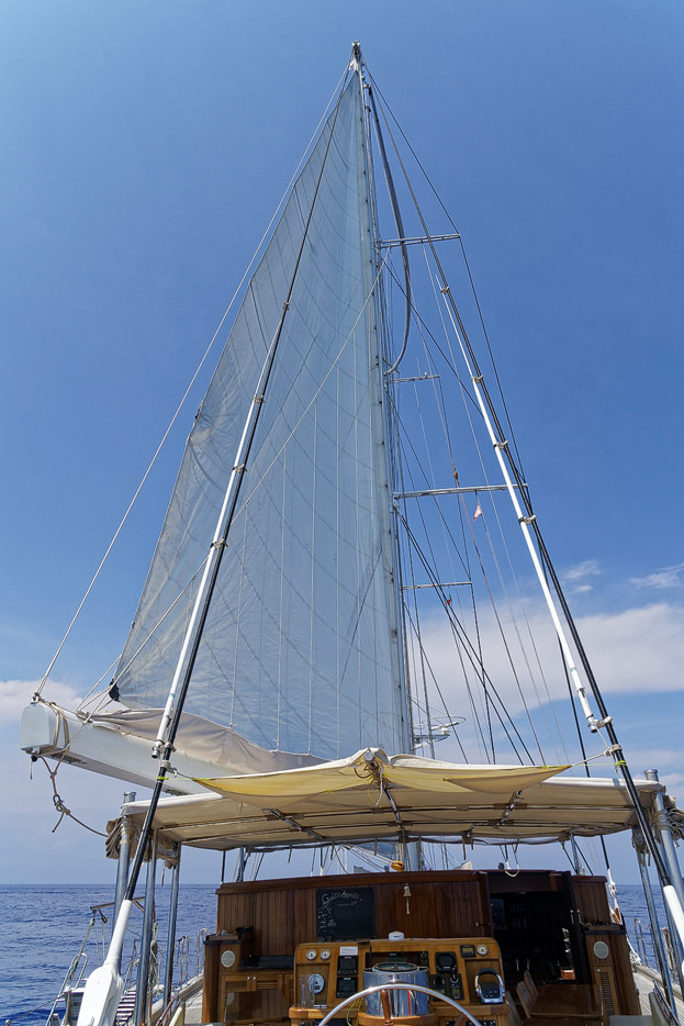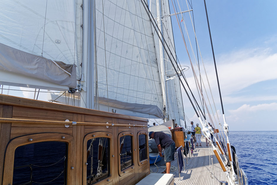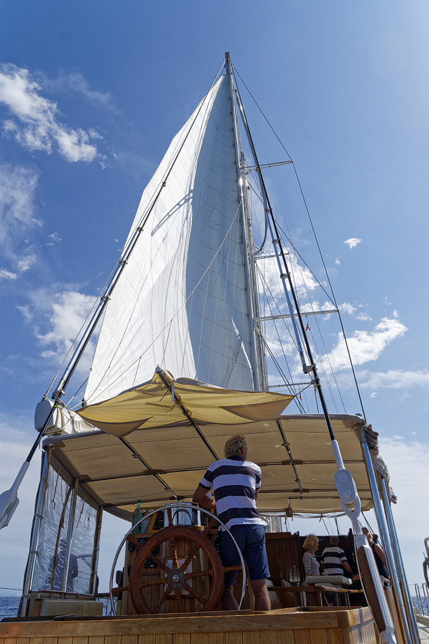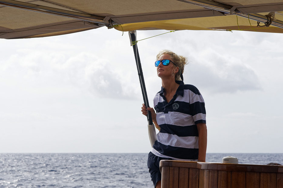 Kapitän richtet die Segel