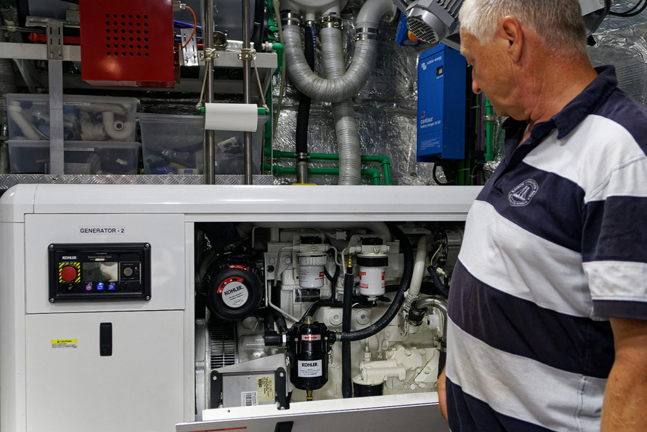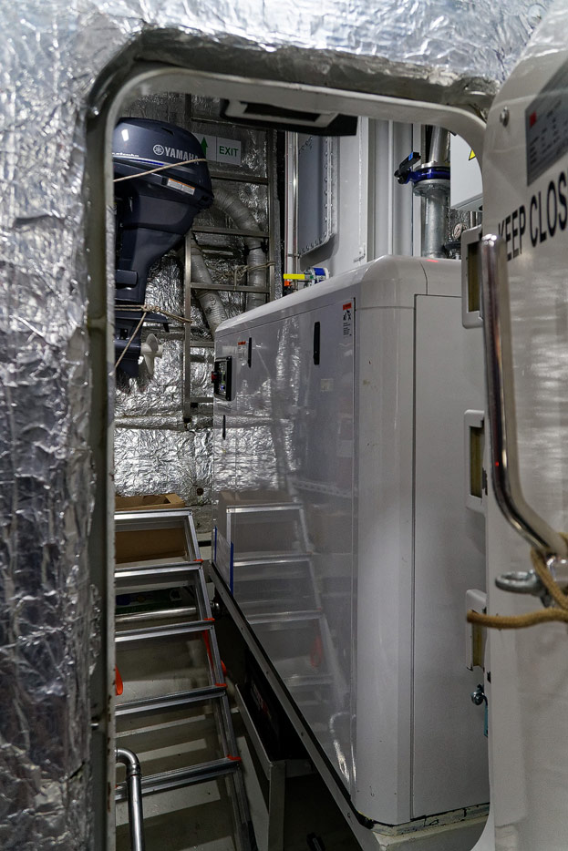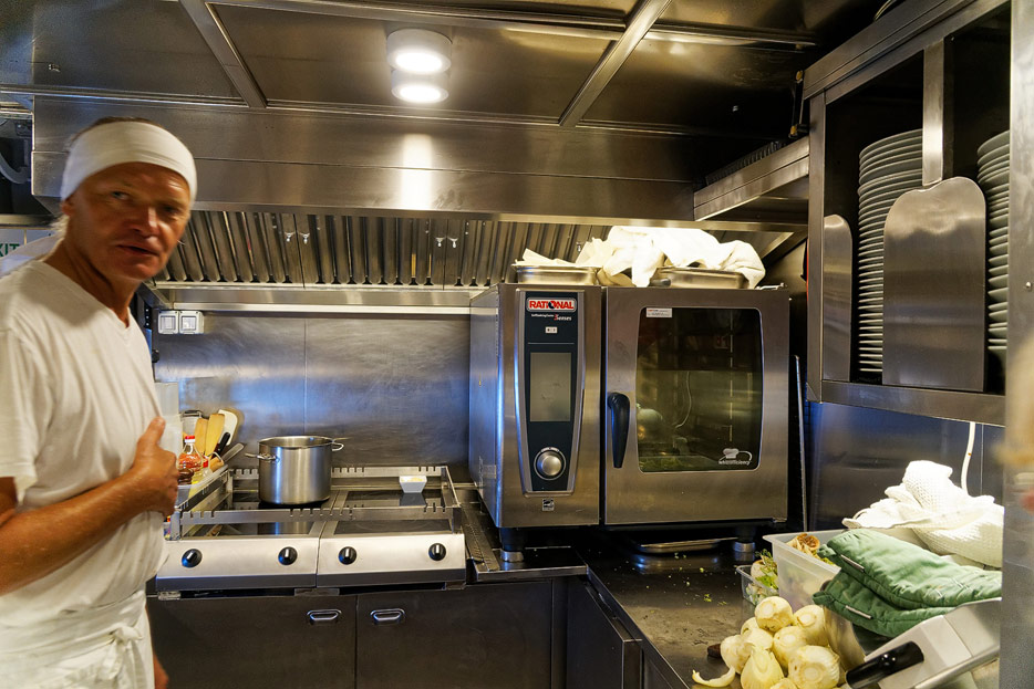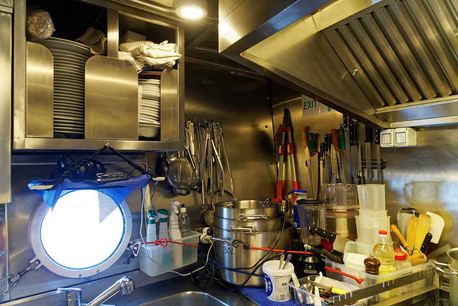 Bilder von den Bereichen unter Deck: Küche und Maschinenraum