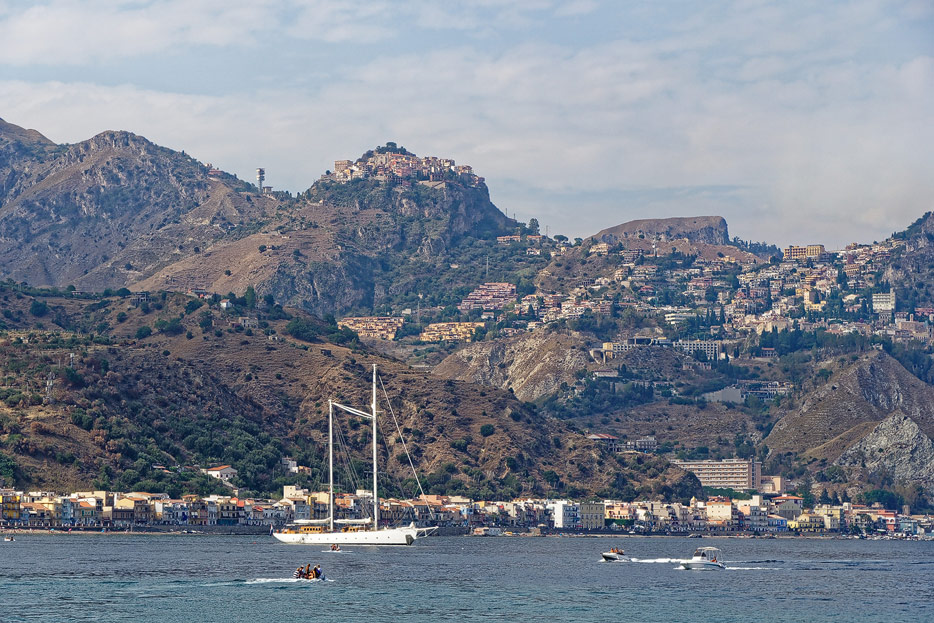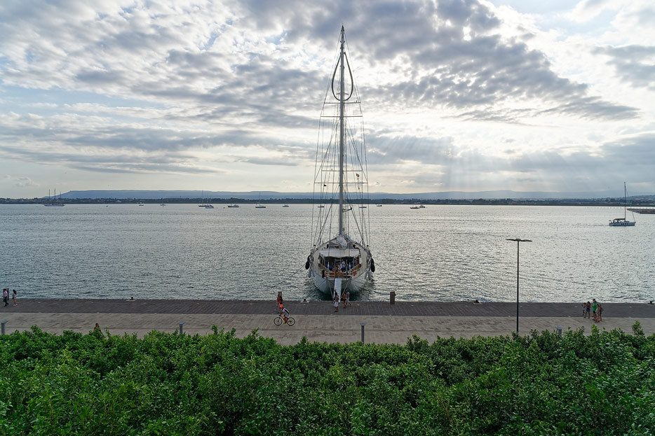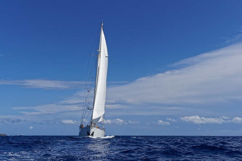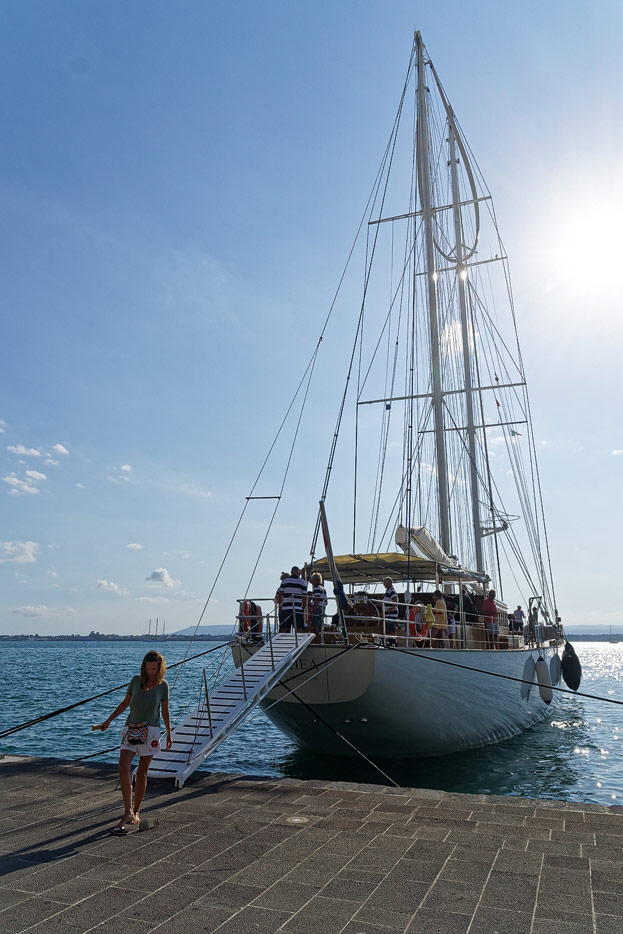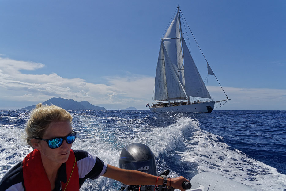 Rhea unter Segeln zwischen Vulcano und Lipari - Bootsfrau Nici