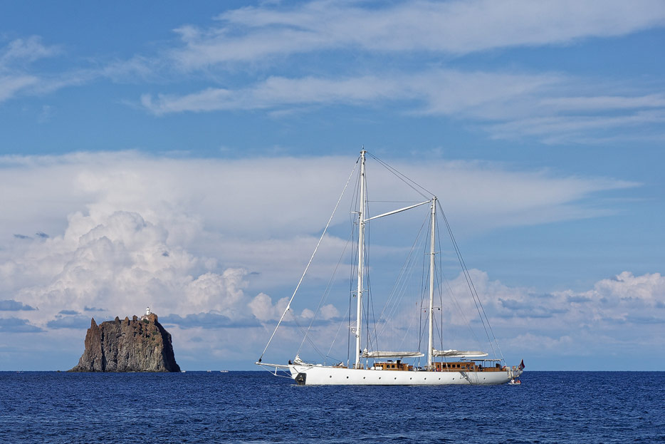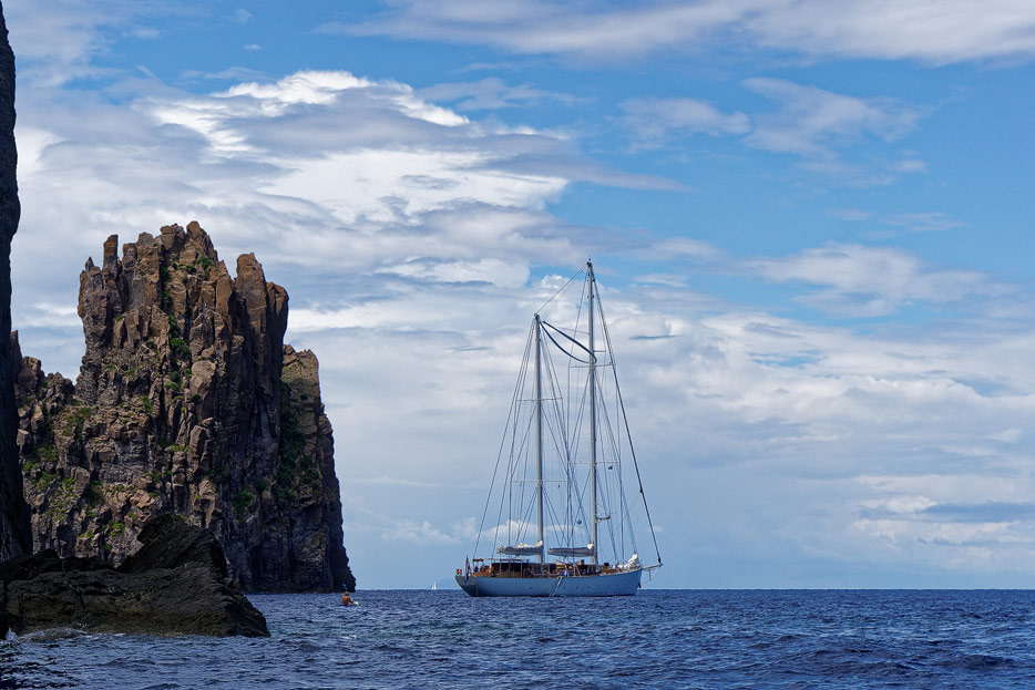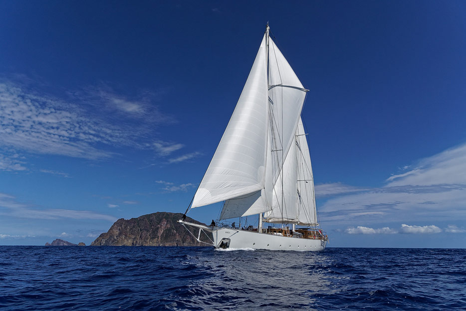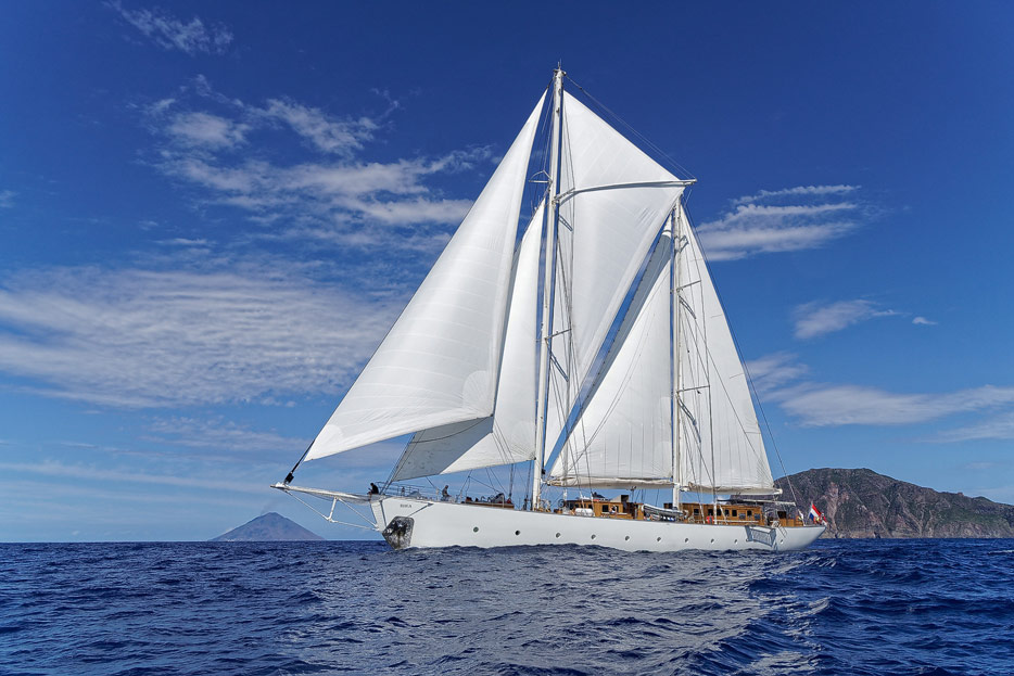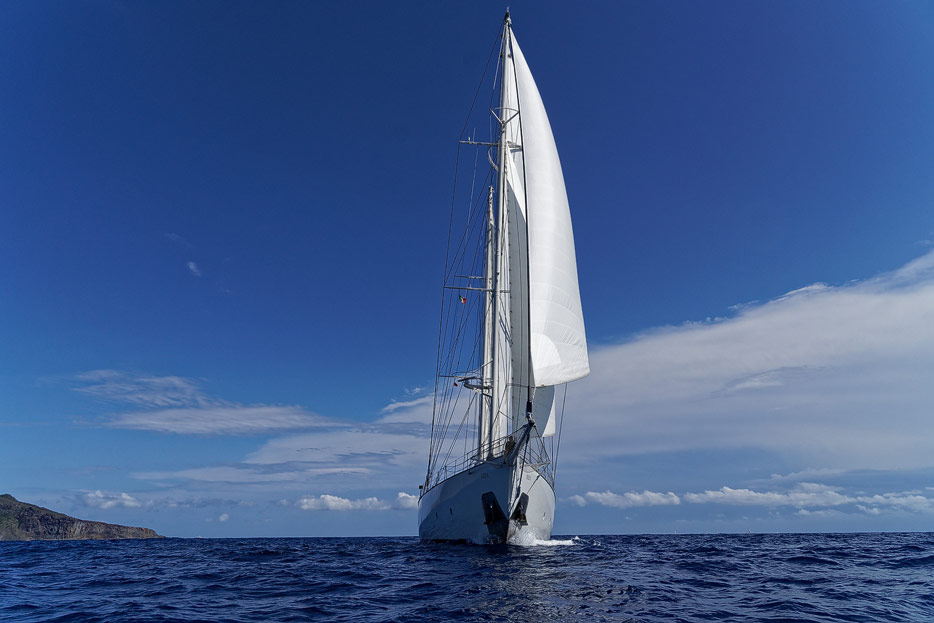 Rhea unter Segeln zwischen Vulcano und Lipari