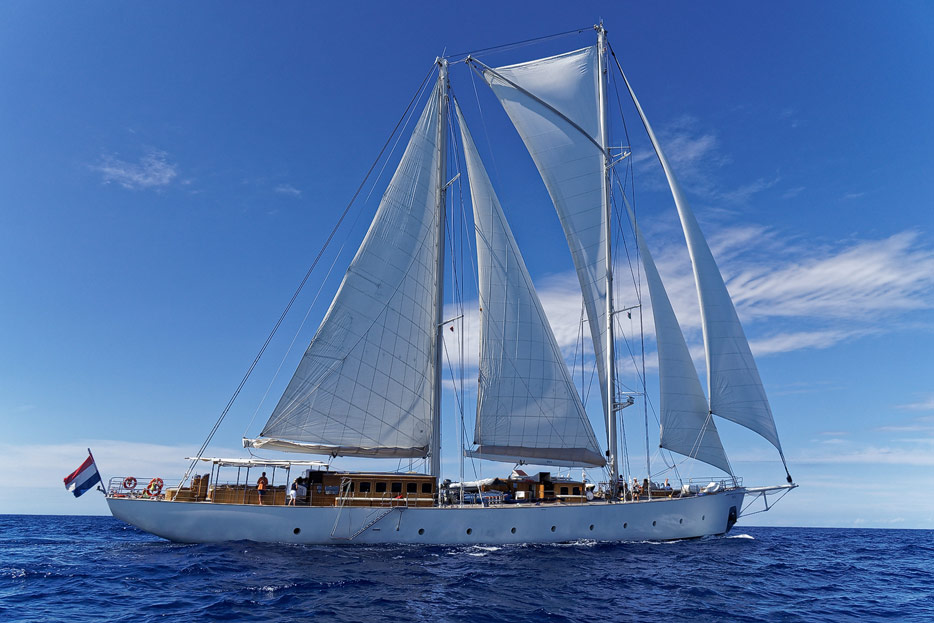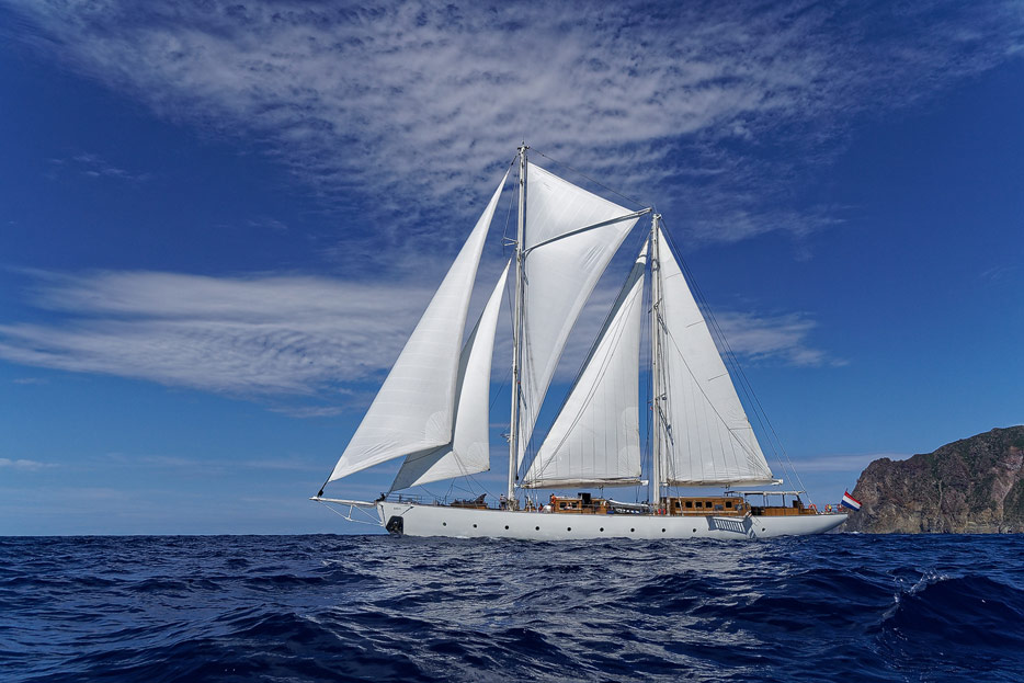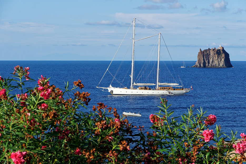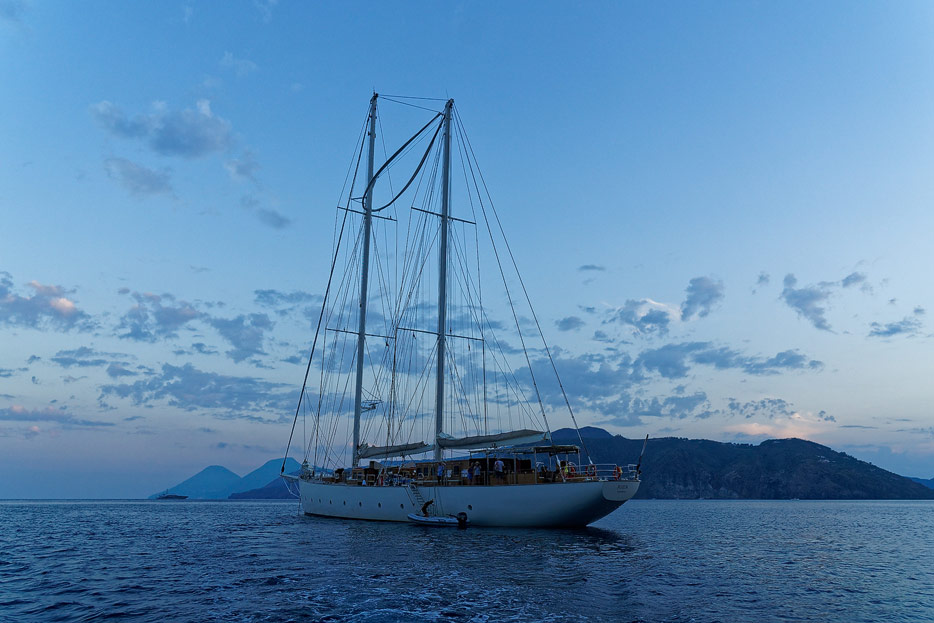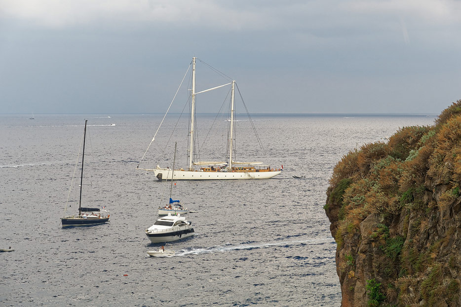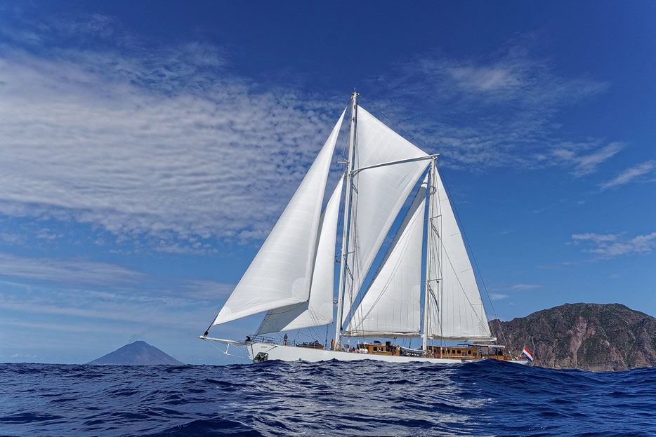 Rhea unter Segeln zwischen Vulcano und Lipari