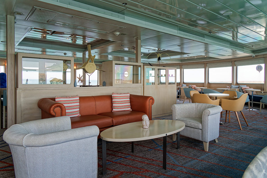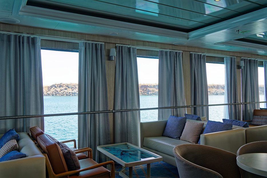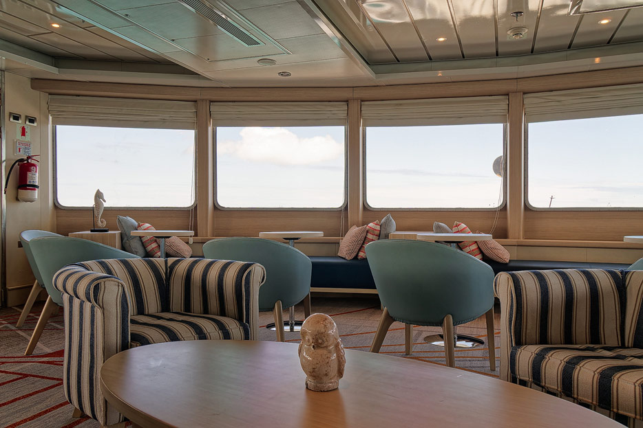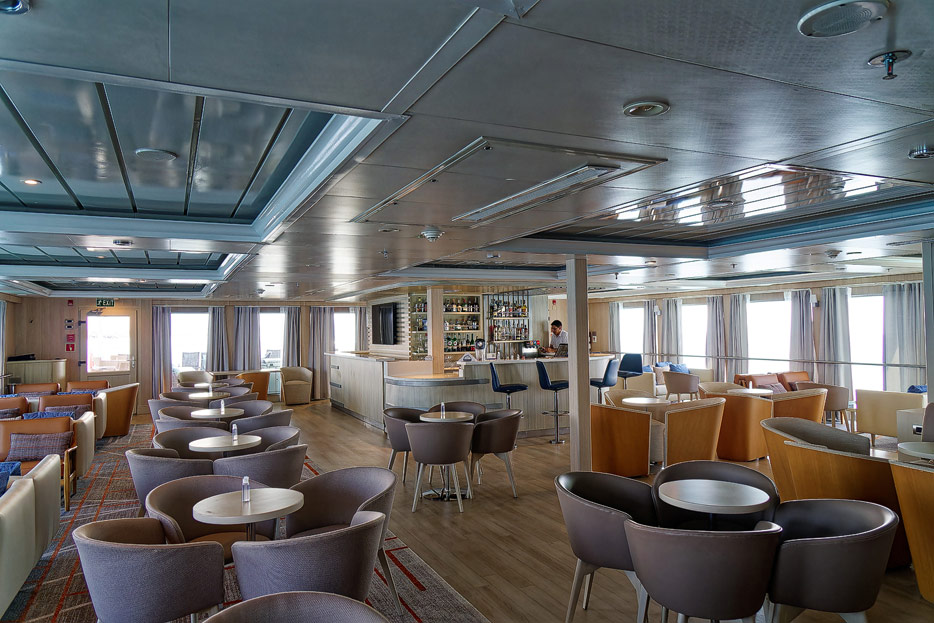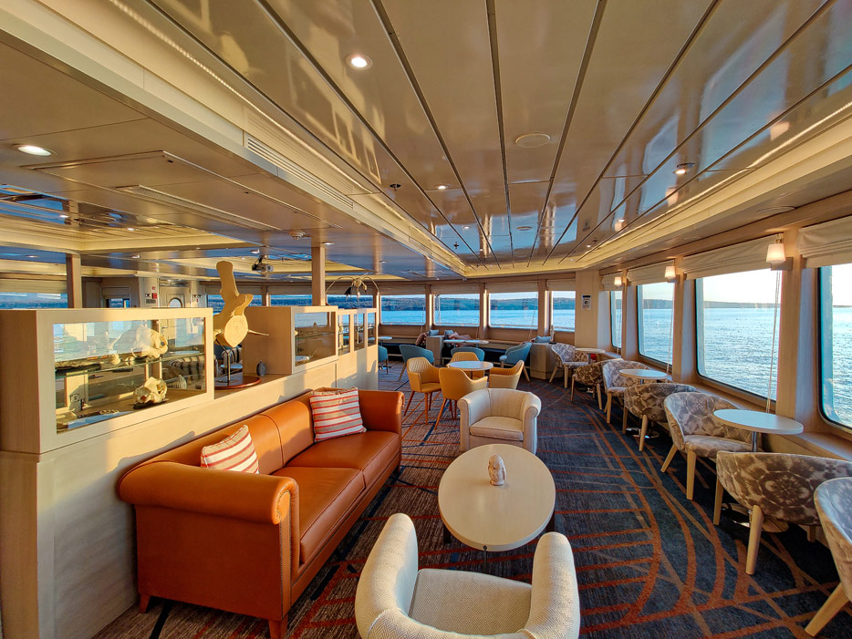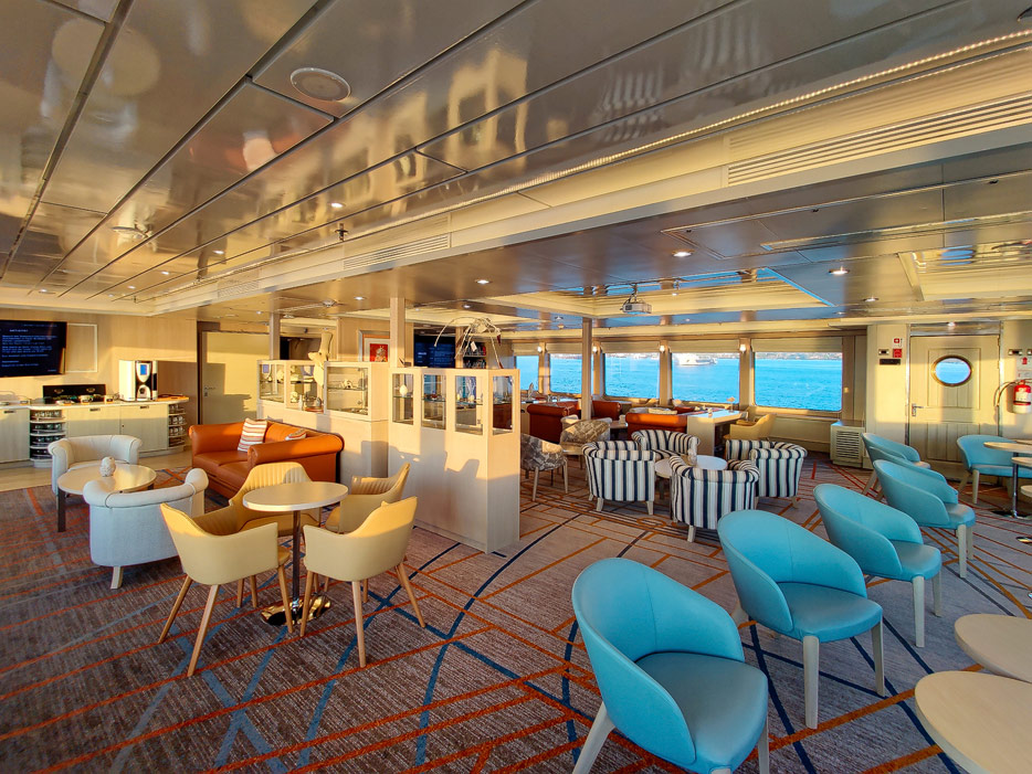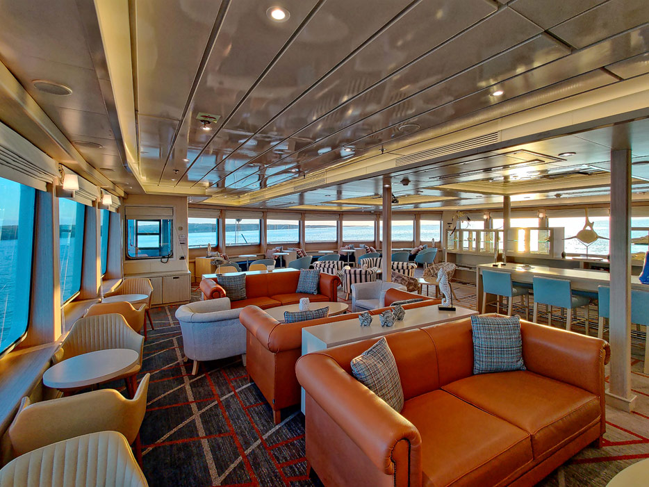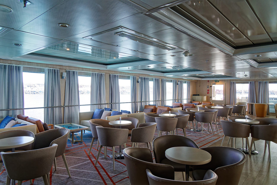 Bilder der Expedition Lounge und Panorama Lounge inklusive Außenbereich der Santa Cruz II von Hurtigruten