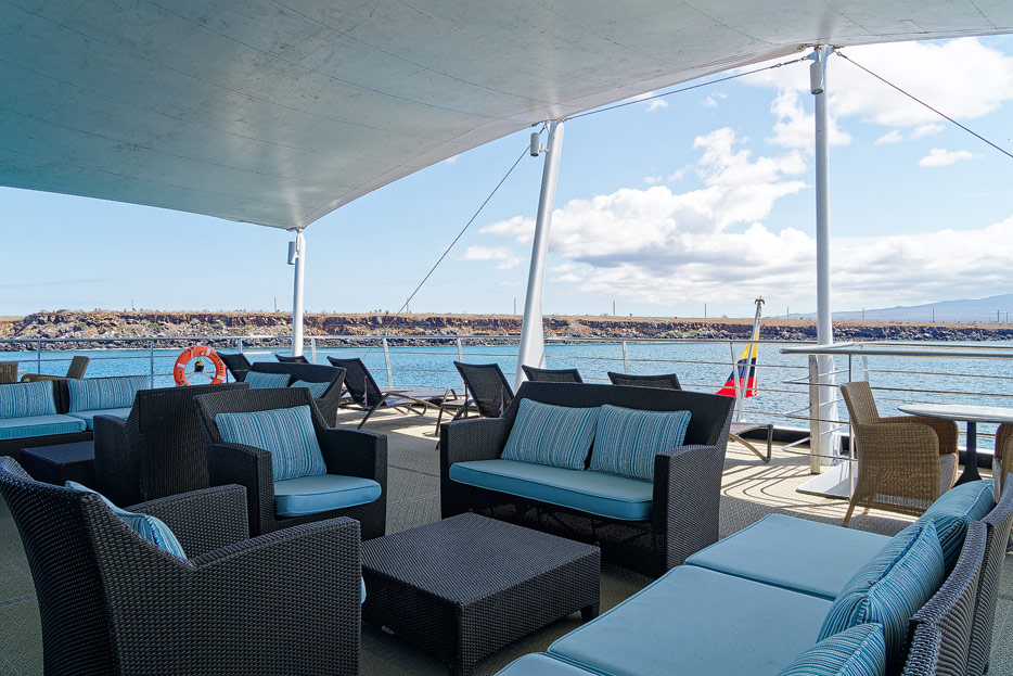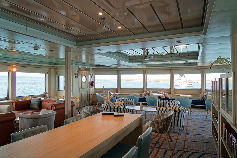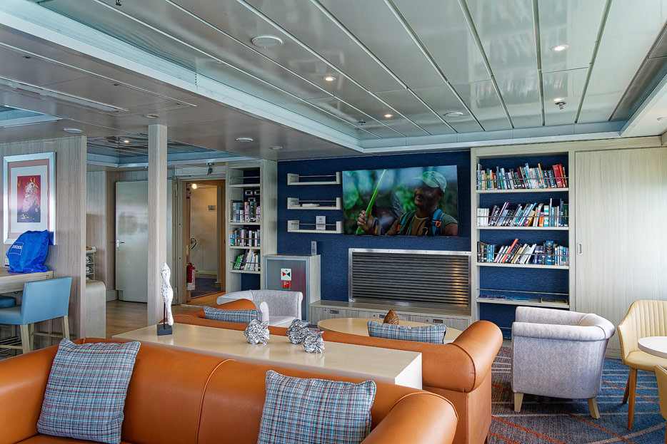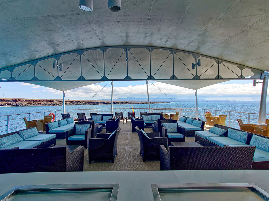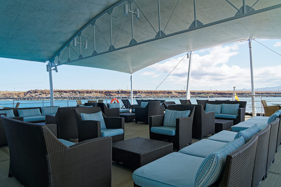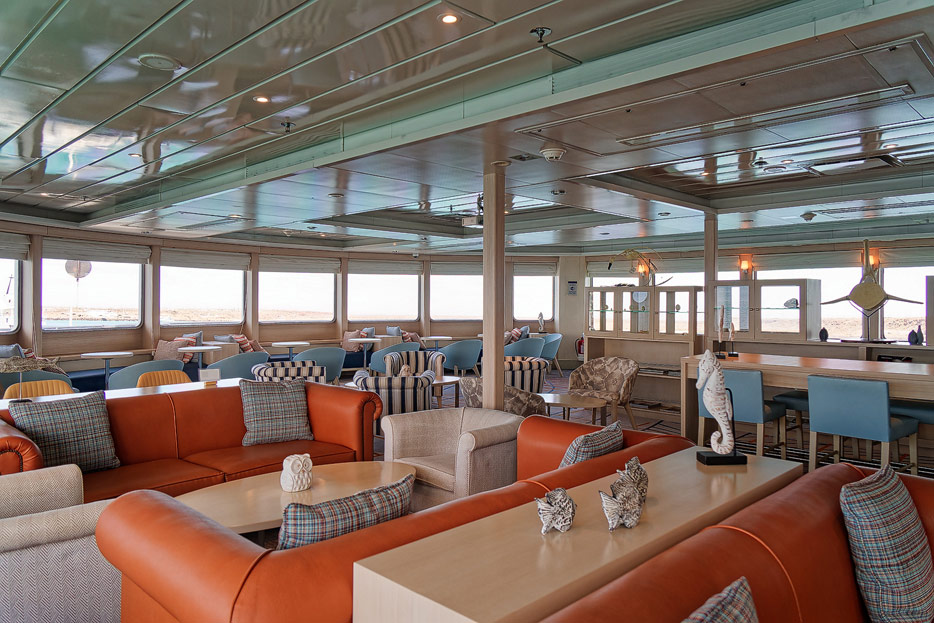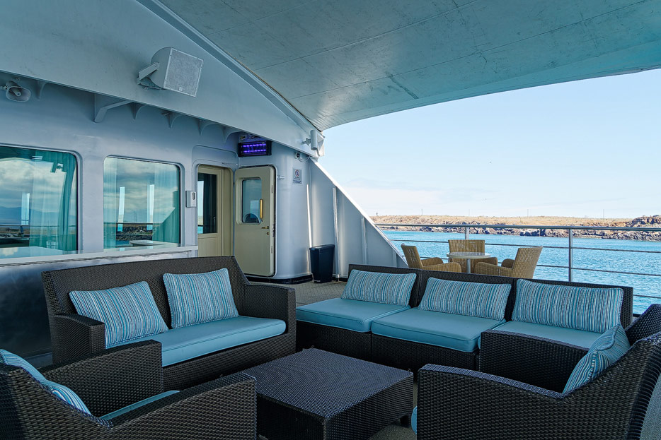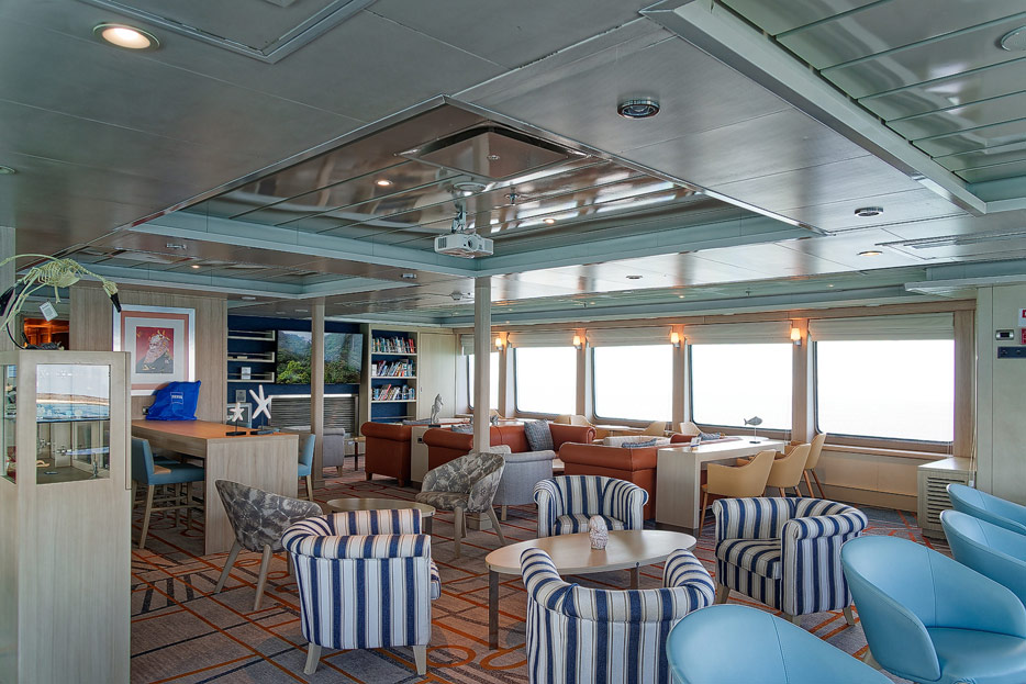 Bilder der Expedition Lounge und Panorama Lounge inklusive Außenbereich der Santa Cruz II von Hurtigruten