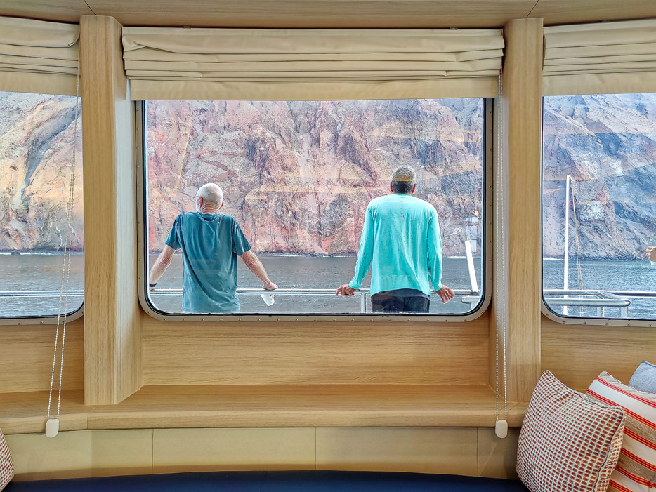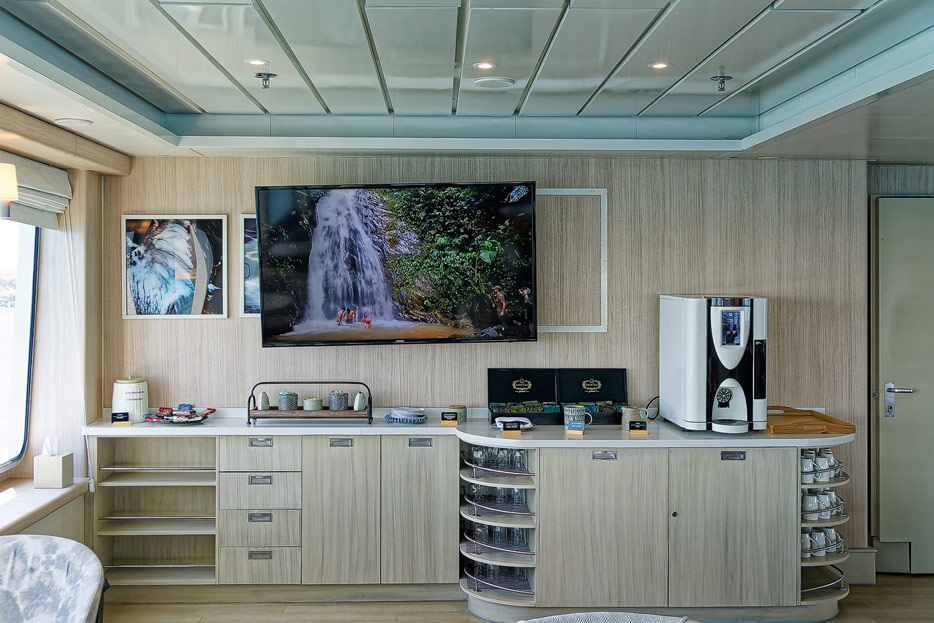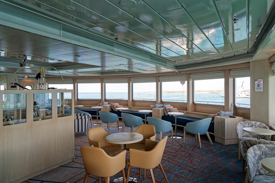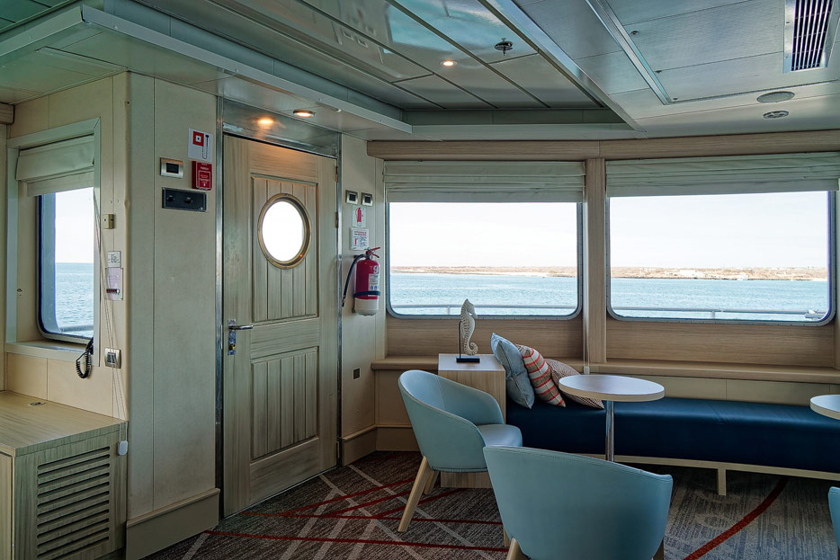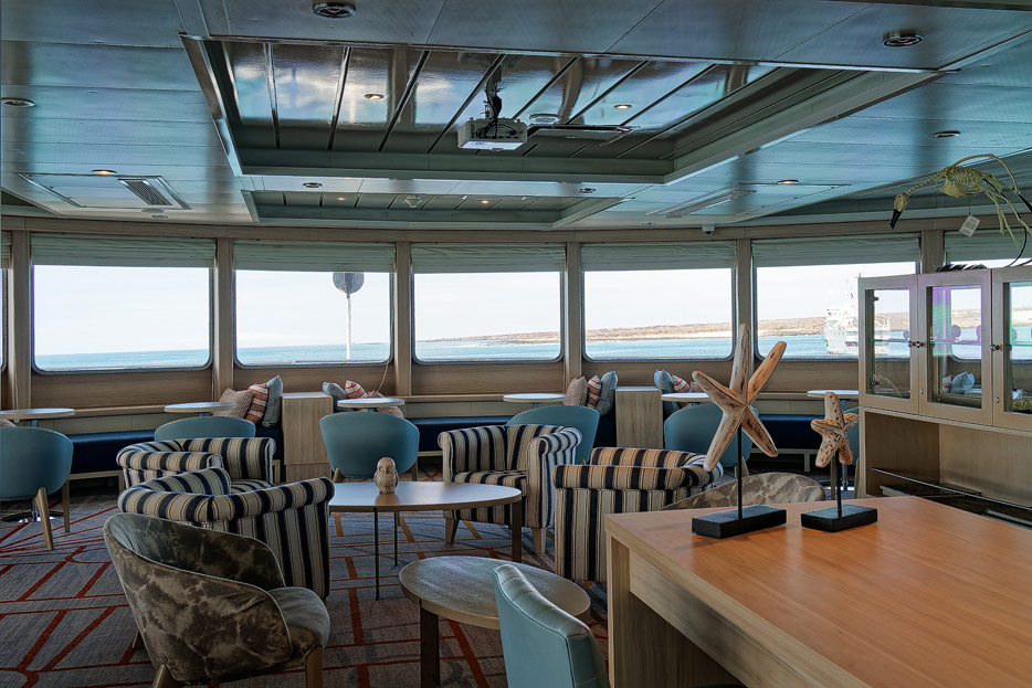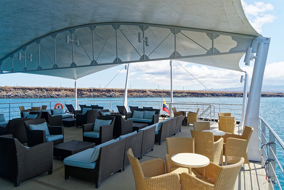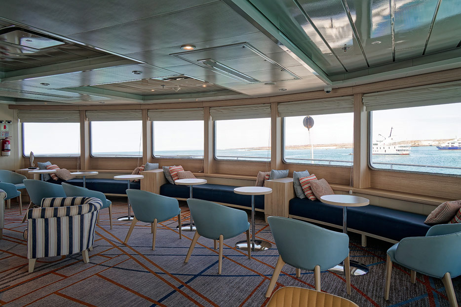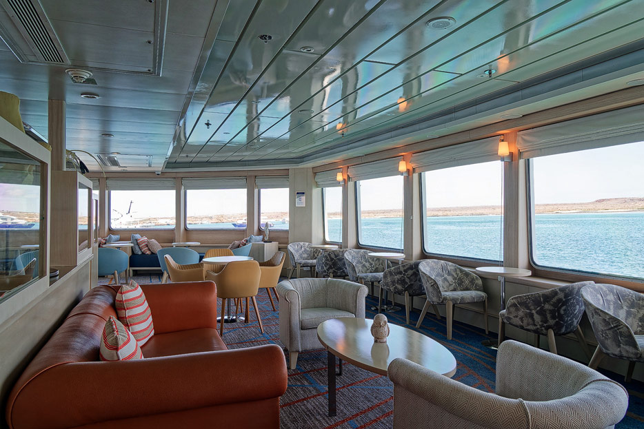 Bilder der Expedition Lounge und Panorama Lounge inklusive Außenbereich der Santa Cruz II von Hurtigruten