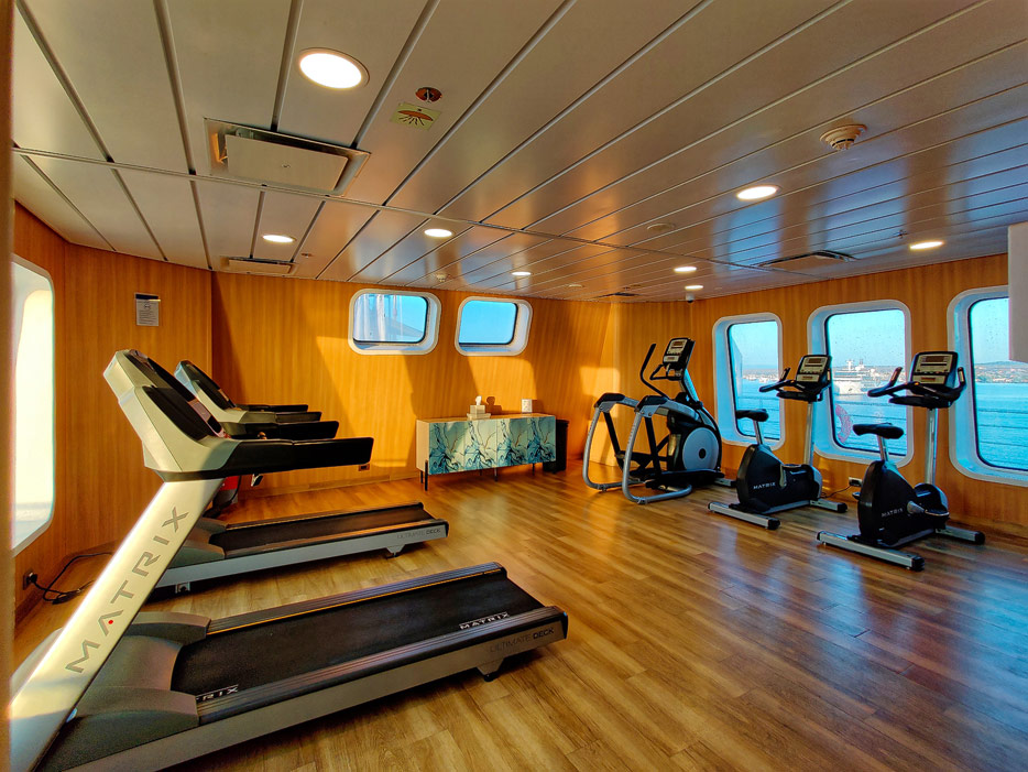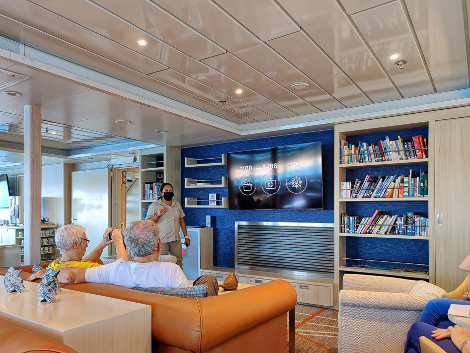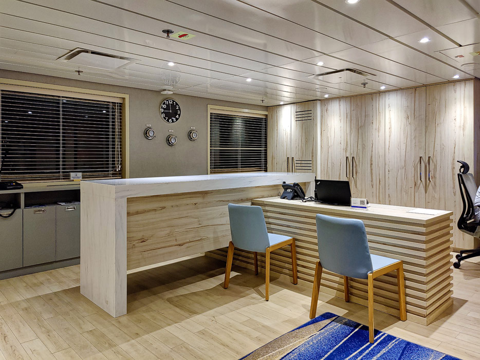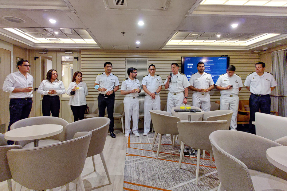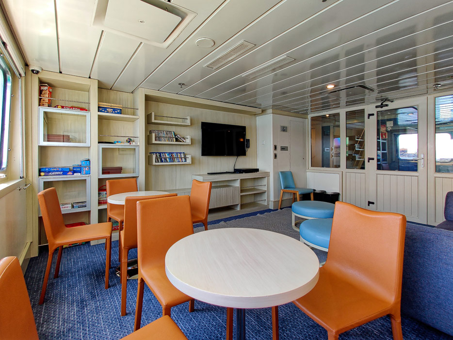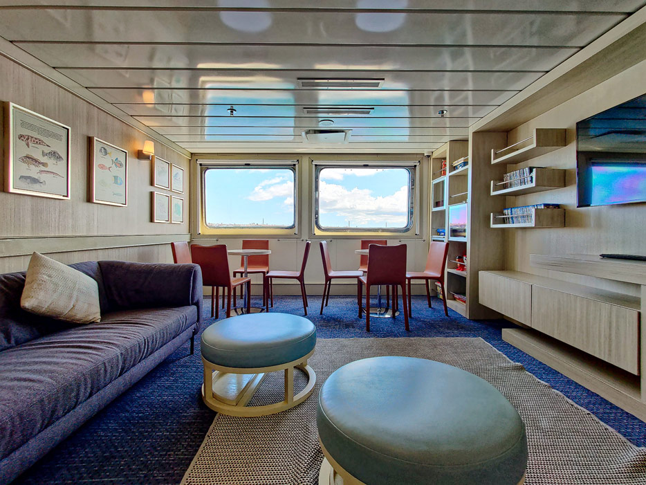 Bilder weiterer Bereiche der Santa Cruz II von Hurtigruten: Rezeption, Treppenhaus, Shop, Discovery Room