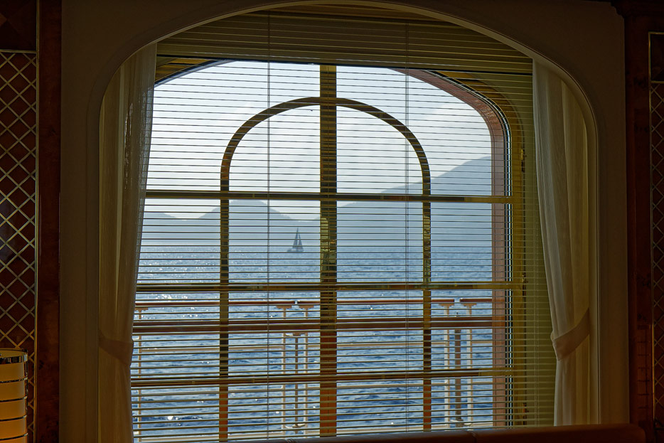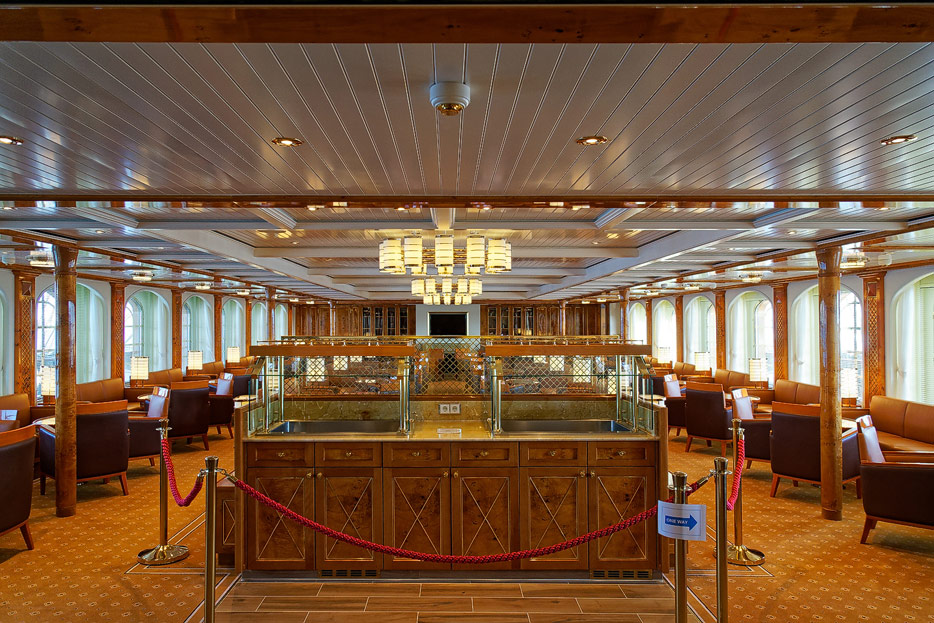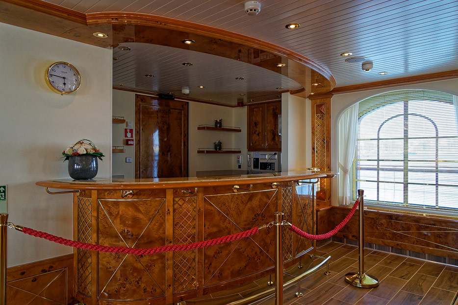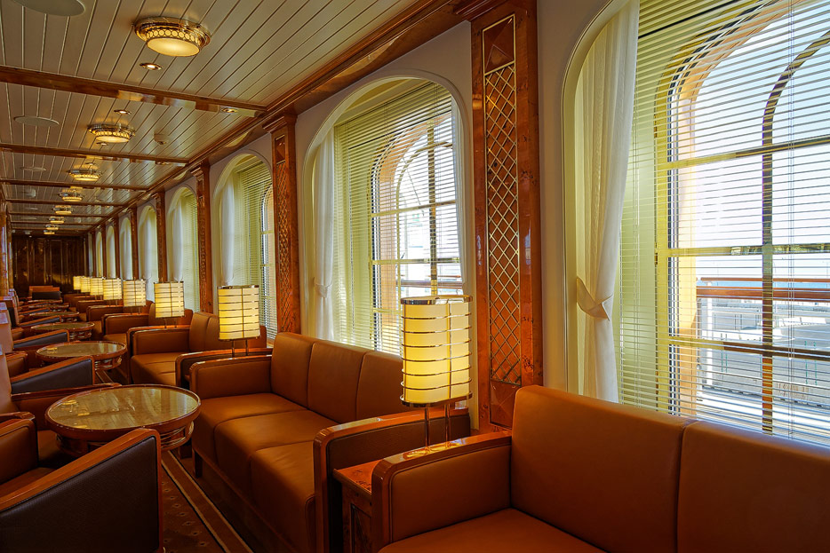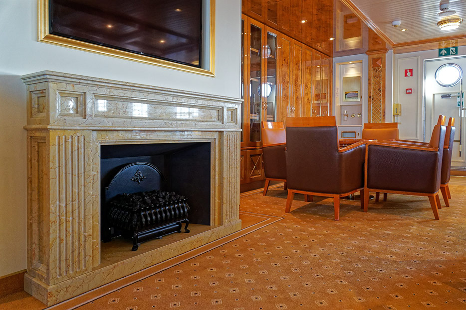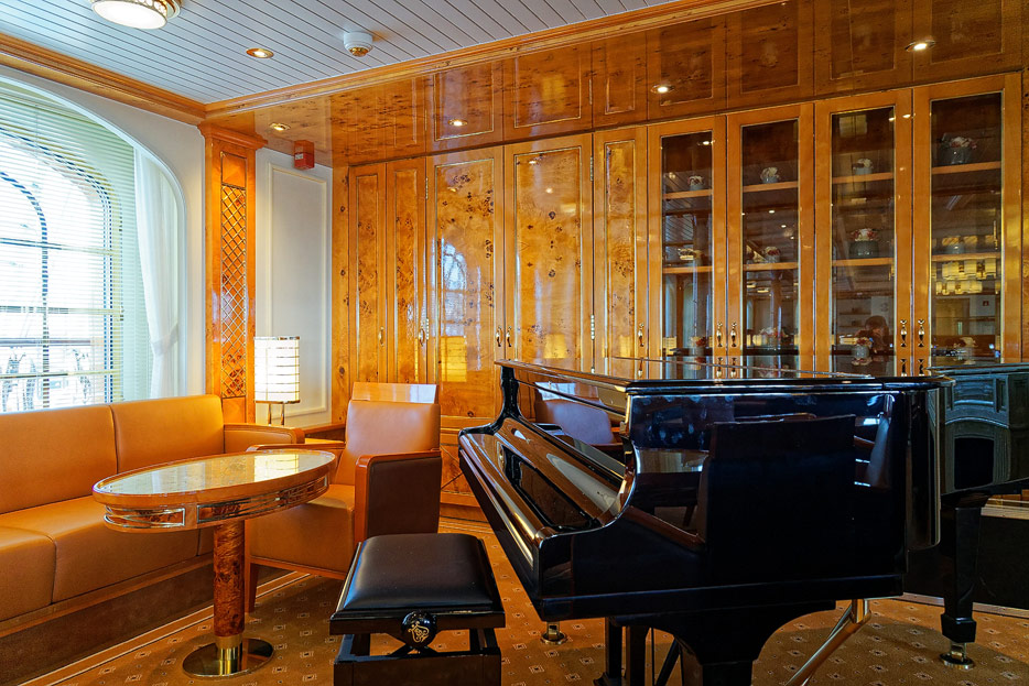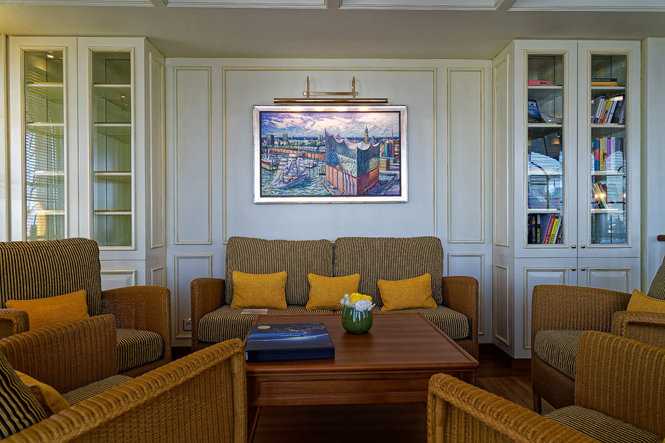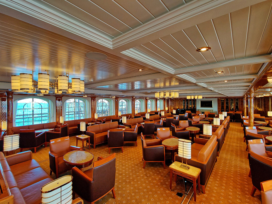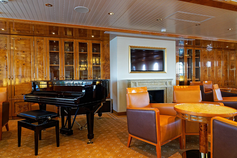 Bilder der Lounge und der Bibliothek der Seacloud Spirit