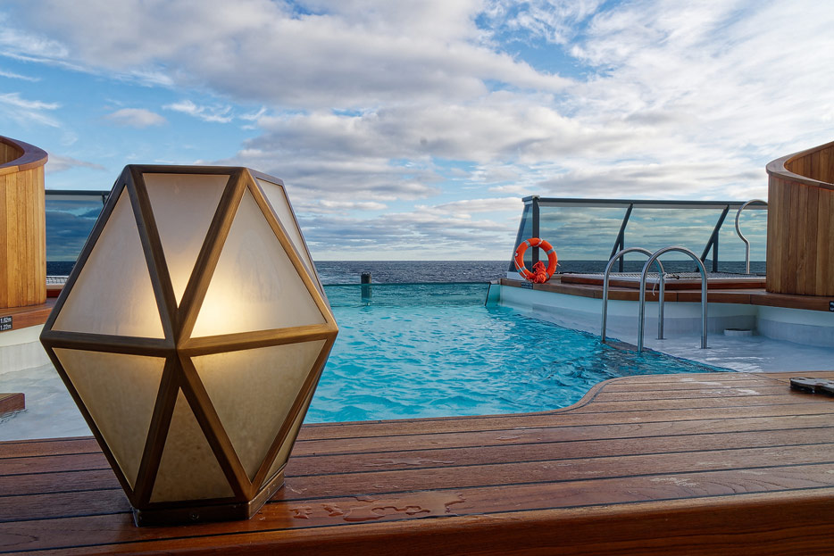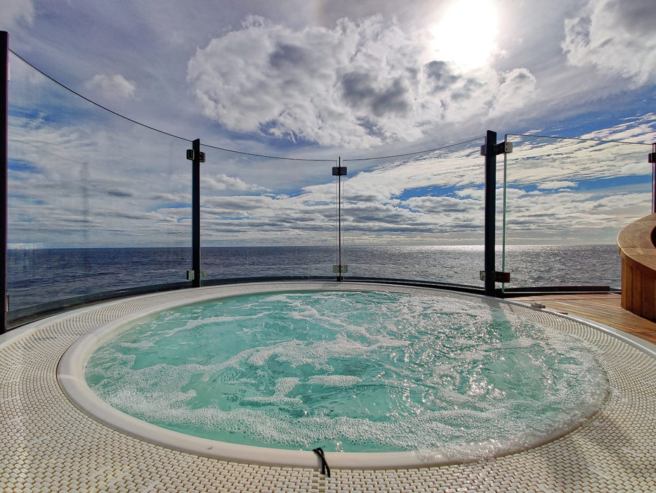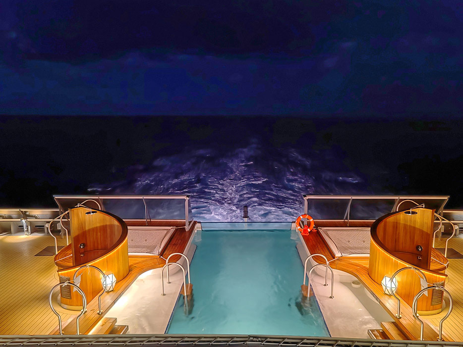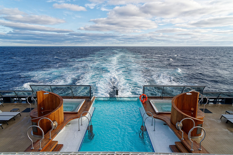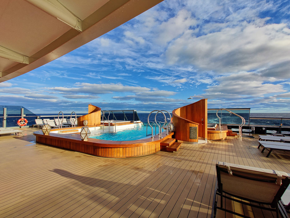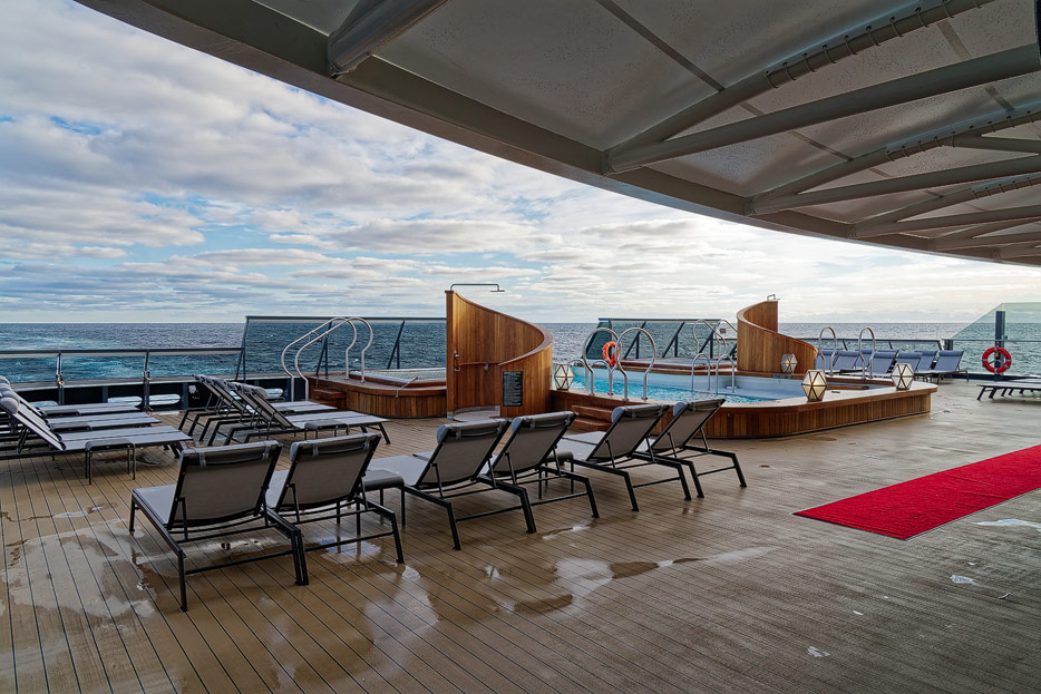 Bilder der Aussendecks der Seabourn Venture, Infinity Pool, The Patio, Whirlpools
