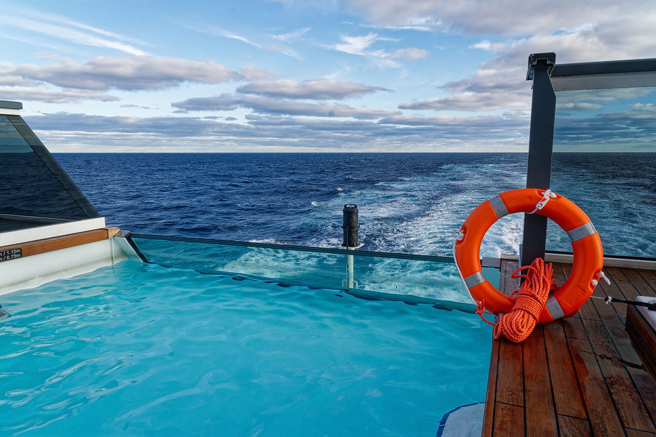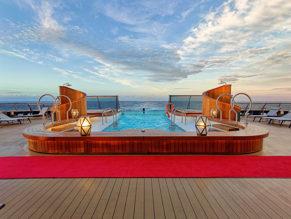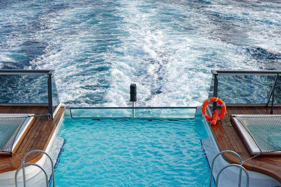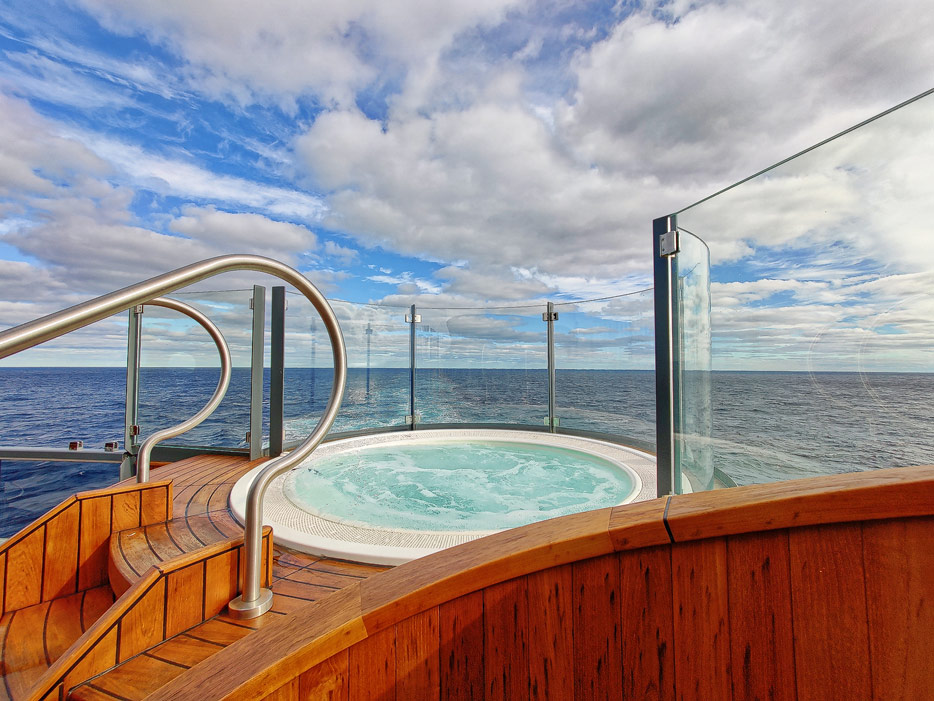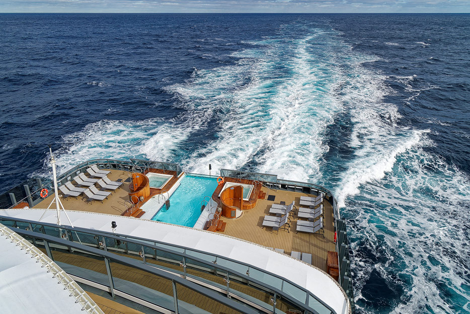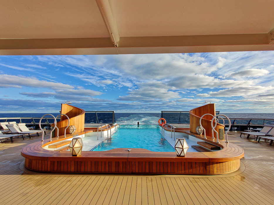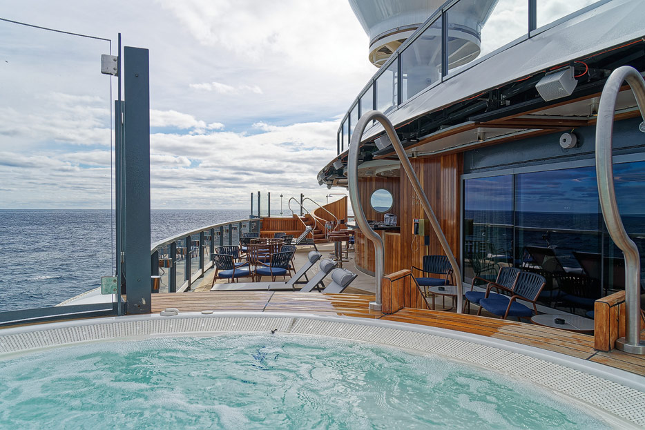 Bilder der Aussendecks der Seabourn Venture, Infinity Pool, The Patio, Whirlpools