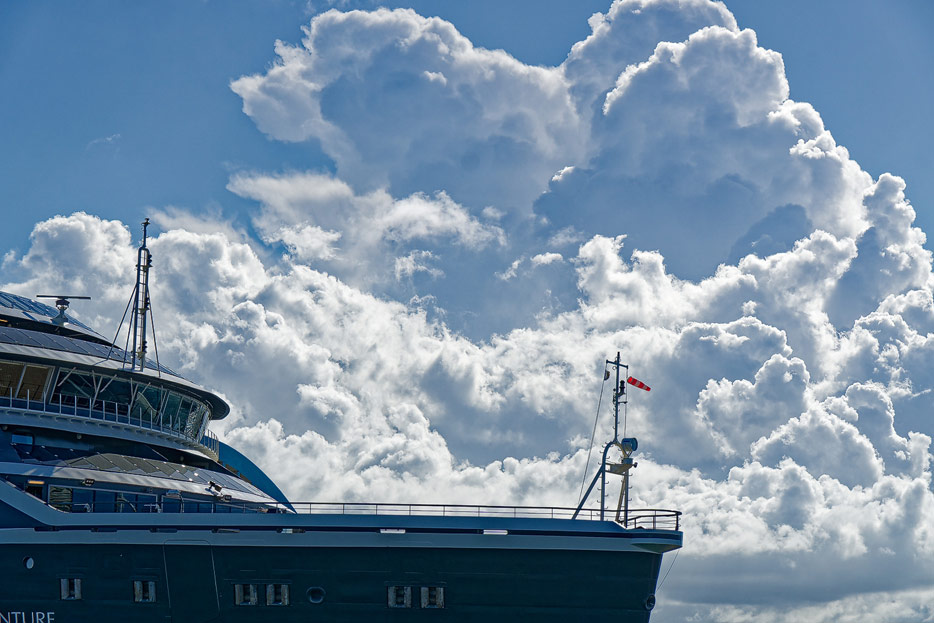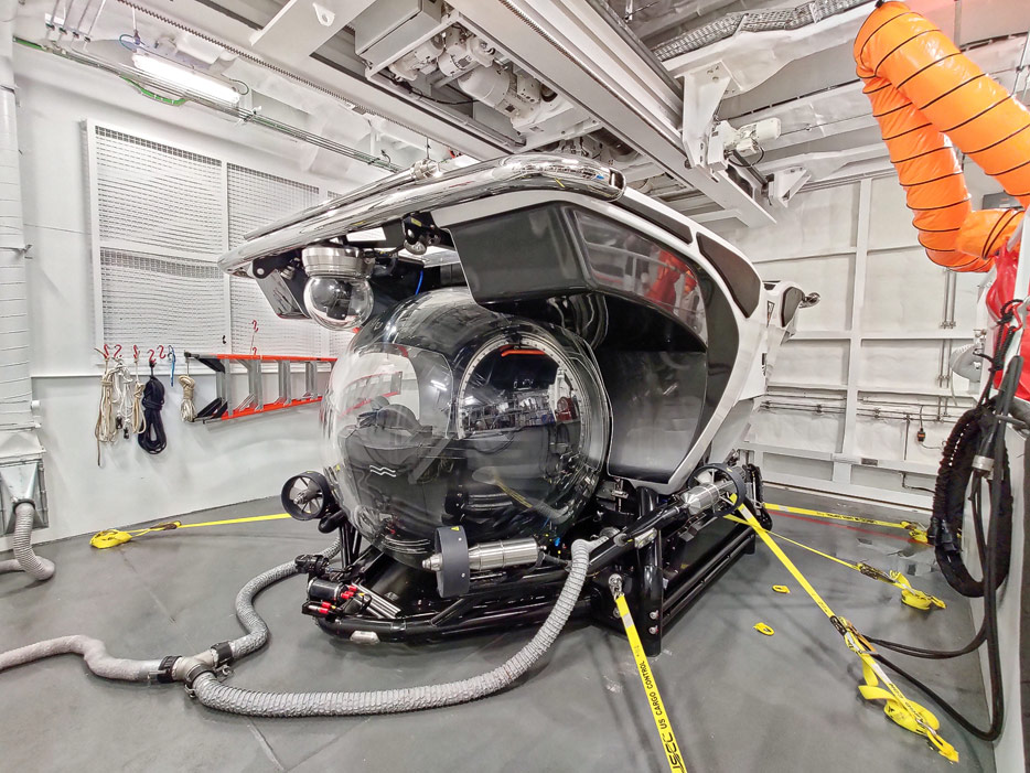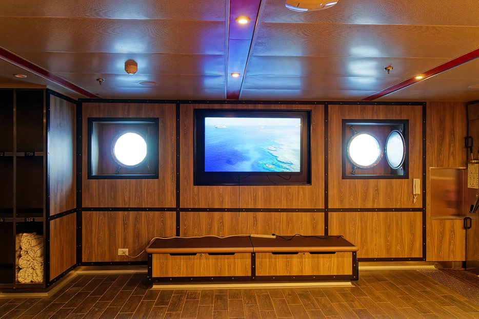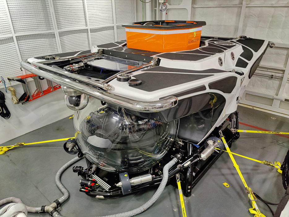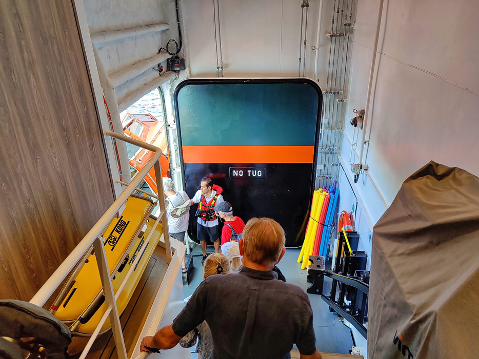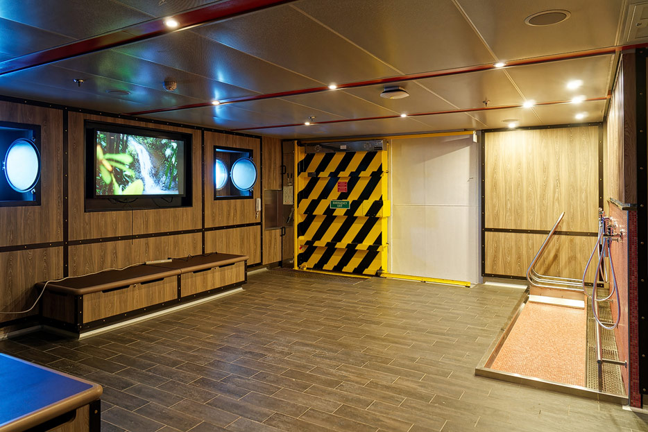 Bilder der Seabourn Venture, Außenansichten, Brücke, U-Boot, Embarkation Zone / Mud Room