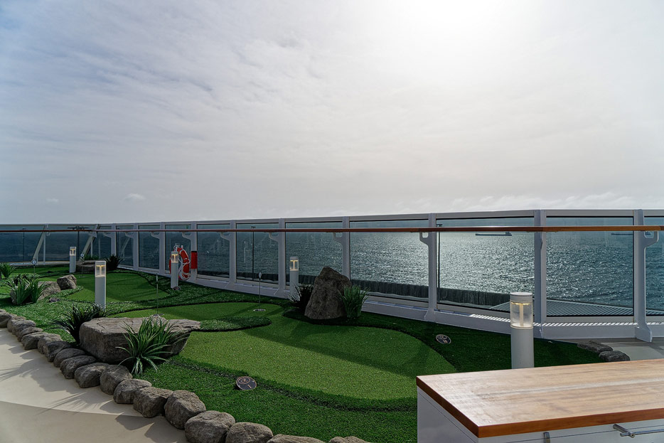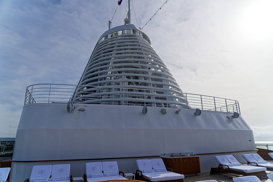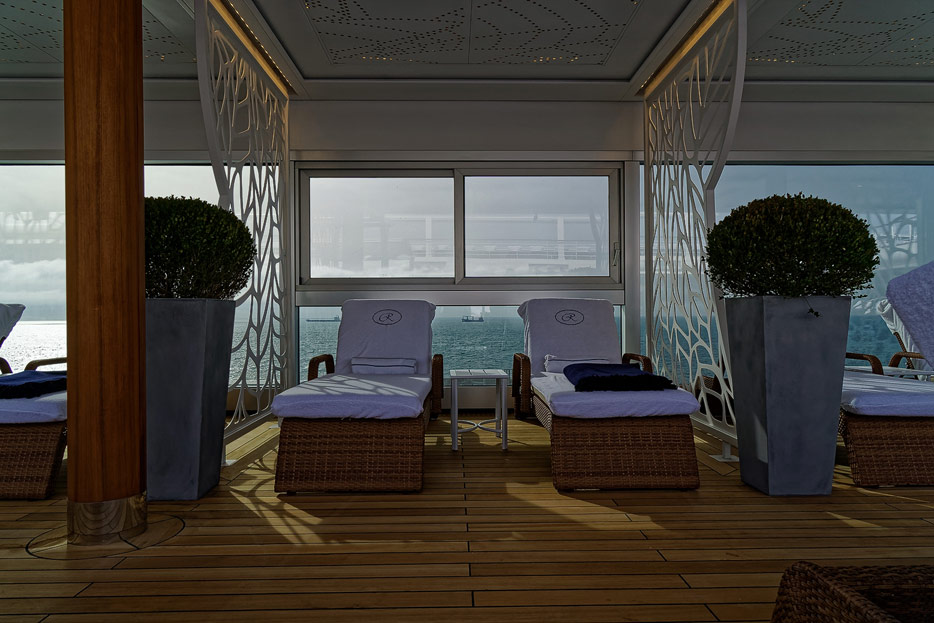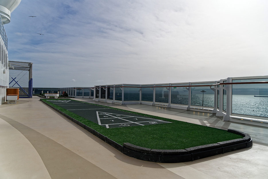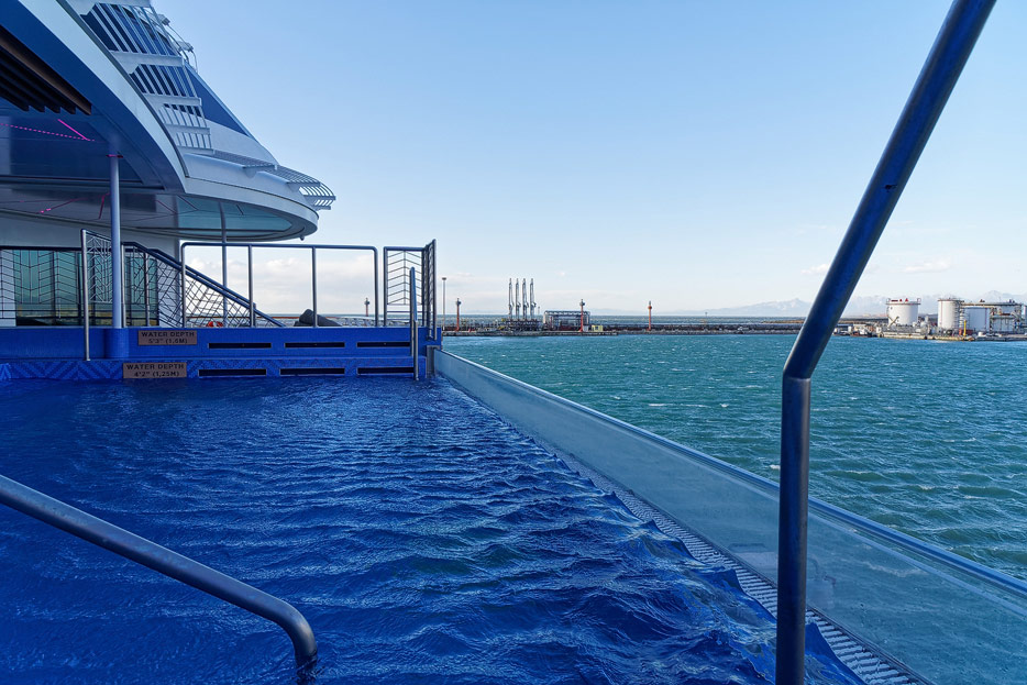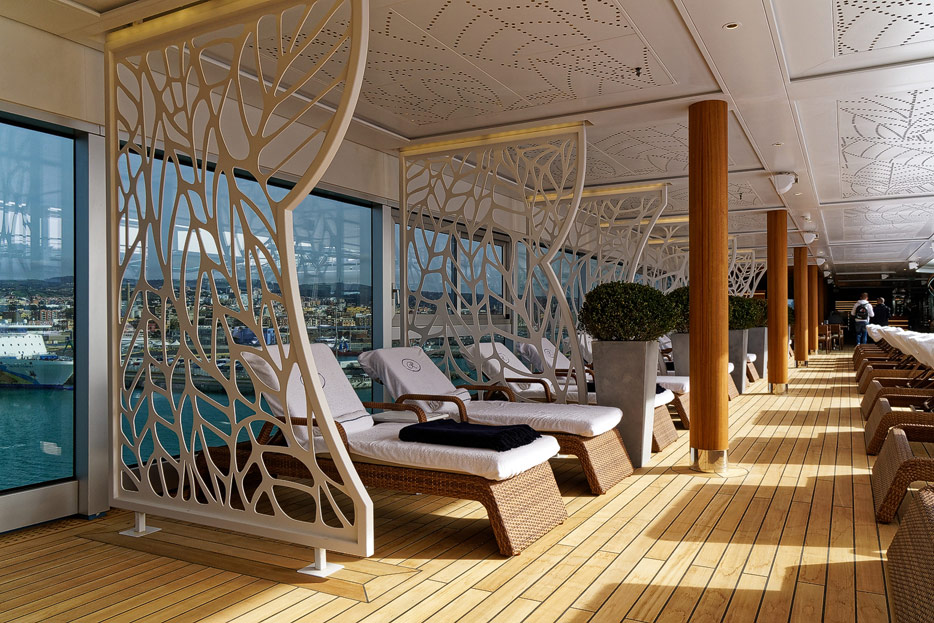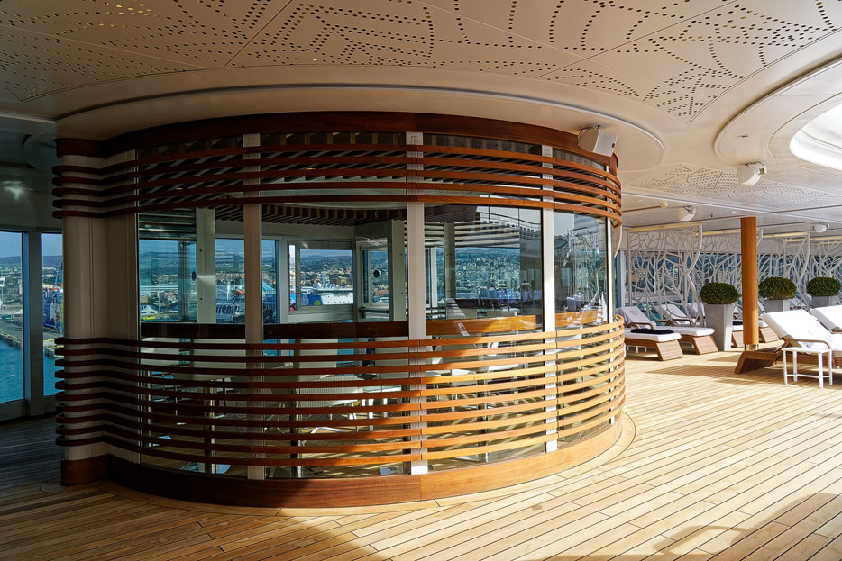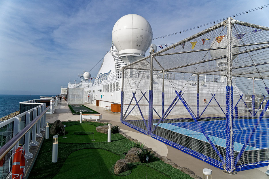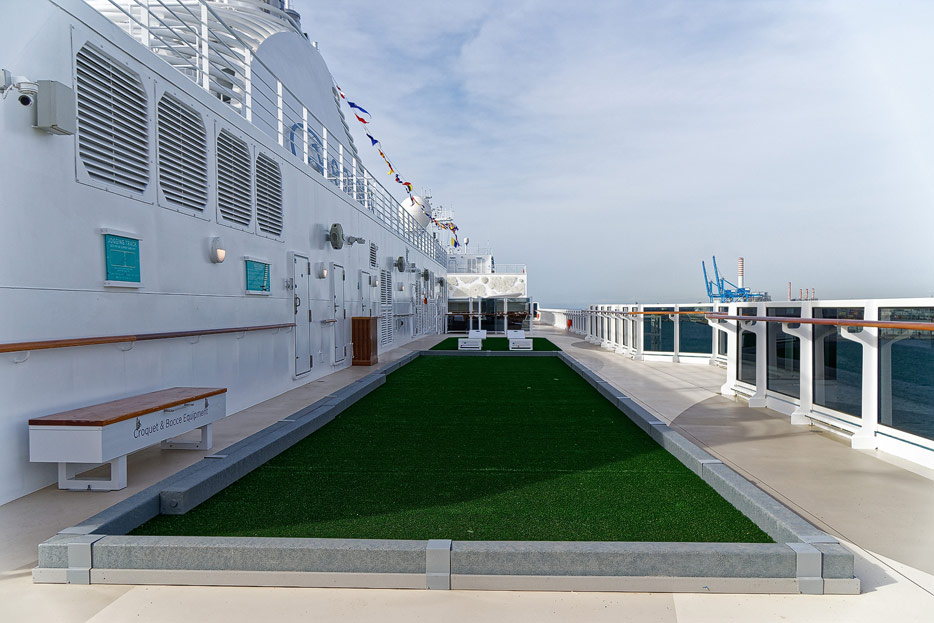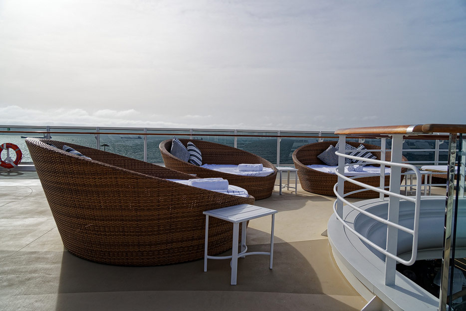Pool, Infinity-Pool, Sonnendeck, Sportsdeck und Promenadendeck der Seven Seas Splendor
