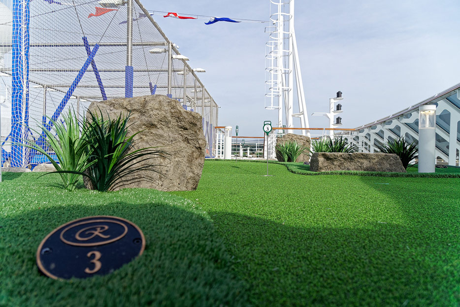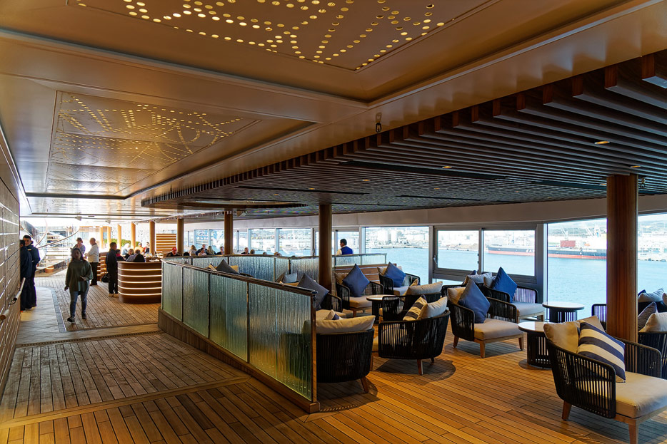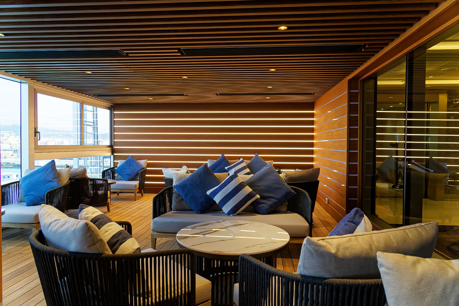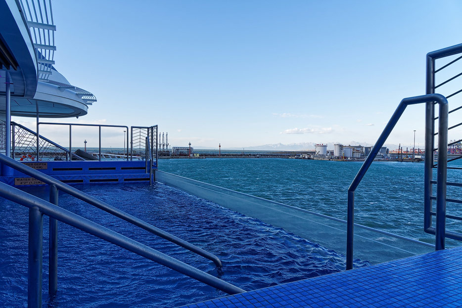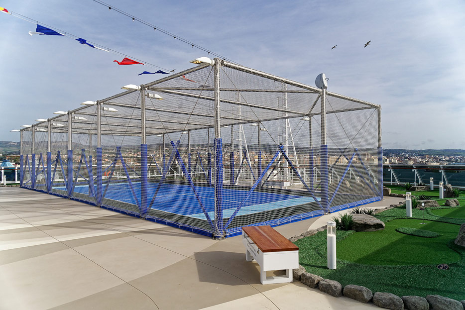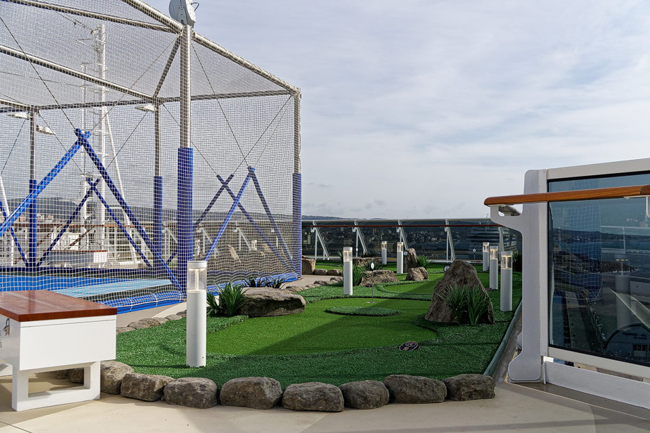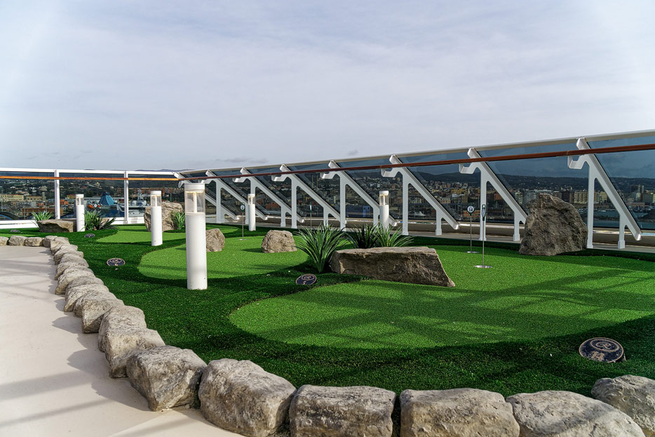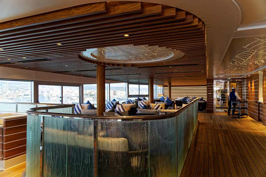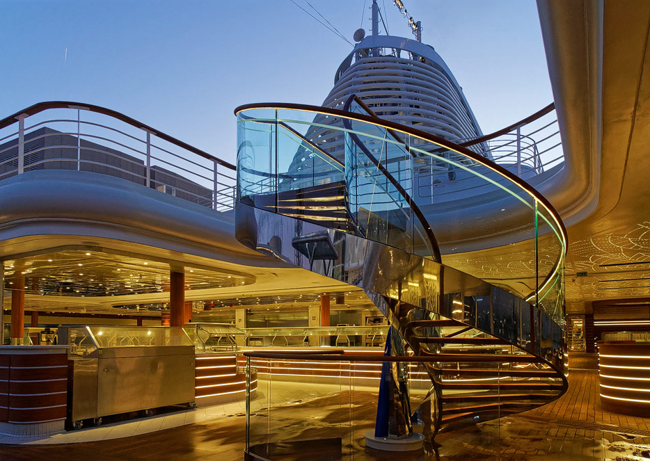 Pool, Infinity-Pool, Sonnendeck, Sportsdeck und Promenadendeck der Seven Seas Splendor