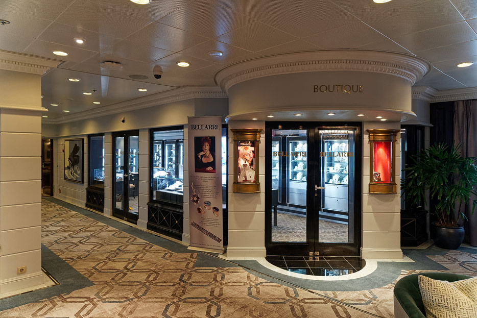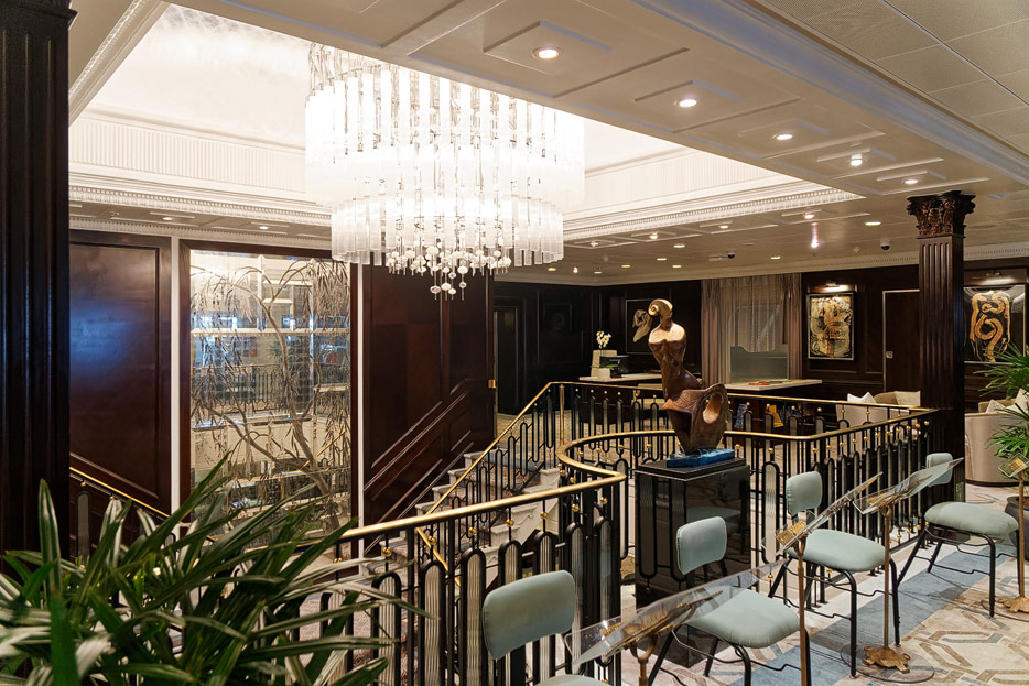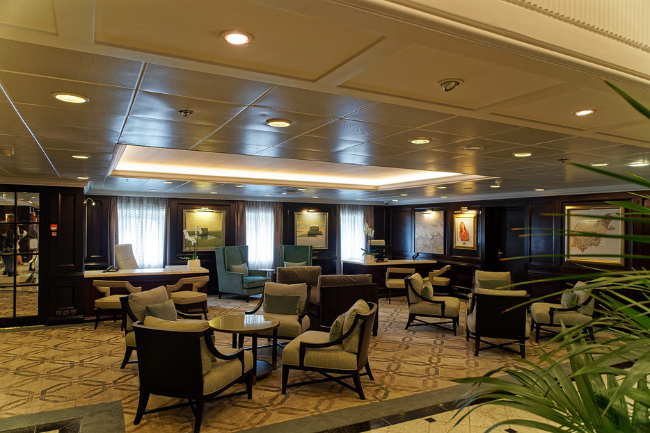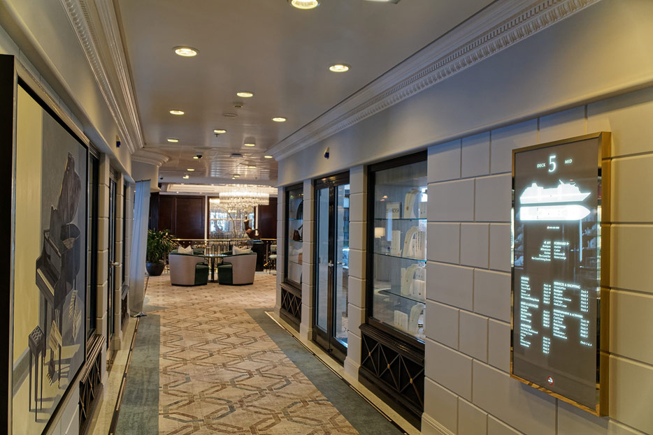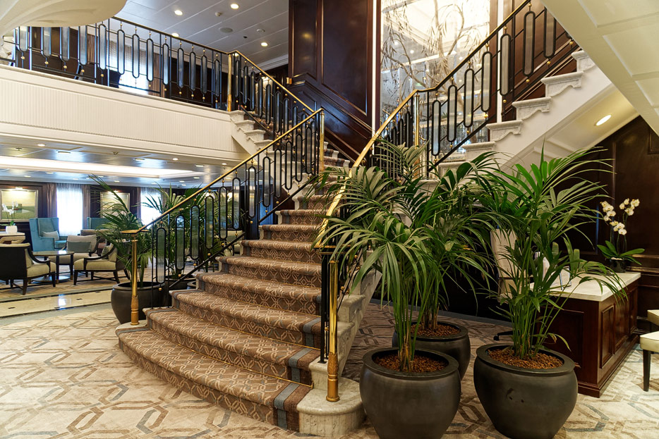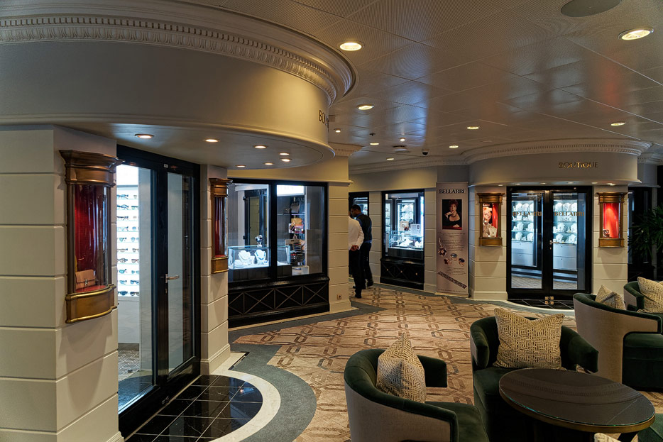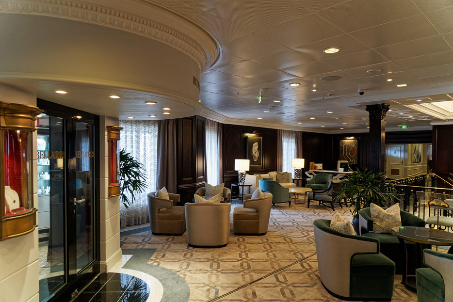 Atrium, Rezeption und Shops der Sirena von Oceania Cruises