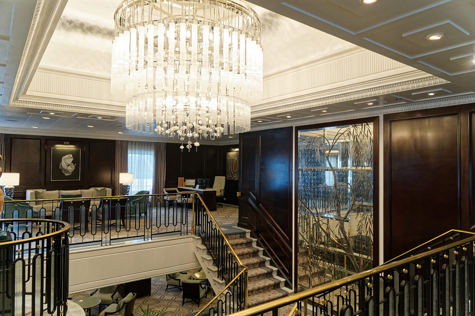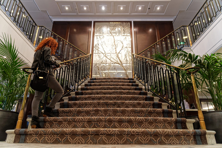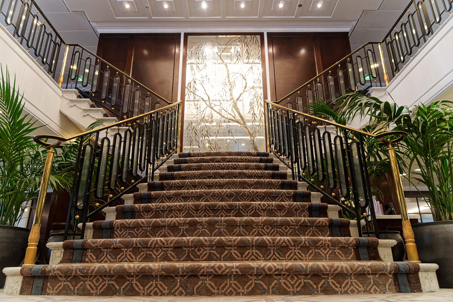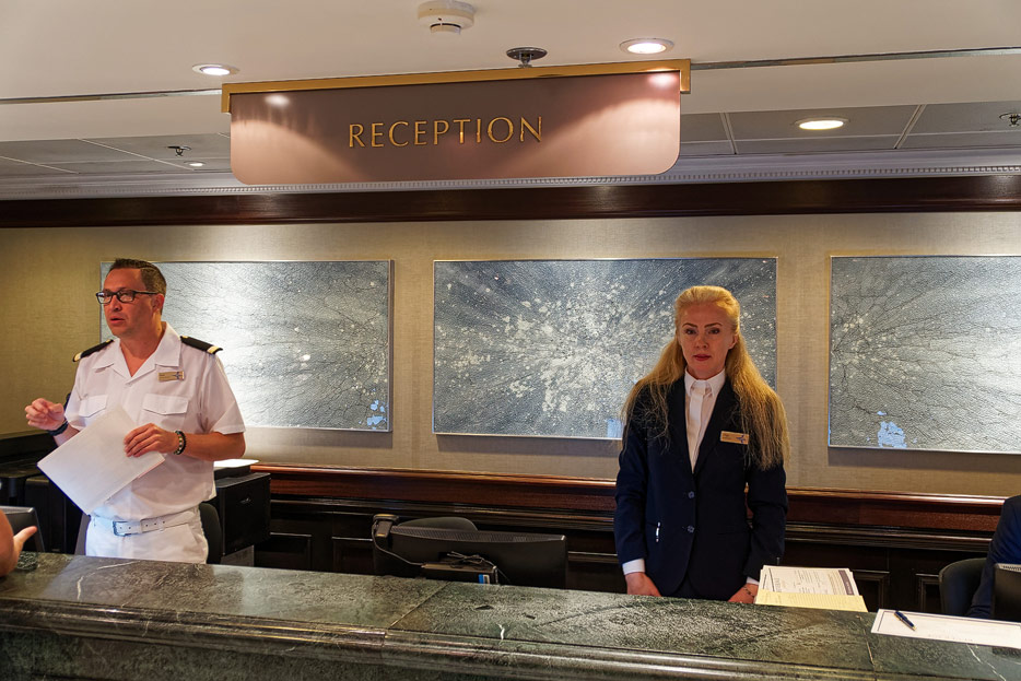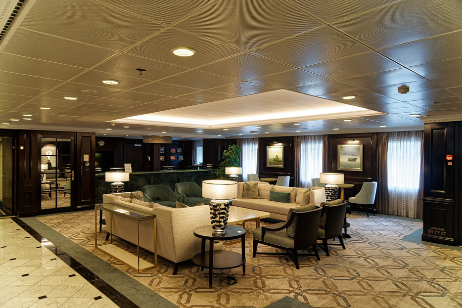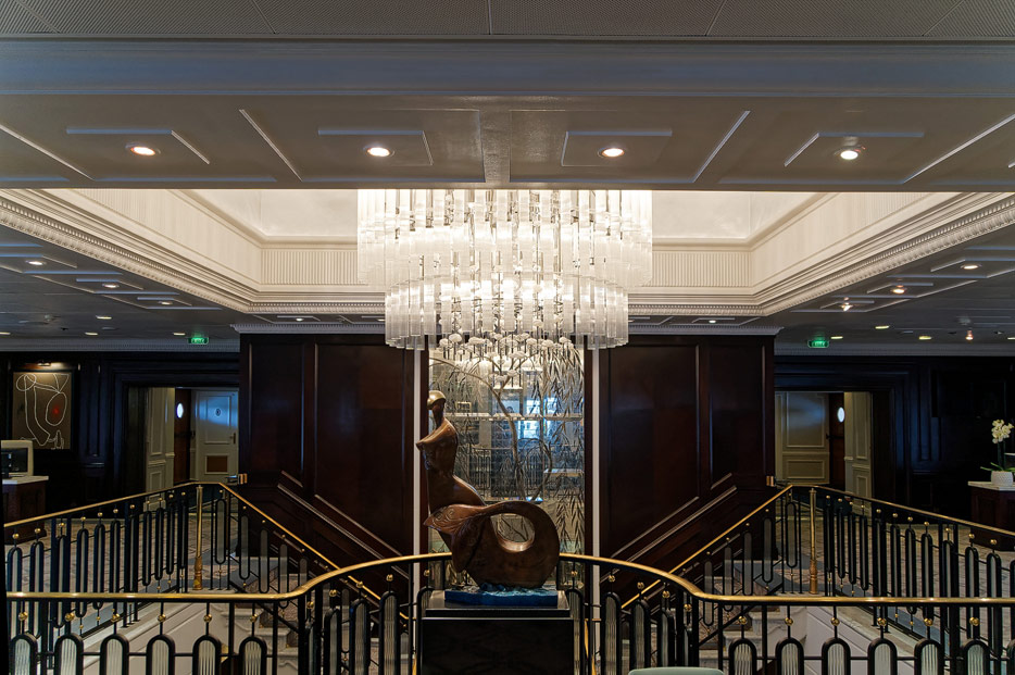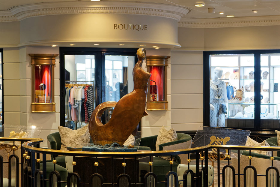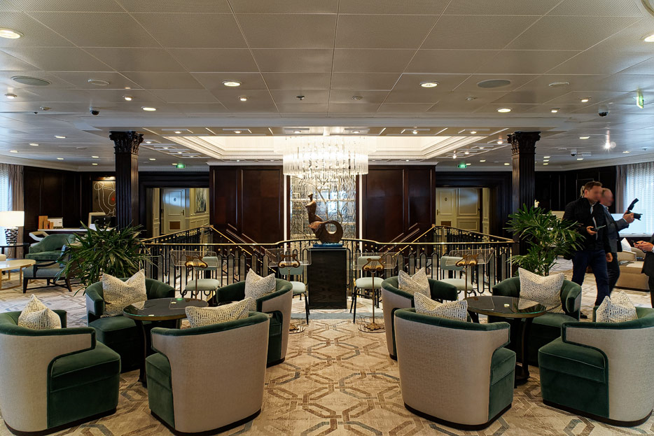 Atrium, Rezeption und Shops der Sirena von Oceania Cruises