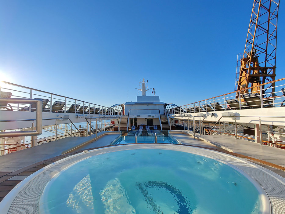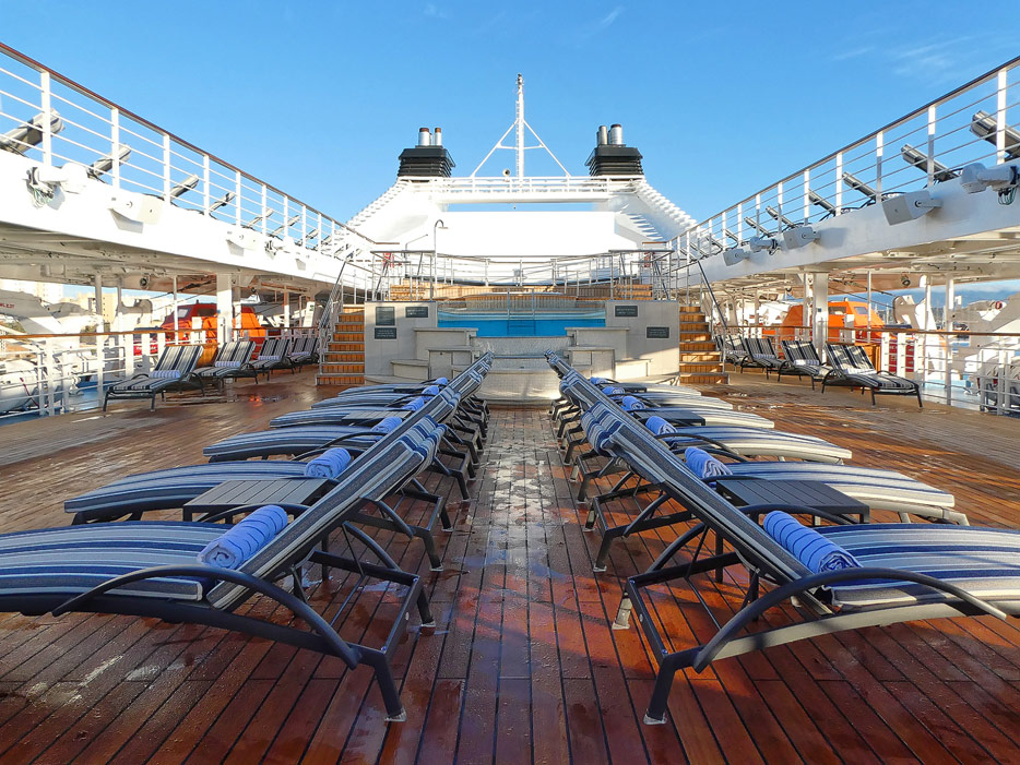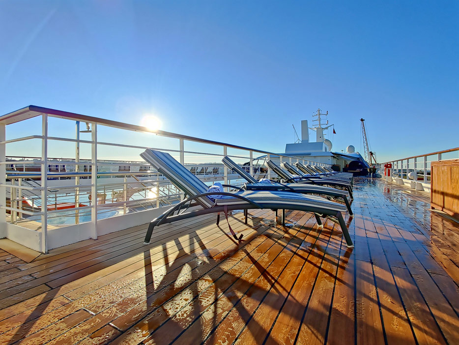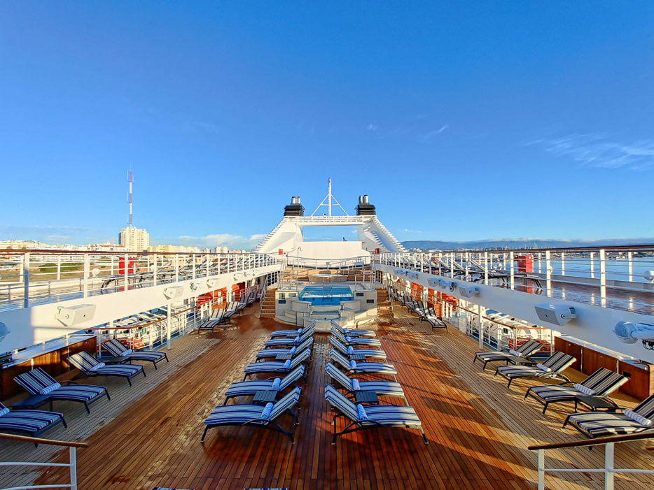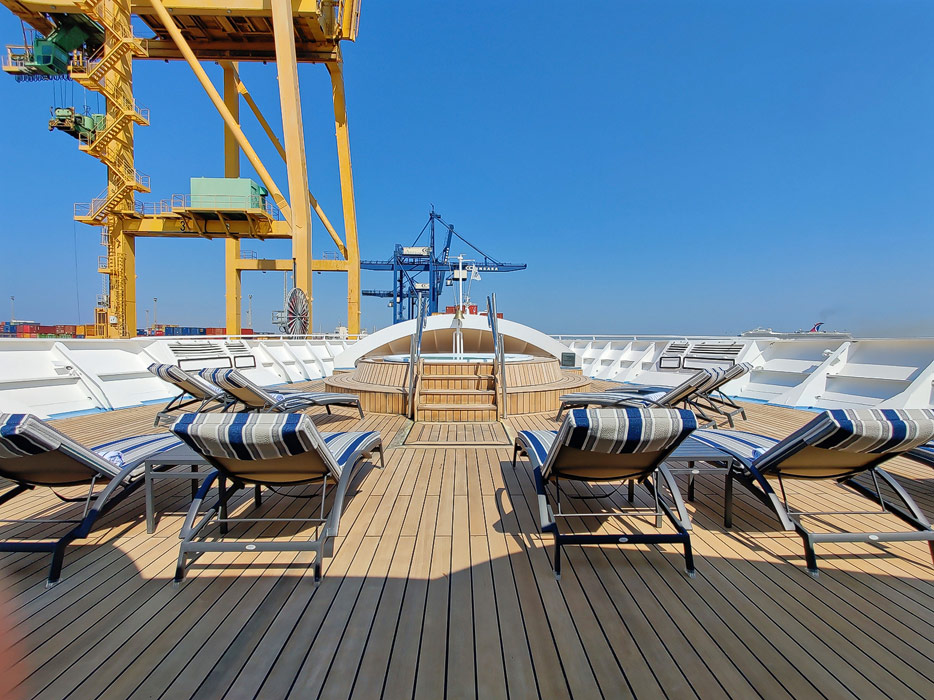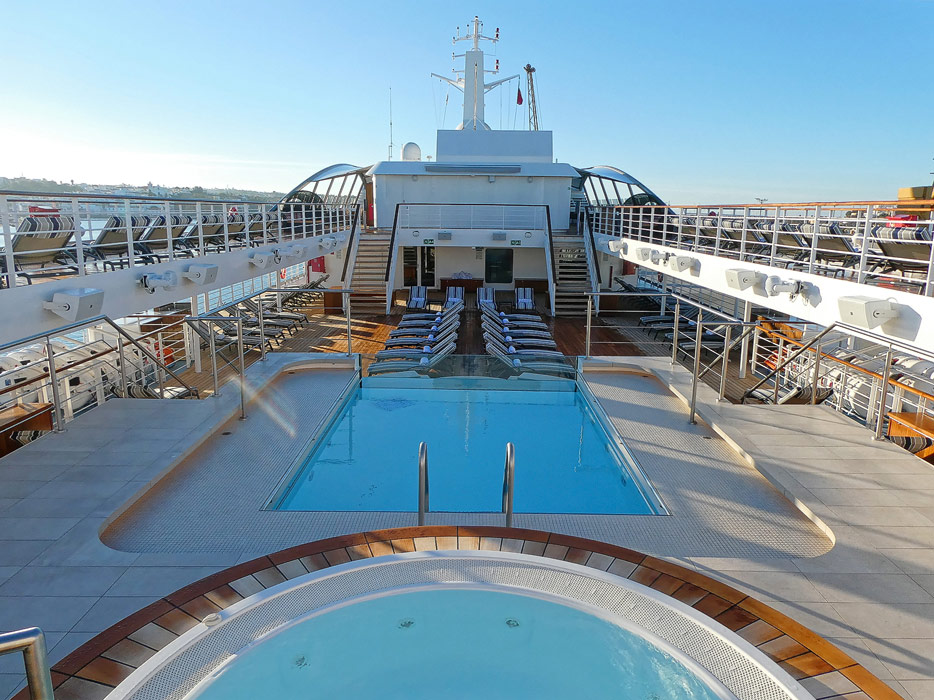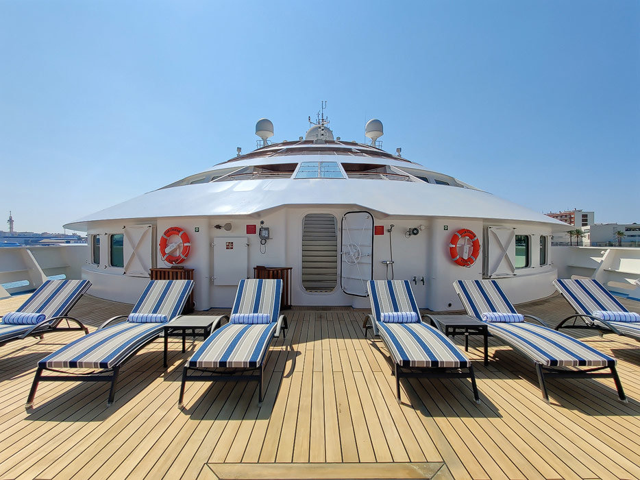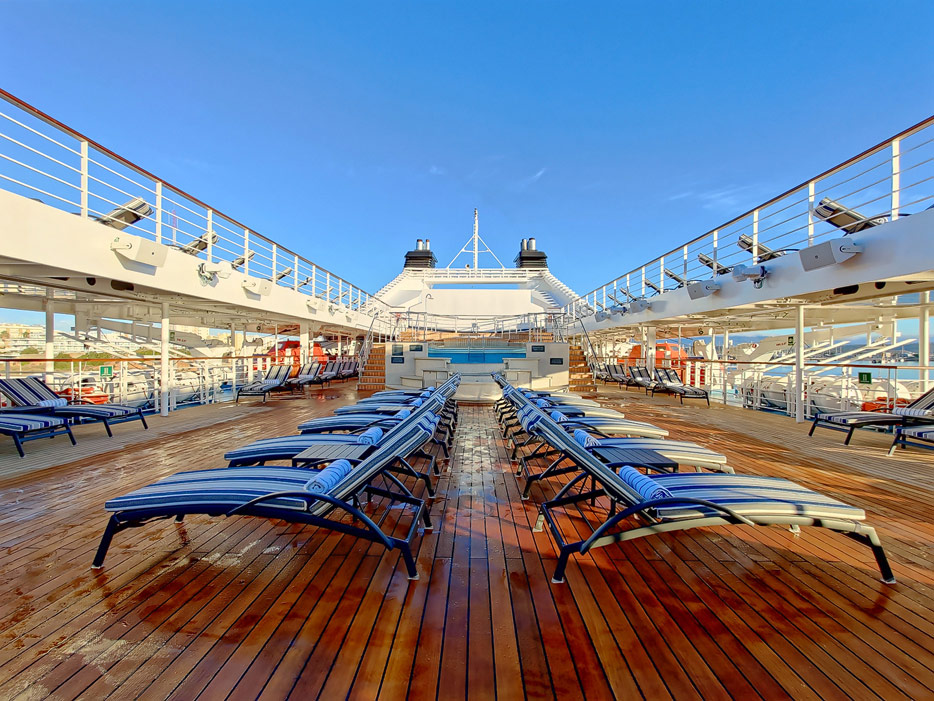 Bilder vom Pooldeck, Sonnendeck und Vordeck mit Whirlpool auf der Star Legend von Windstar Cruises