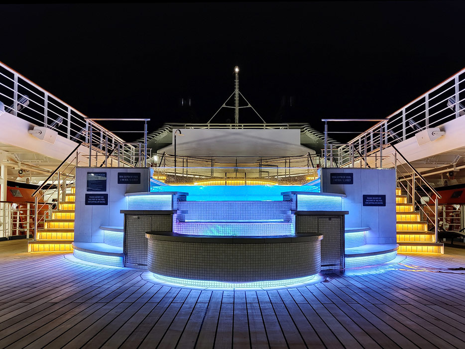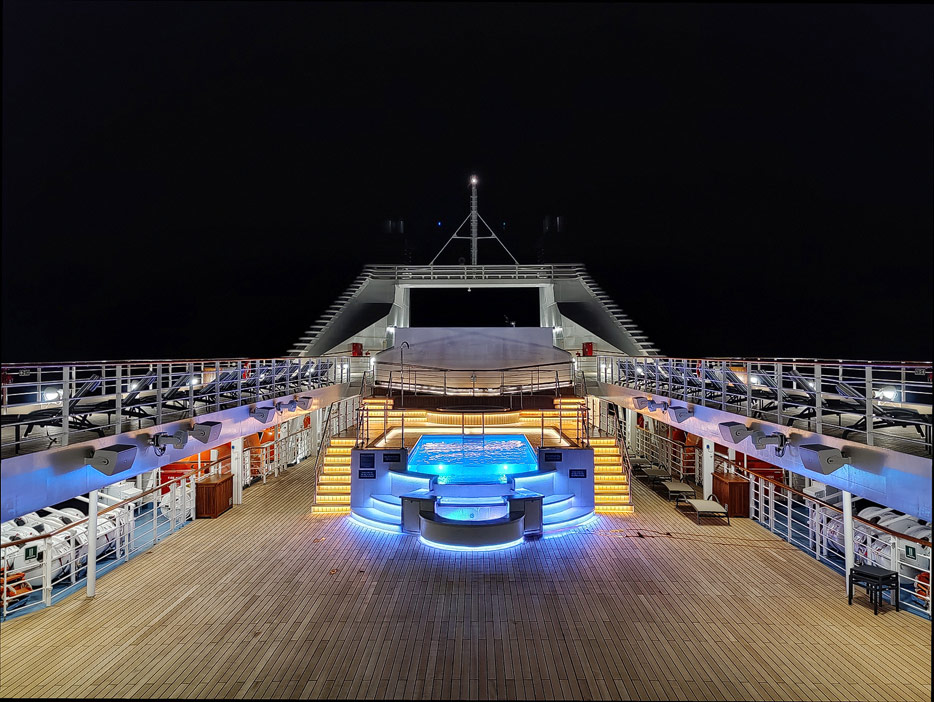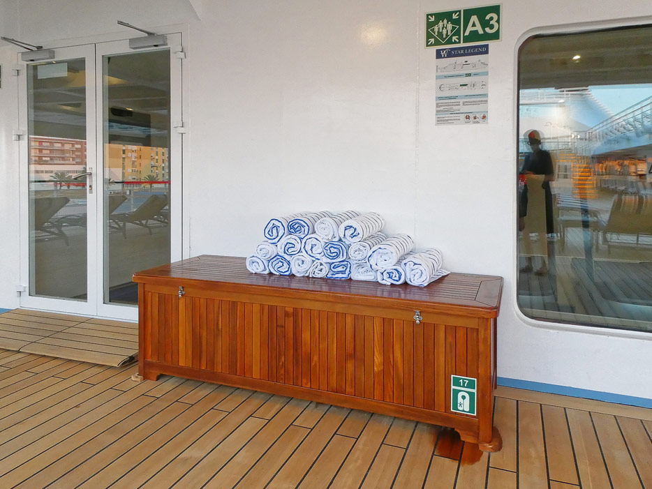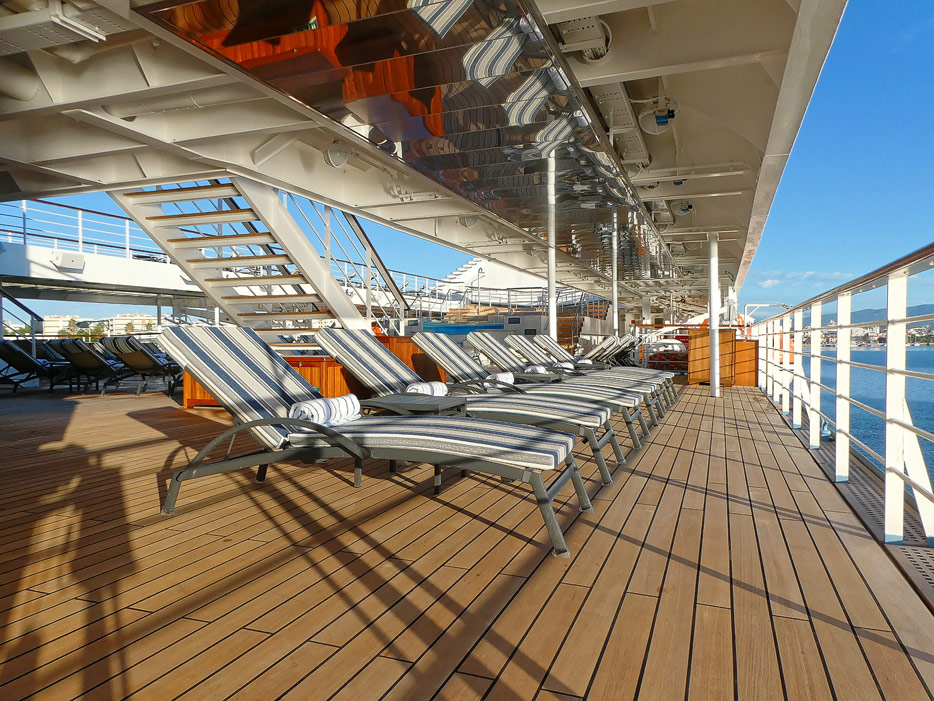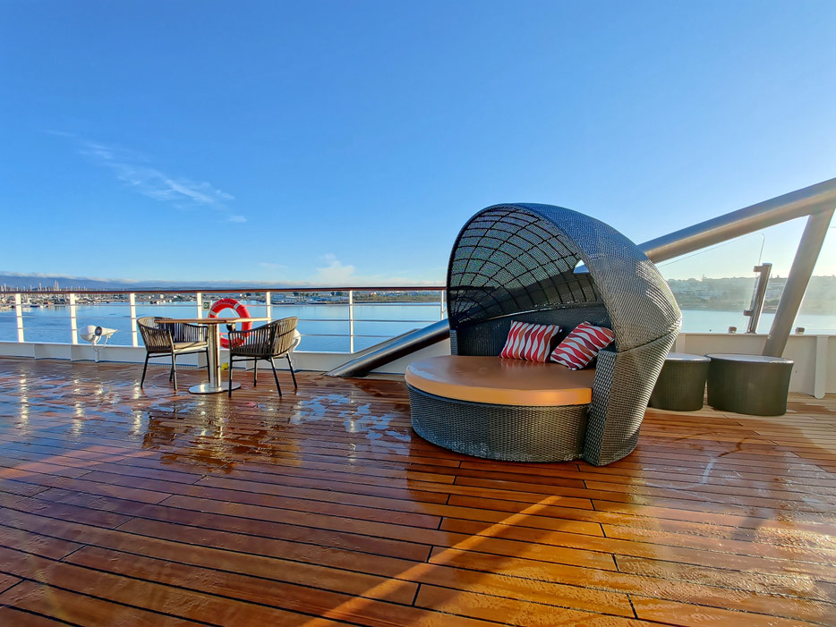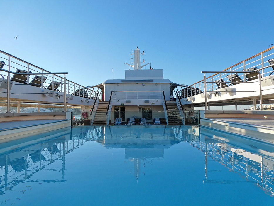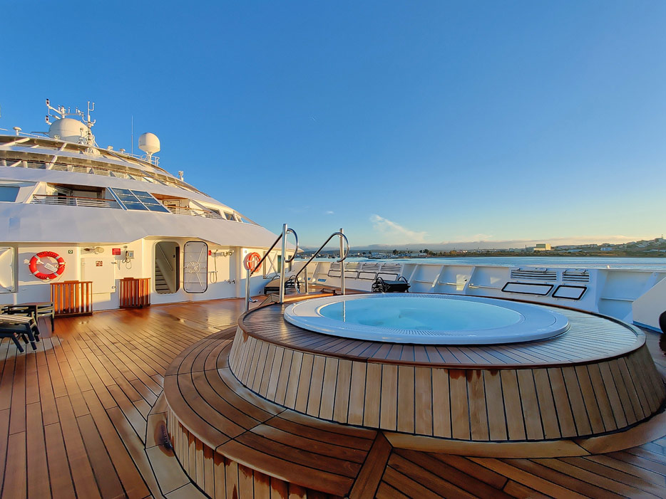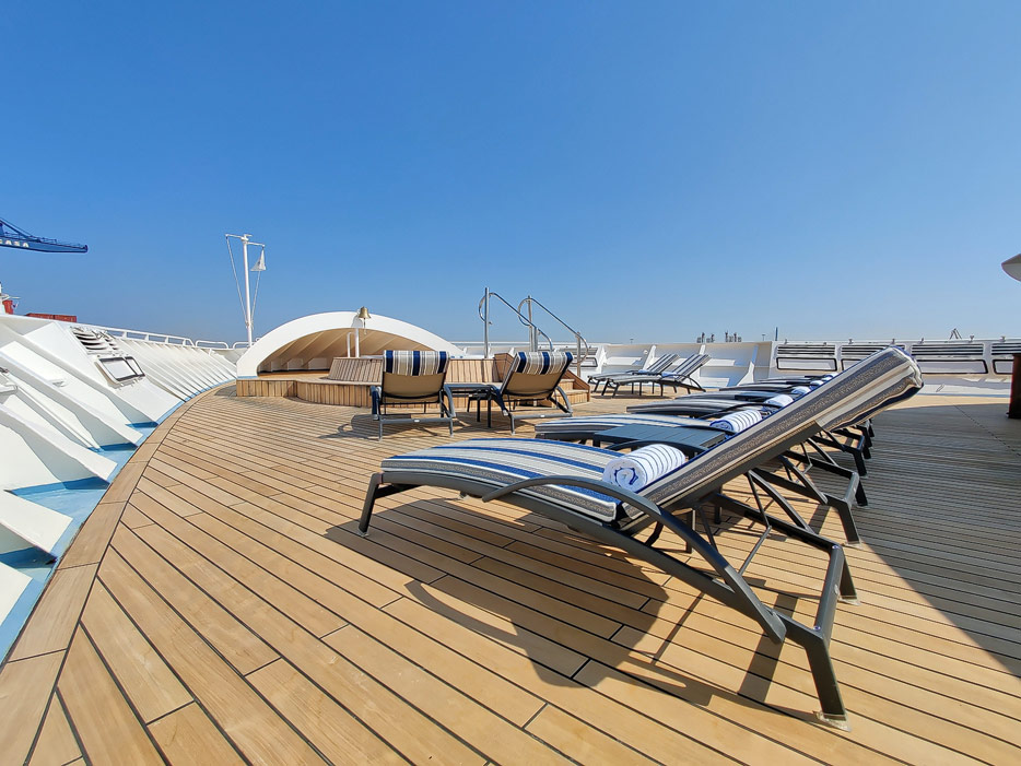 Bilder vom Pooldeck, Sonnendeck und Vordeck mit Whirlpool auf der Star Legend von Windstar Cruises