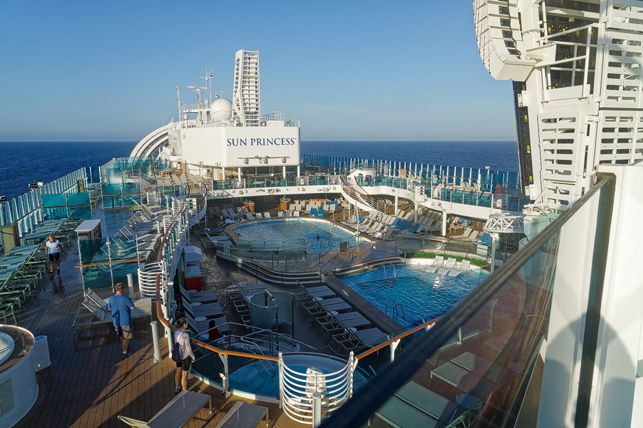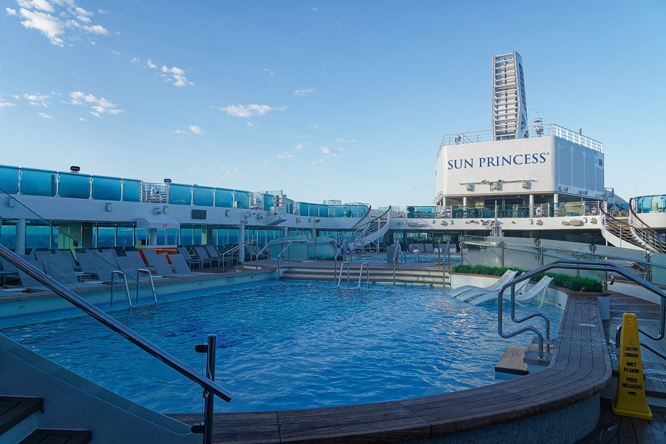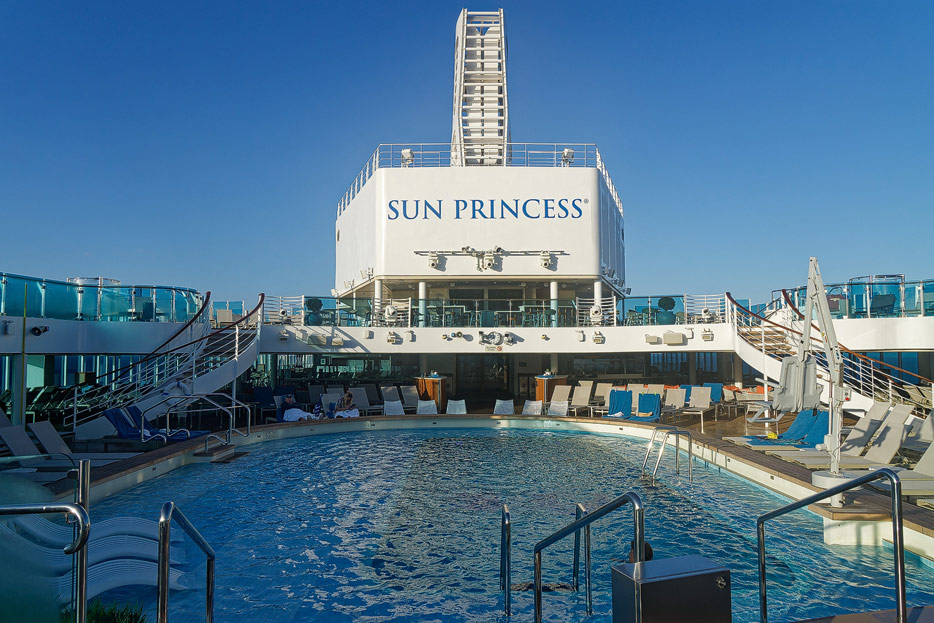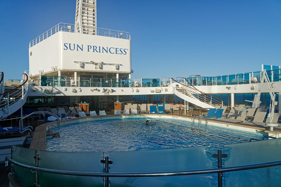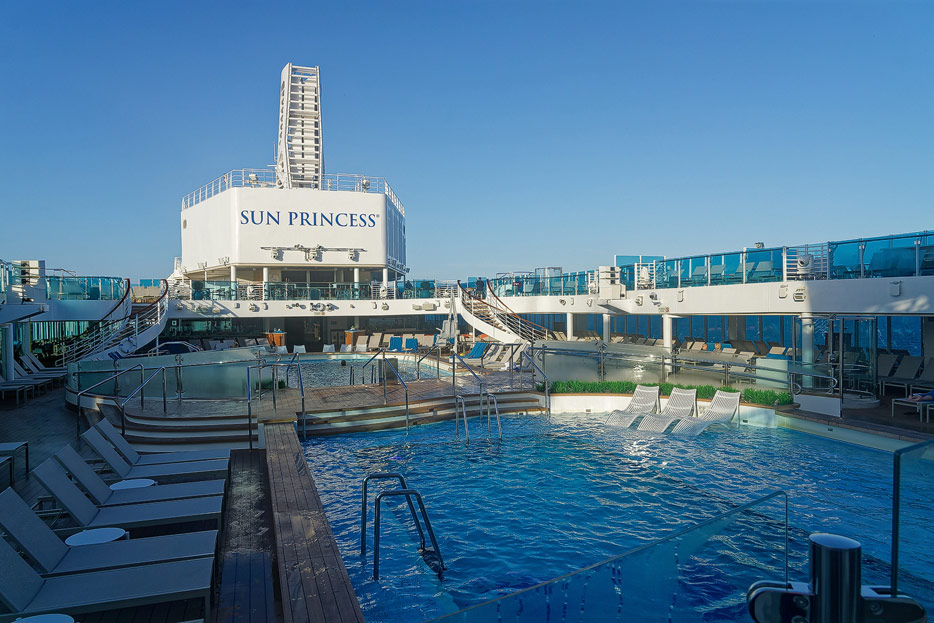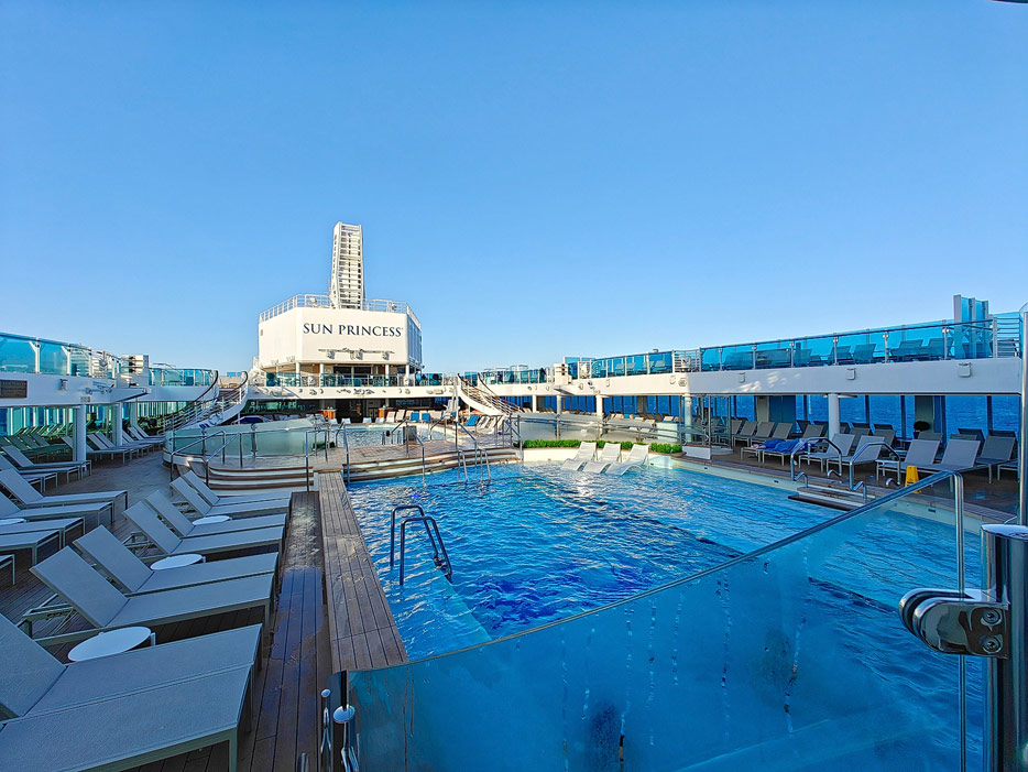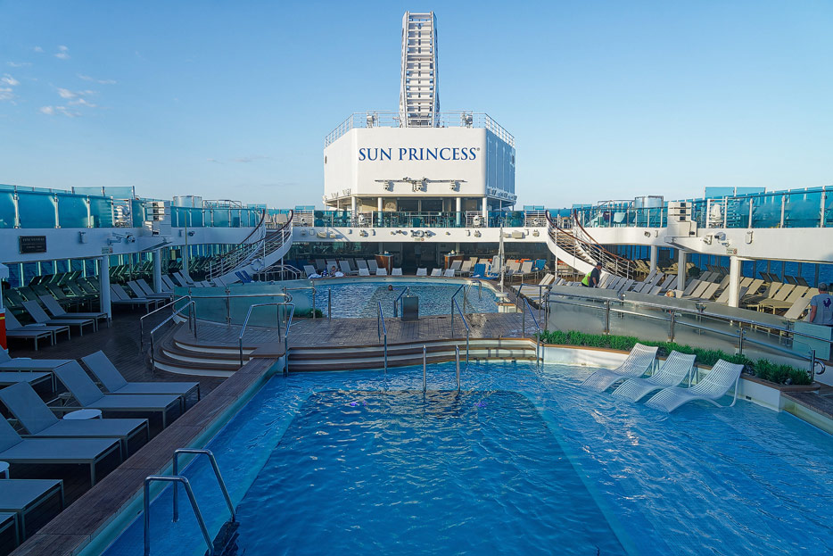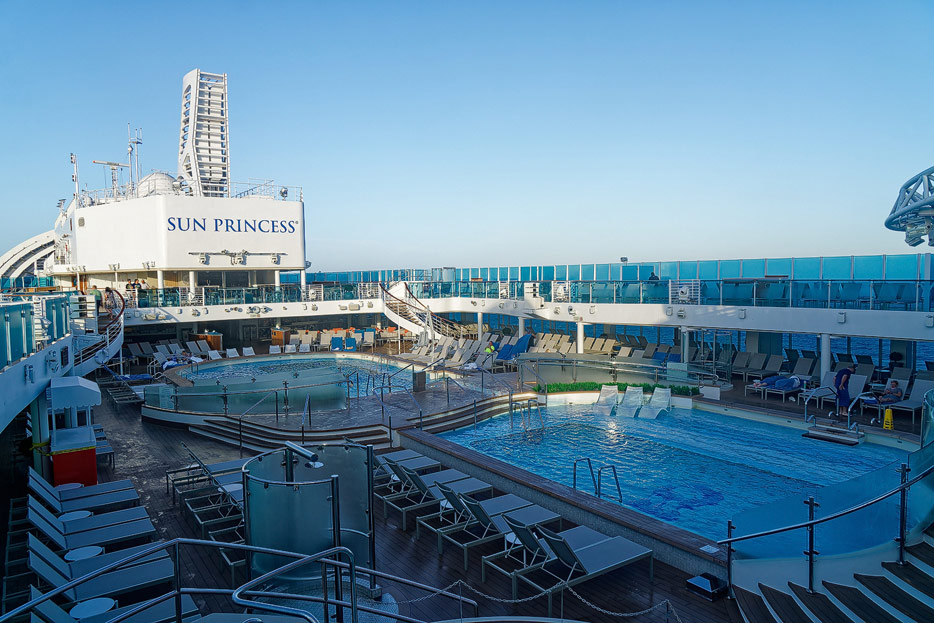 Bilder der Pools, Sonnendecks und Außenbereiche der Sun Princess inklusive The Sanctuary und Cabana Deck