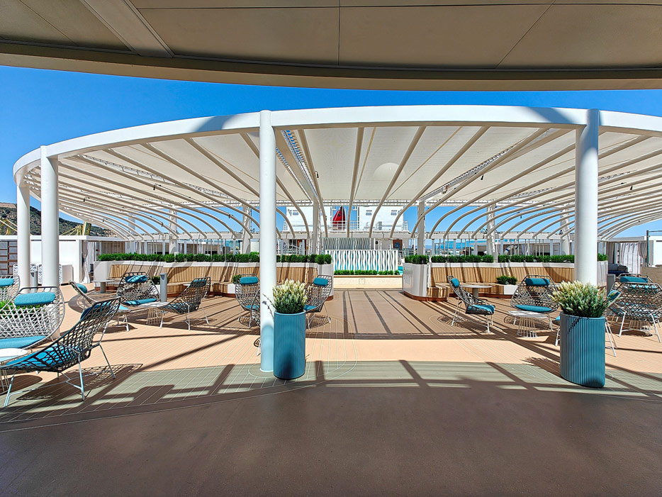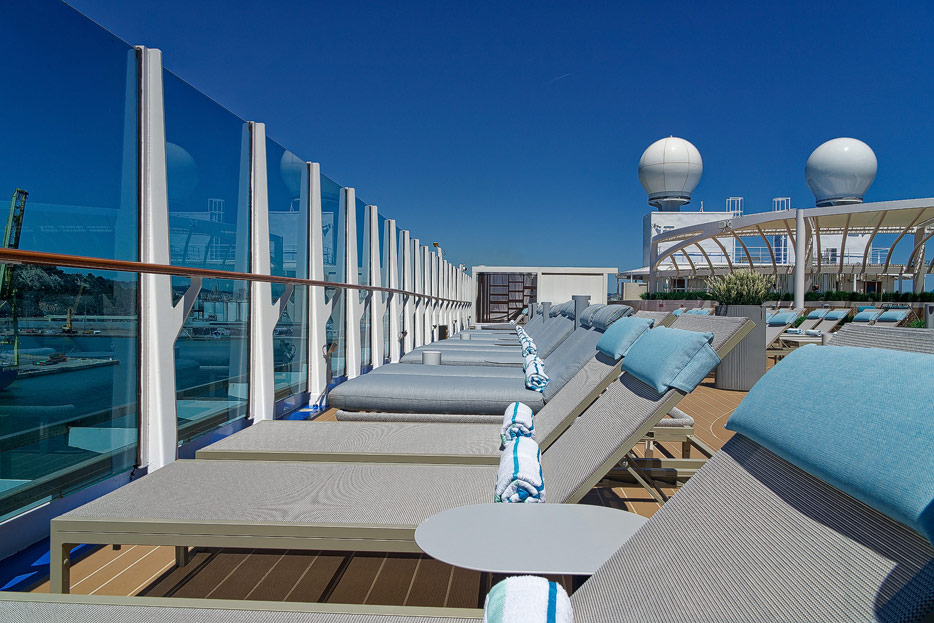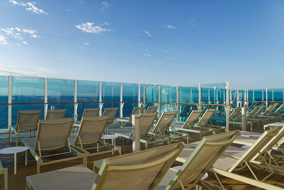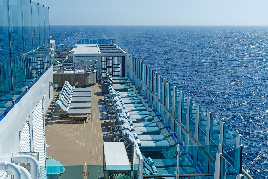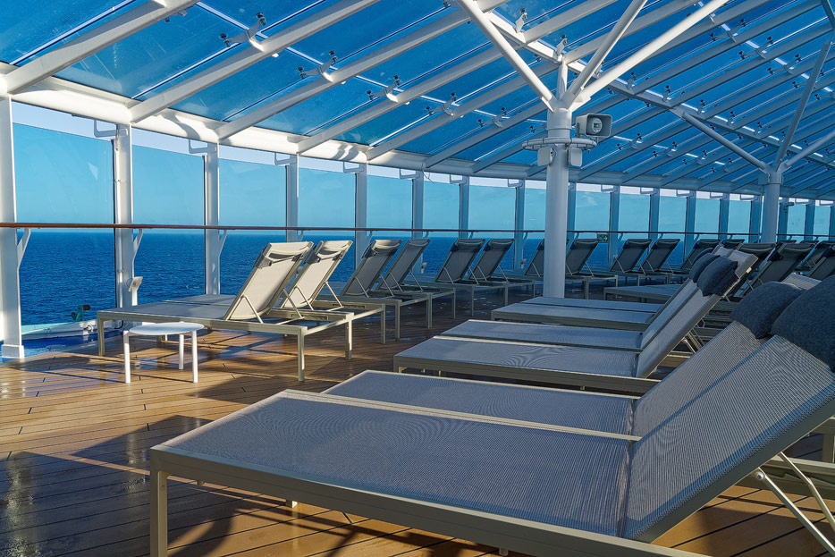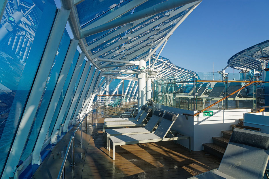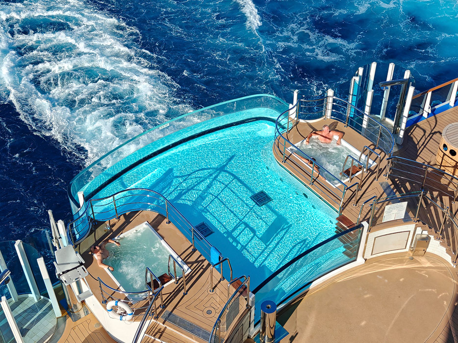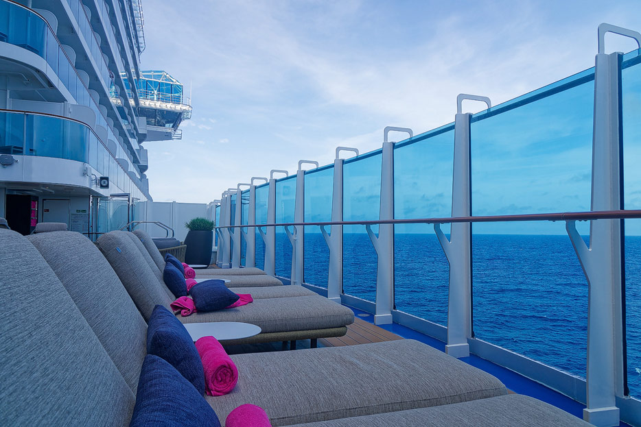 Bilder der Pools, Sonnendecks und Außenbereiche der Sun Princess inklusive The Sanctuary und Cabana Deck