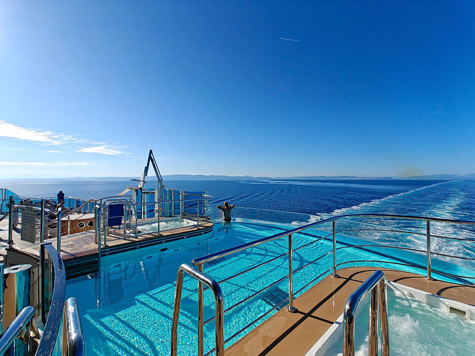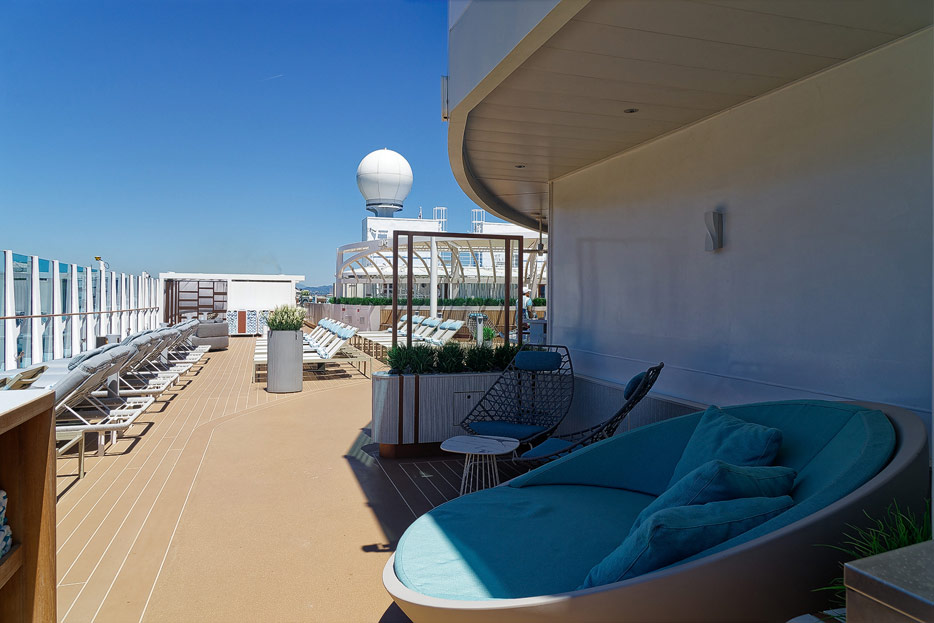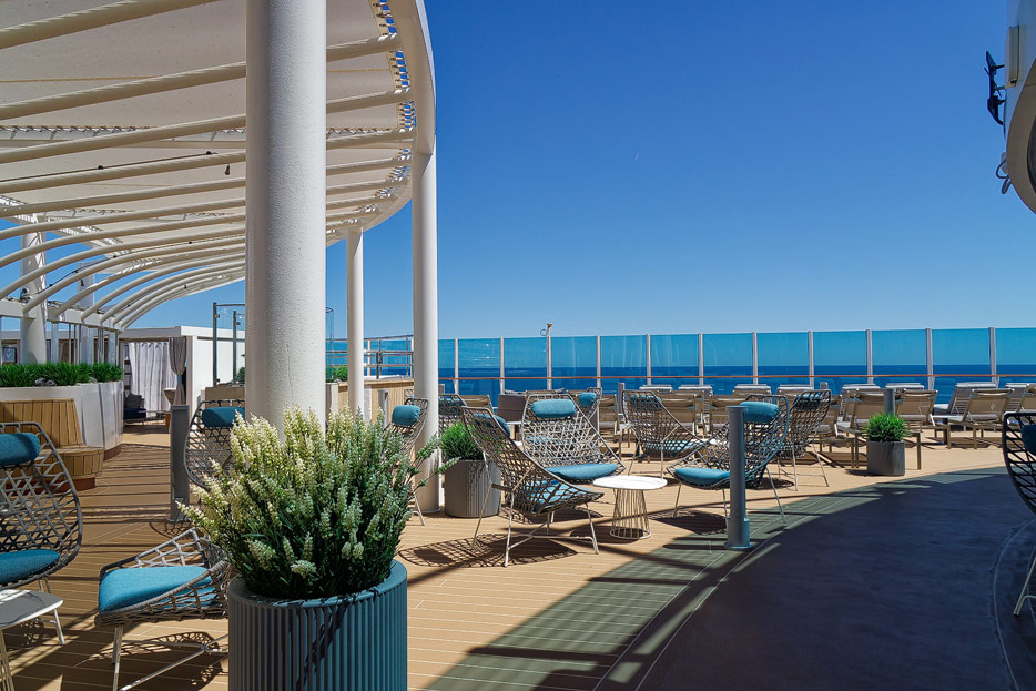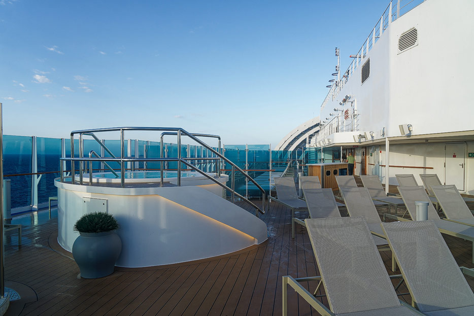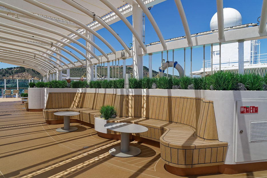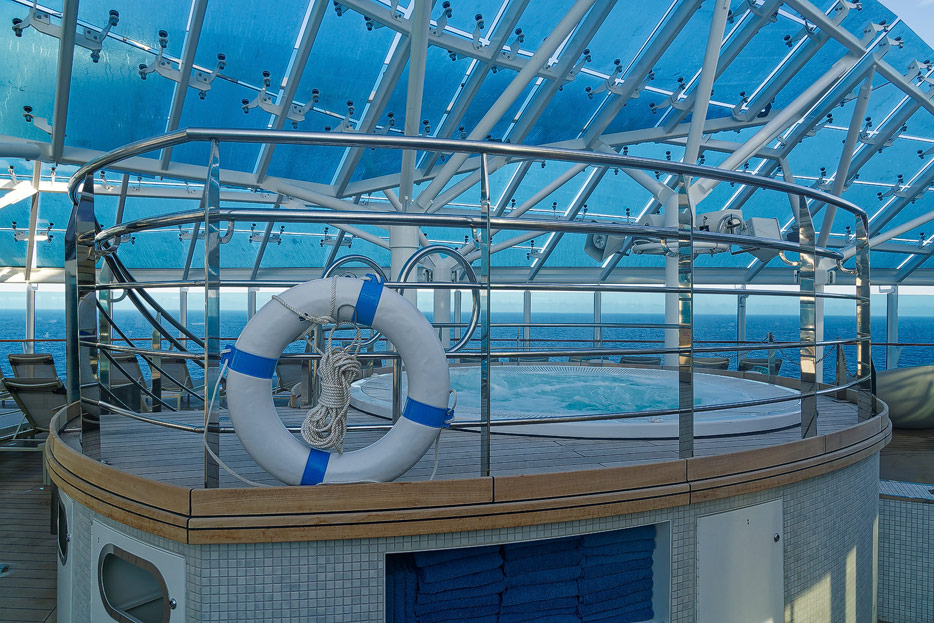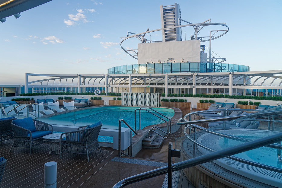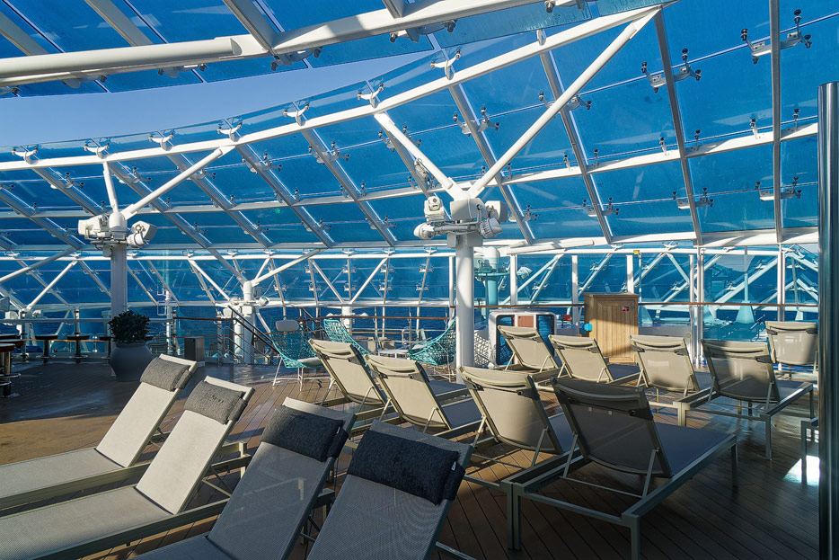 Bilder der Pools, Sonnendecks und Außenbereiche der Sun Princess inklusive The Sanctuary und Cabana Deck