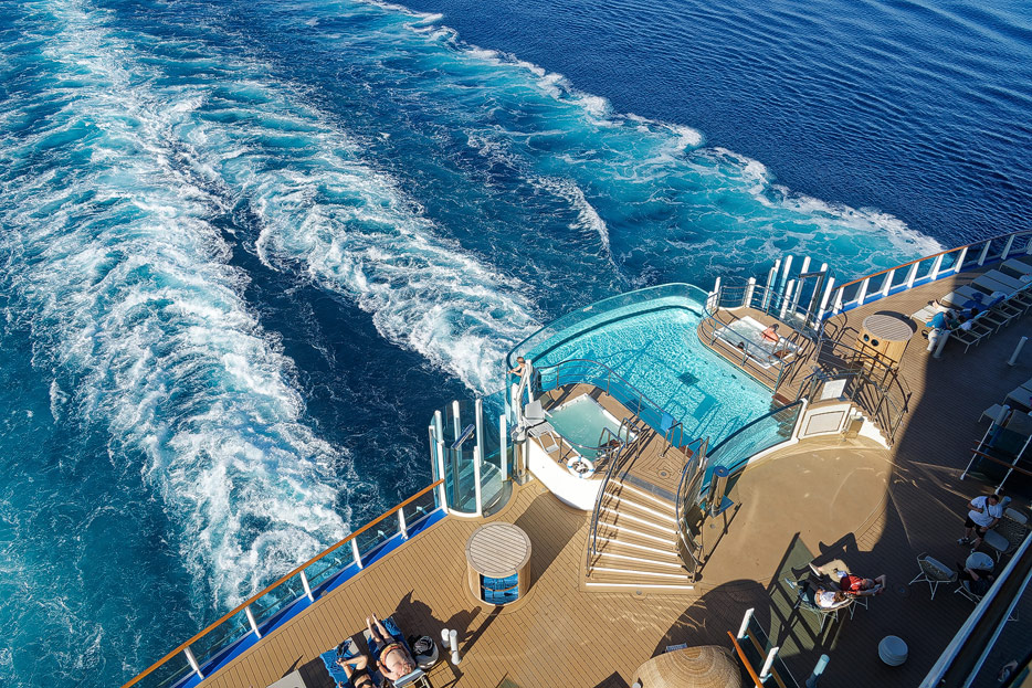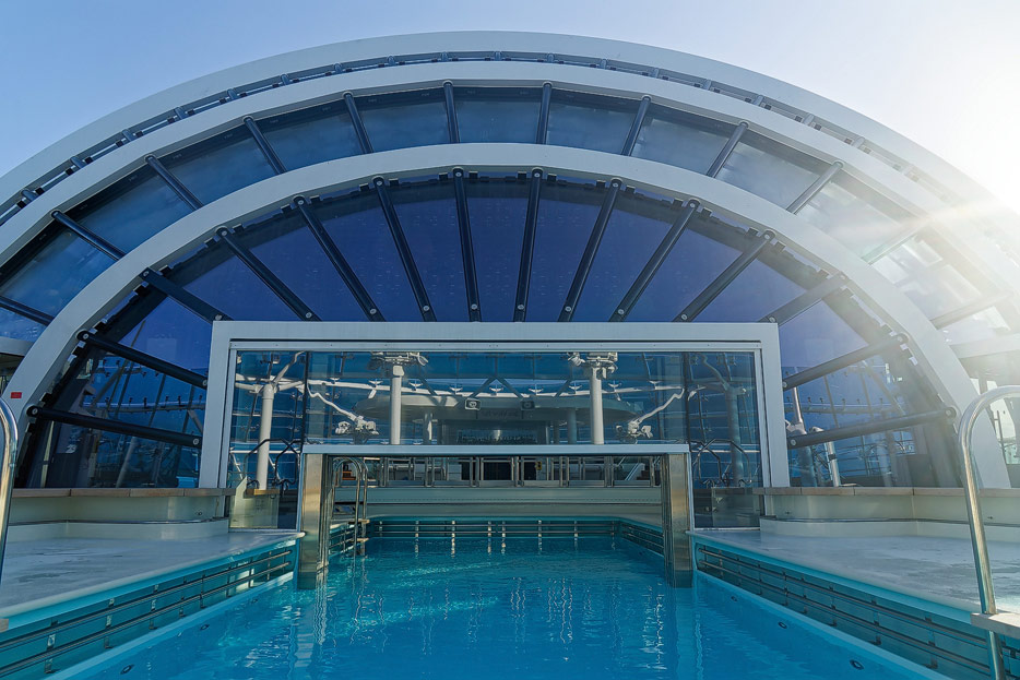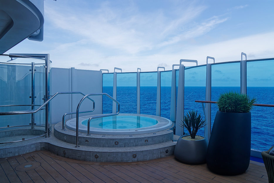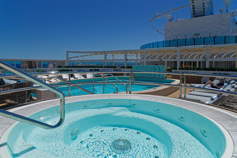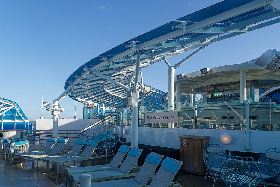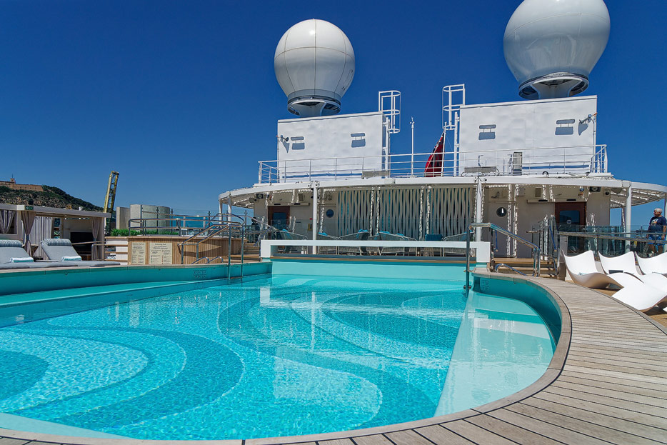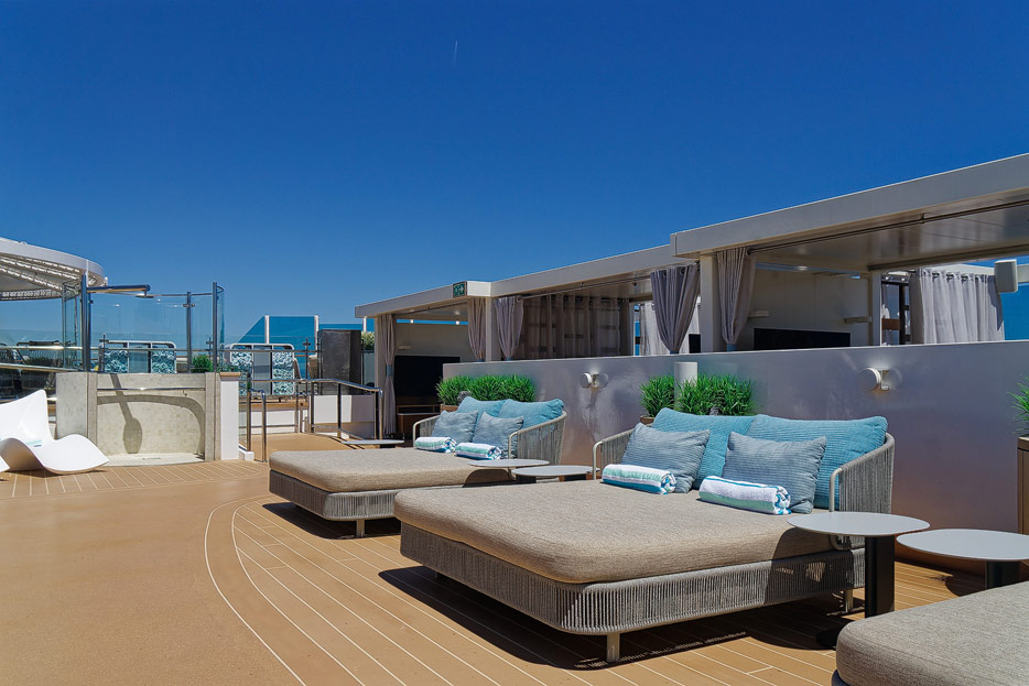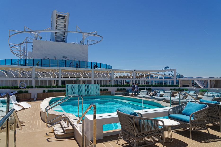 Bilder der Pools, Sonnendecks und Außenbereiche der Sun Princess inklusive The Sanctuary und Cabana Deck