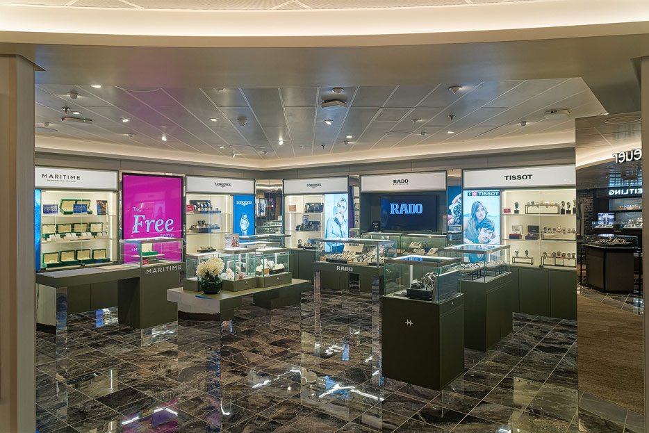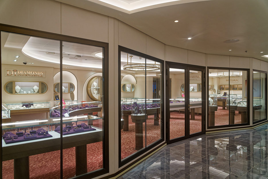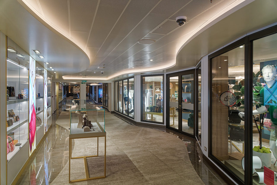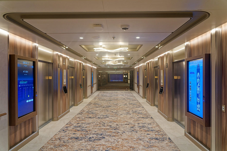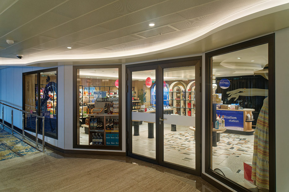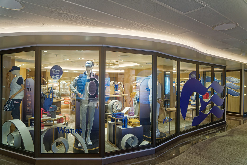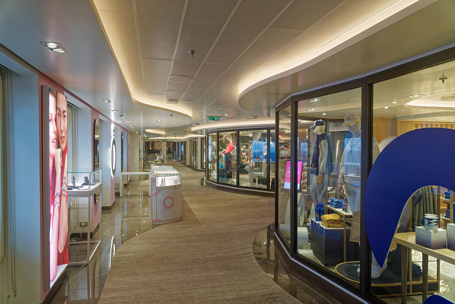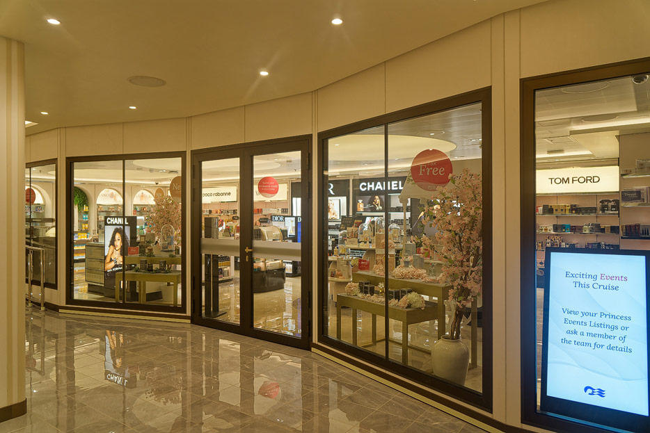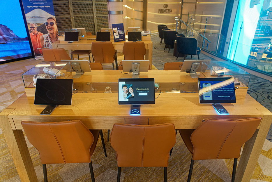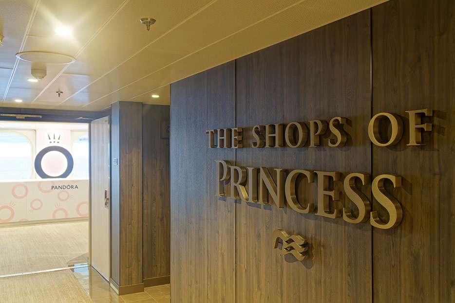 Bilder weiterer Bereiche auf der Sun Princess: Rezeption, Guest Laundry, Aufzüge und Treppenhaus, Shops