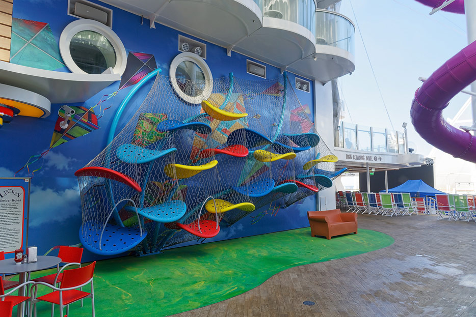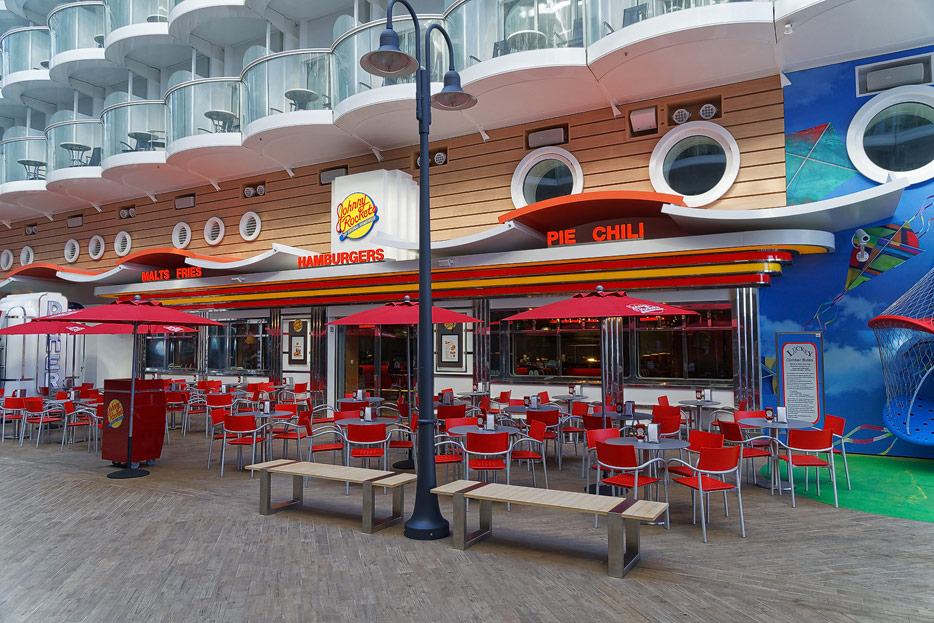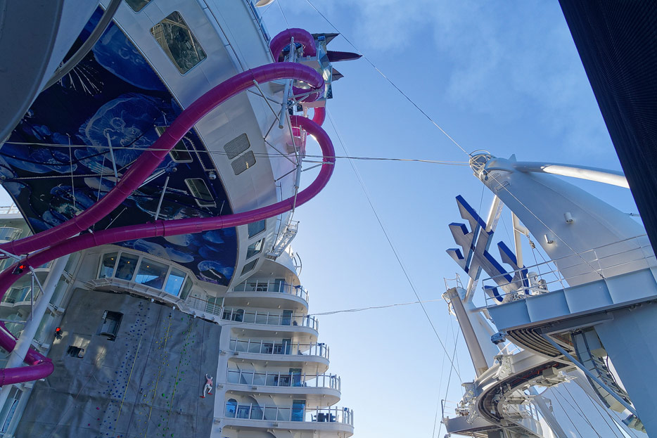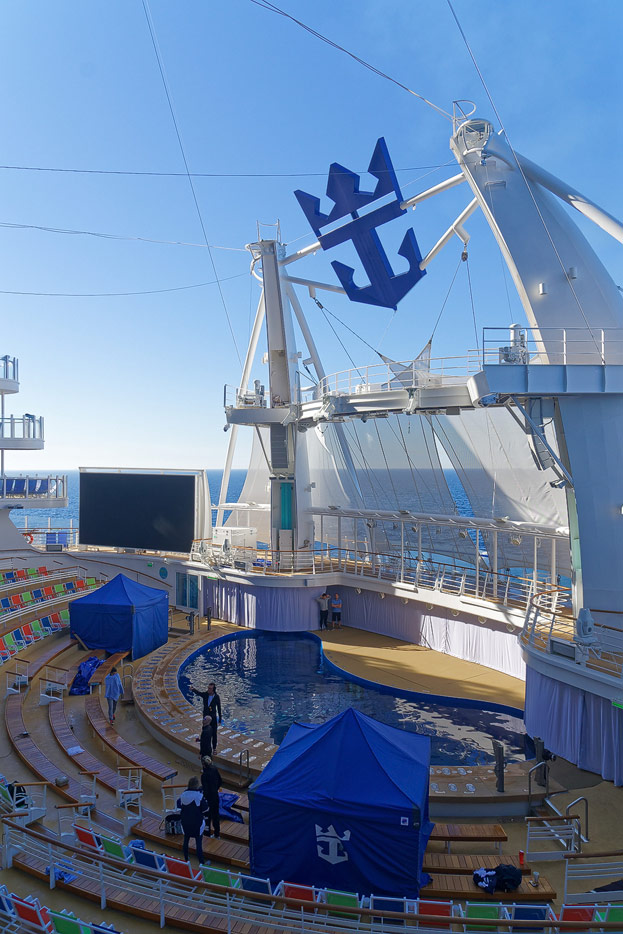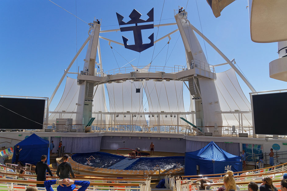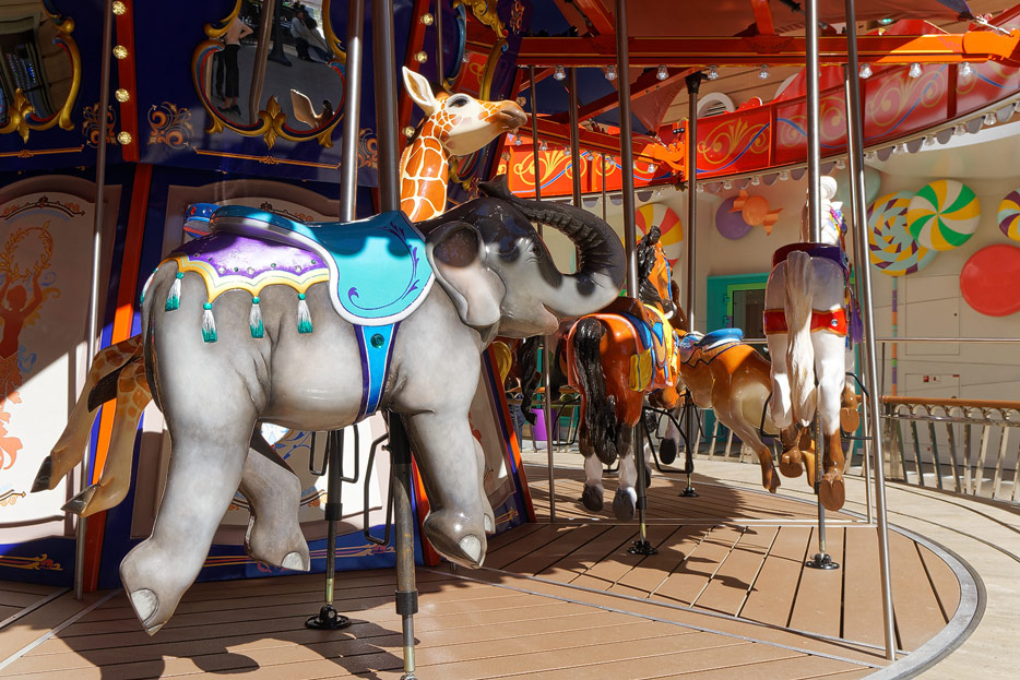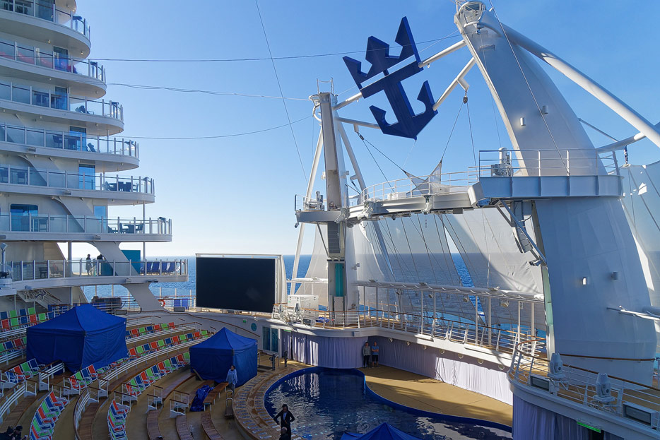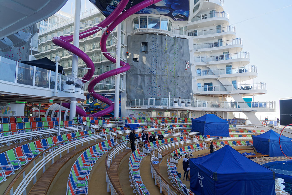 Boardwalk-Bereich der Symphony of the Seas inklusive Aqua Theater, The Ultimate Abyss und Karussell
