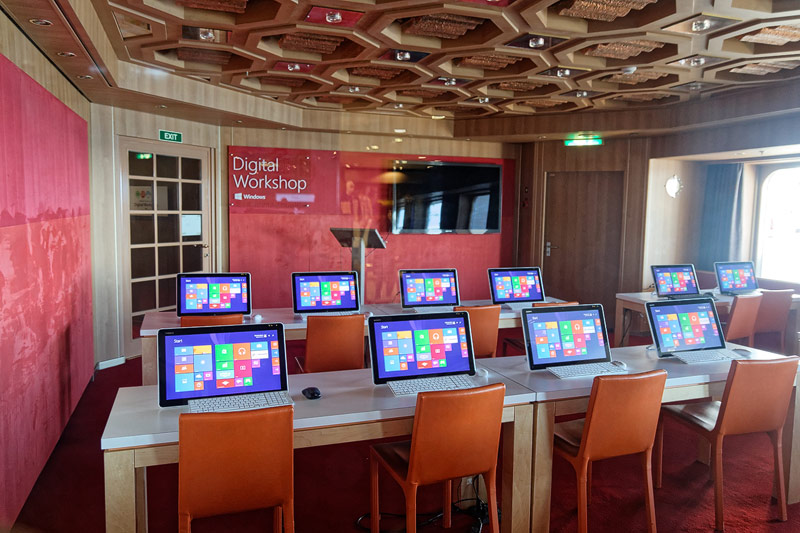 Sonstige Bereiche auf der Westerdam, Holland America Line: Theater, Art Gallery, Photo Gallery, Atrium, Treppen und Aufzüge,