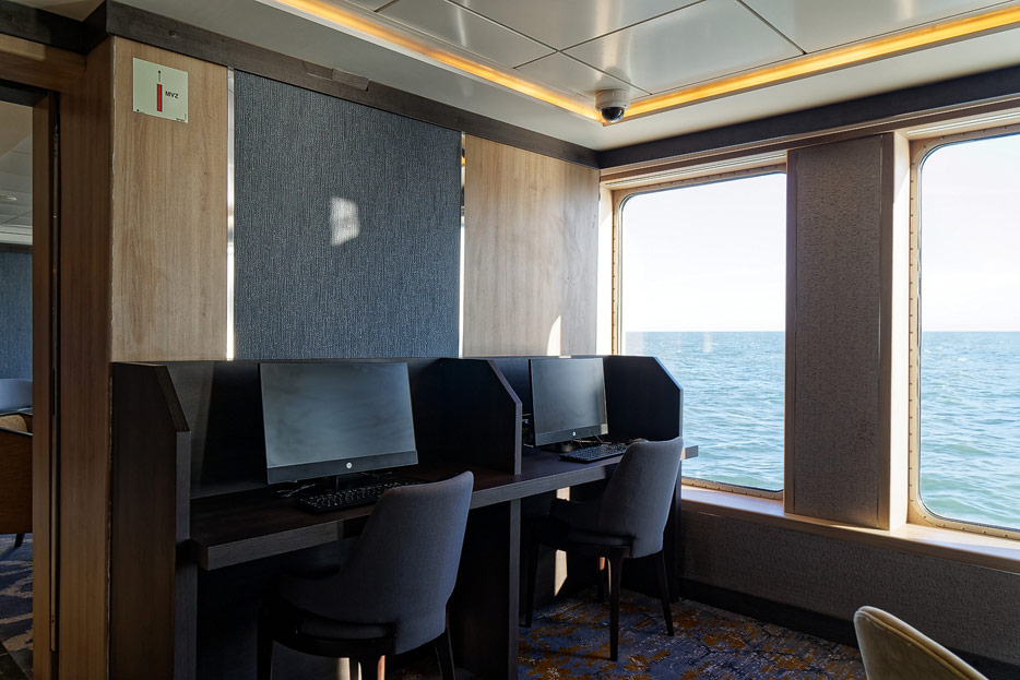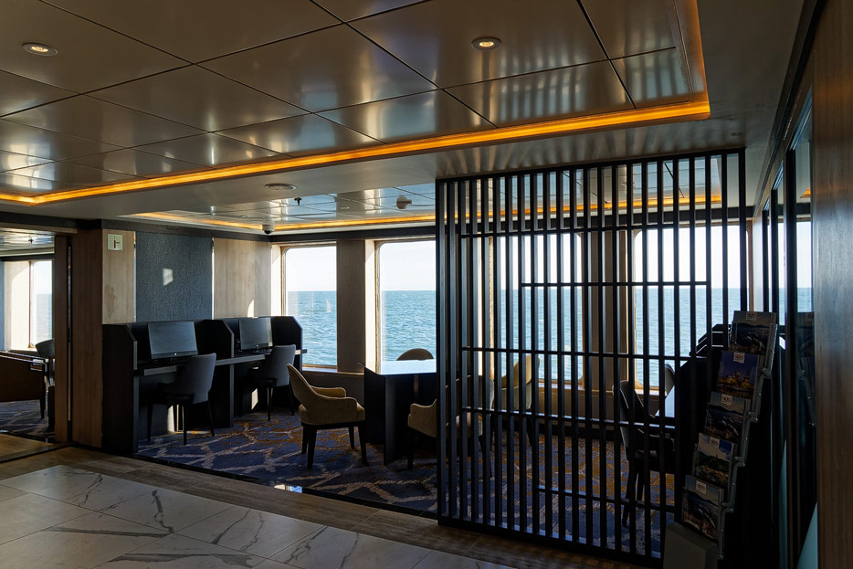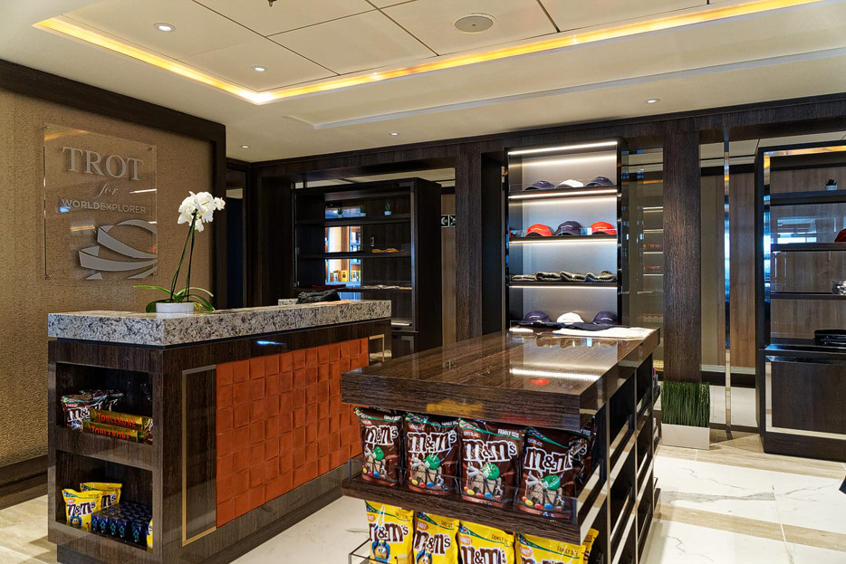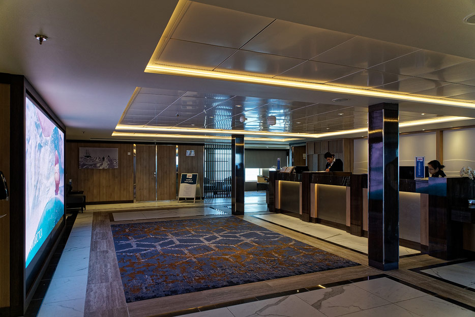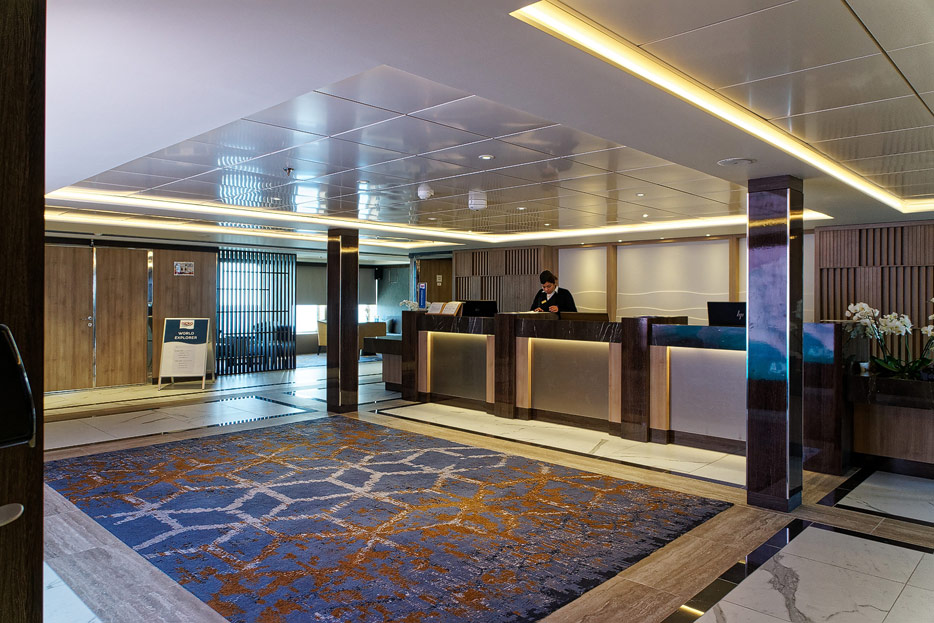 Bilder der Rezeption und andere öffentlicher Bereiche auf Deck 4 der World Explorer von Nicko Cruises / Mystic Cruises