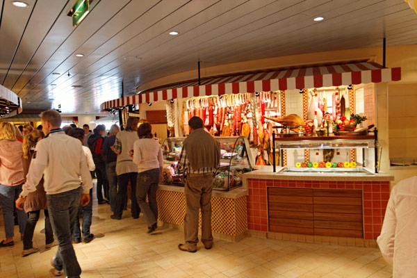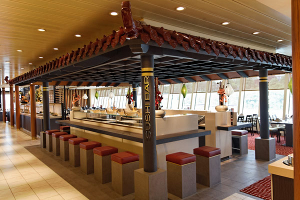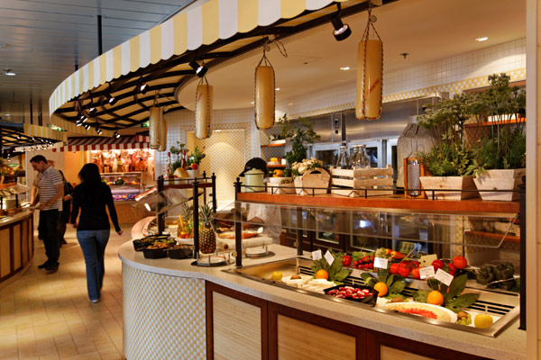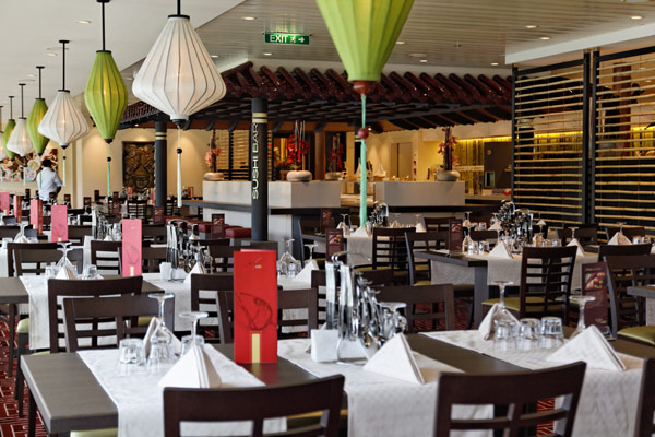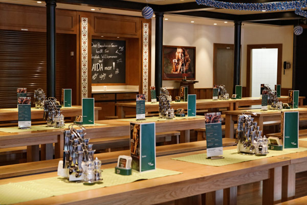Restaurants der AIDAmar: California Grill, Markt Restaurant, Bella Donna Restaurant, East Restaurant, Sushi Bar, Buffalo Steak House, Brauhaus, Rossini