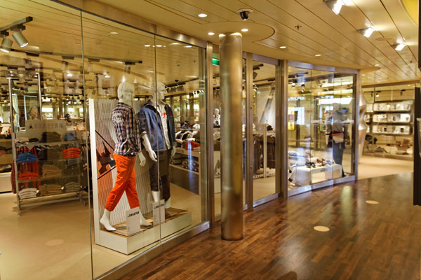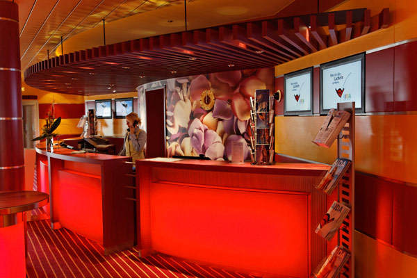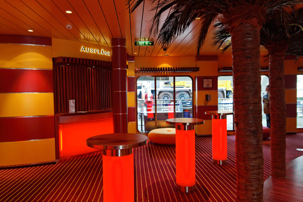 Sonstige Bereiche der AIDAmar: Blütenmeer, Casino, Rezeption, Shops, Galerie, Waschsalon, Wasserfall