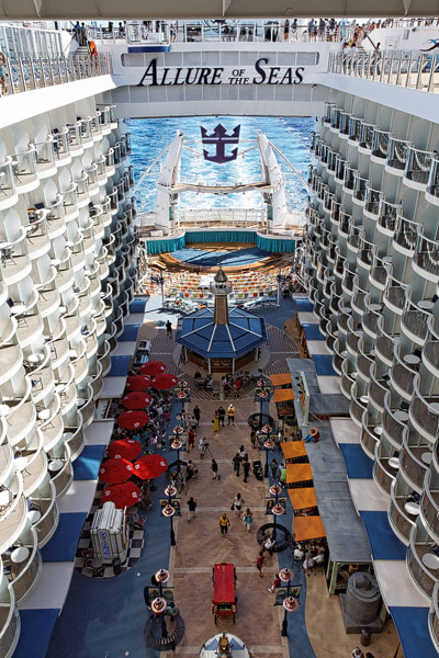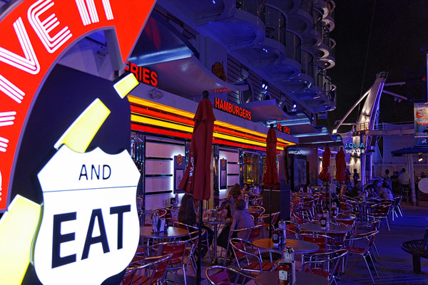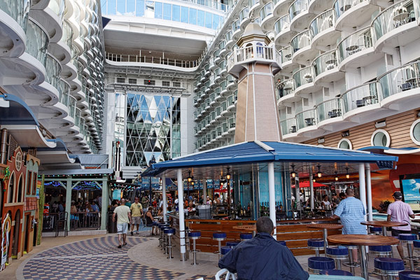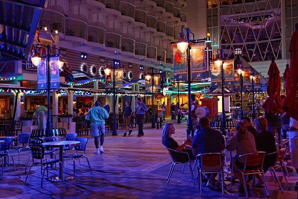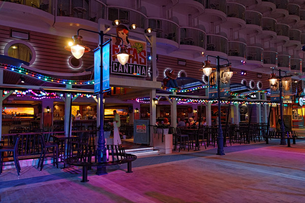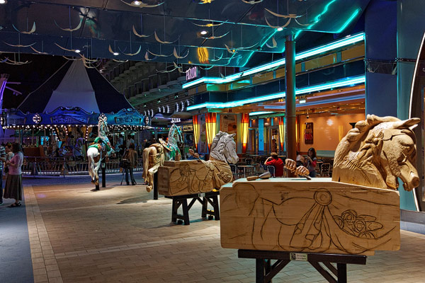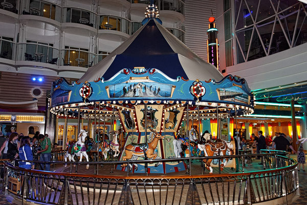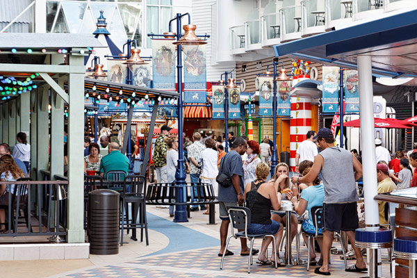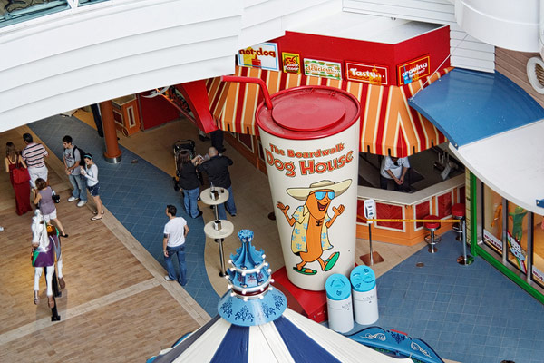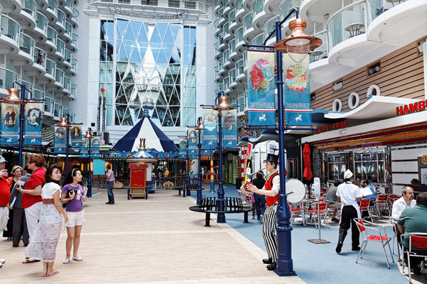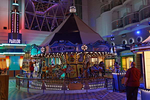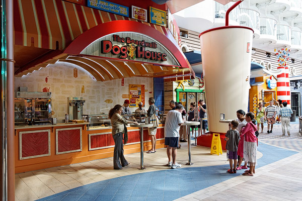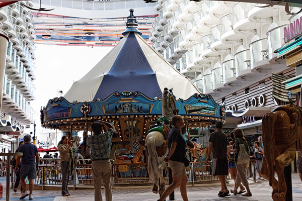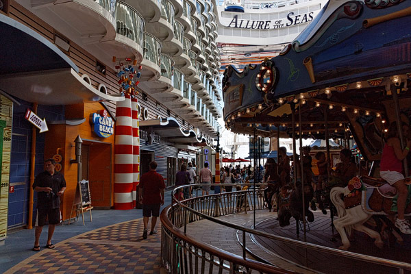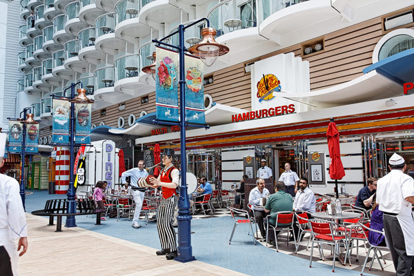 Boardwalk der Allure of the Seas: Johnny Rocket's, Dog House, Rita's Cantina, Ice Cream Parlor, Boardwalk Bar, Karussell, Kletterwand