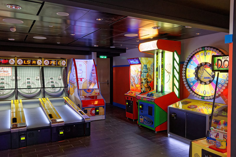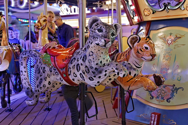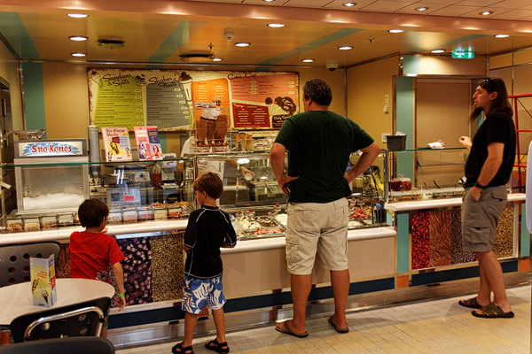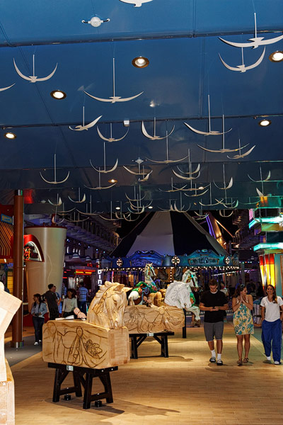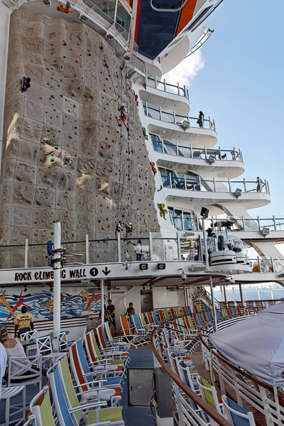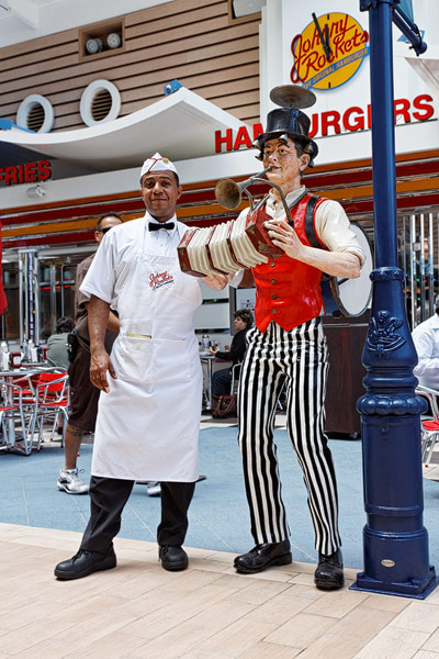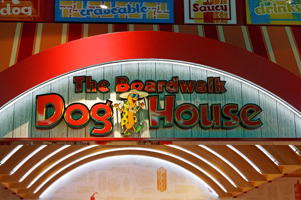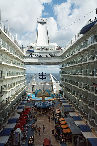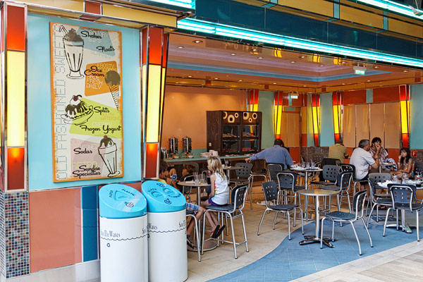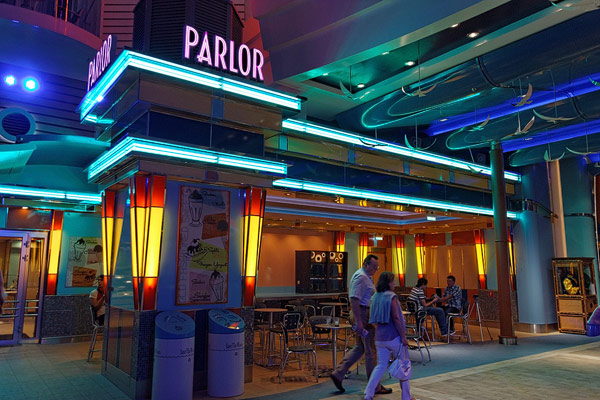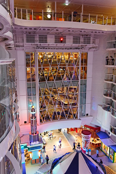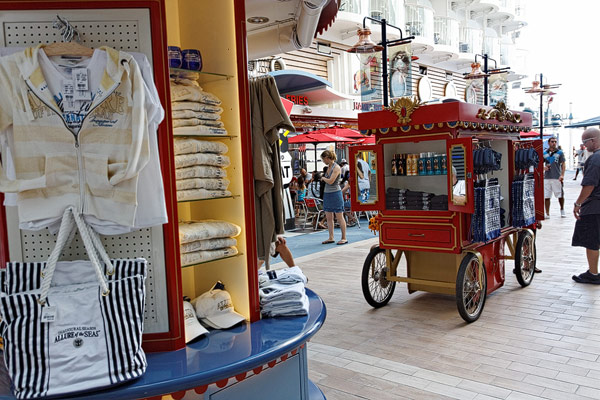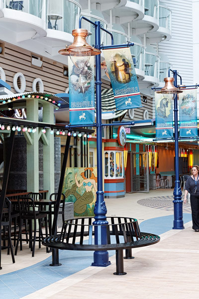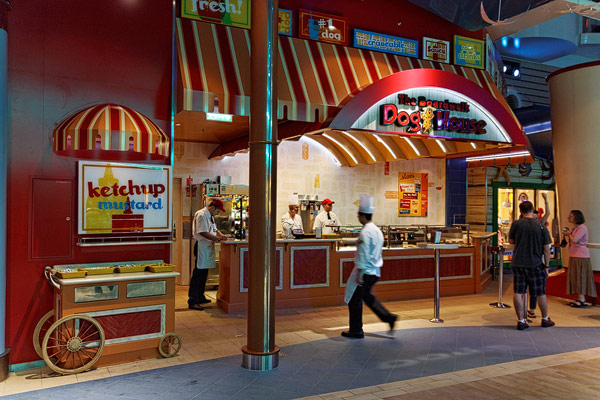 Boardwalk der Allure of the Seas: Johnny Rocket's, Dog House, Rita's Cantina, Ice Cream Parlor, Boardwalk Bar, Karussell, Kletterwand