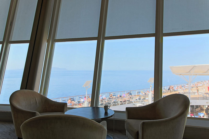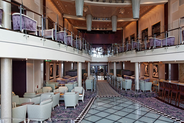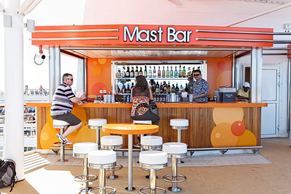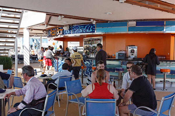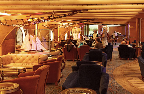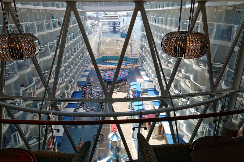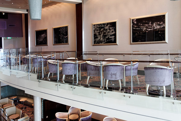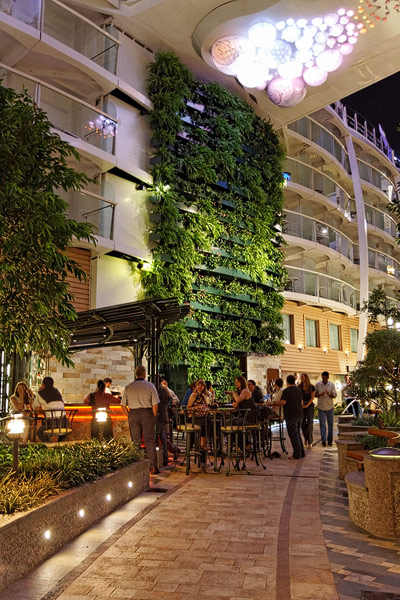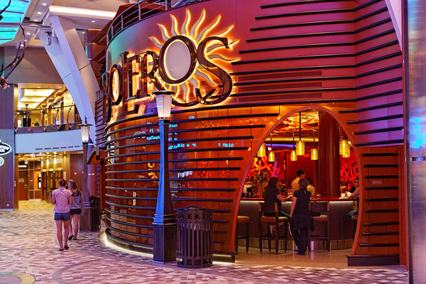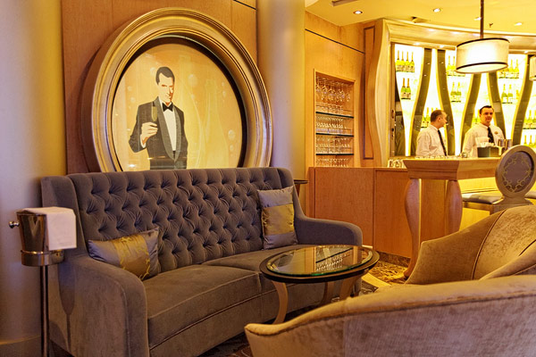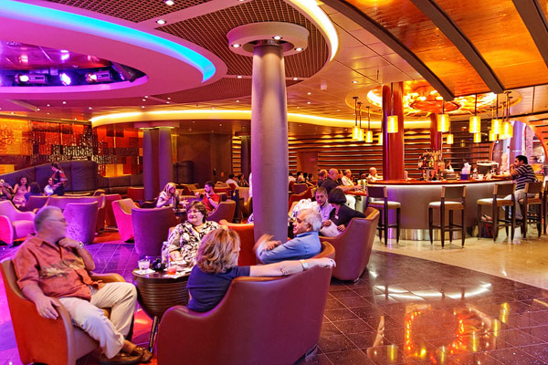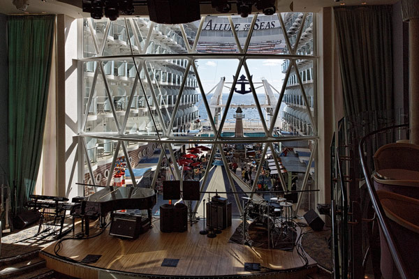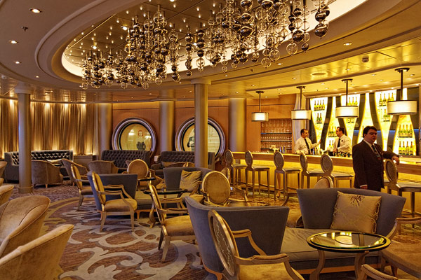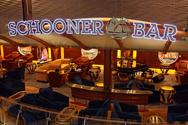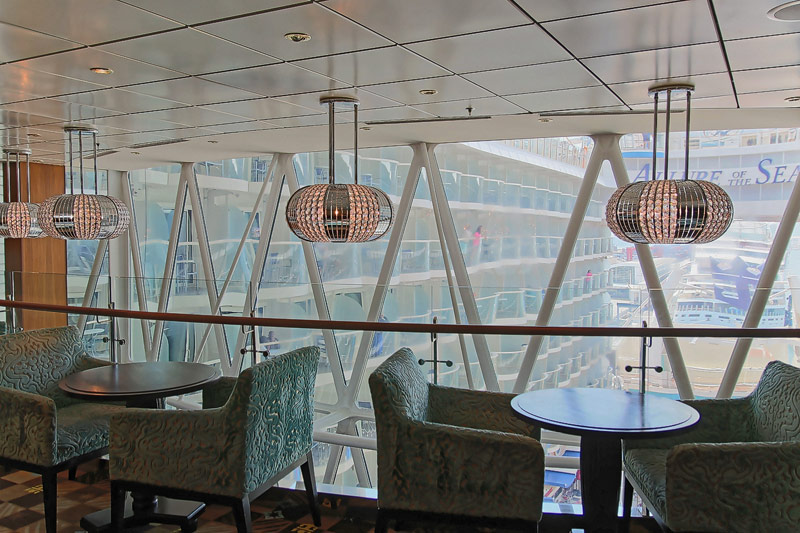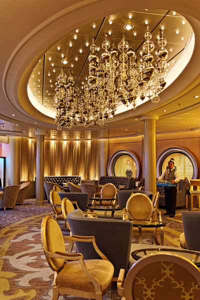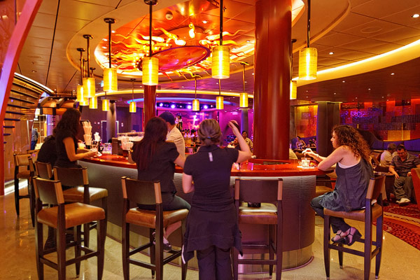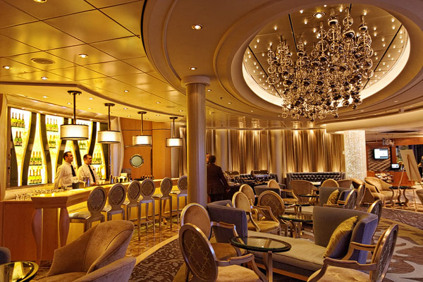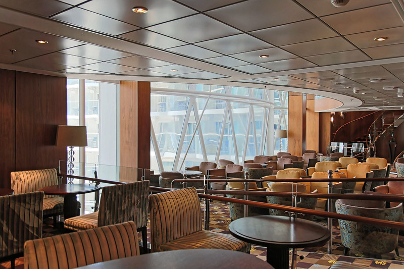 Lounges und Bars auf der Allure of the Seas: Boardwalk Bar, Champagne Bar, Dazzles, Pinnacle Lounge, Mast Bar, Sand Bar, Pool Bar, Schooner Bar, Viking Crown Lounge, Boleros, Central Park Bar, Concierge Club