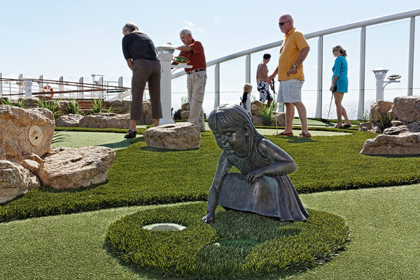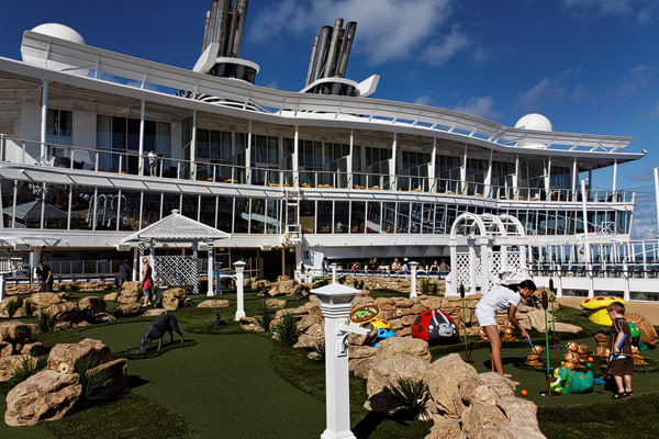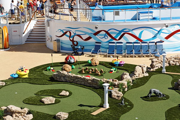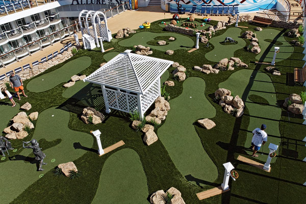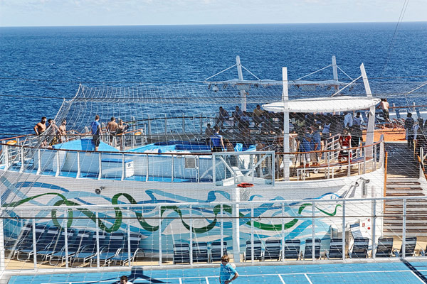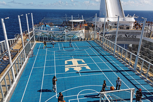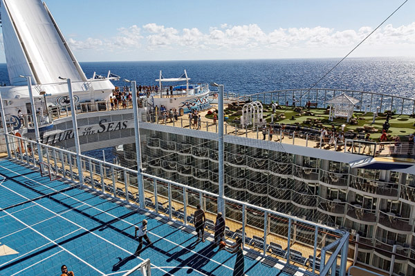 Sports Deck der Allure of the Seas: Basketballplatz, Minigolf, Flow Rider, Zip-Line